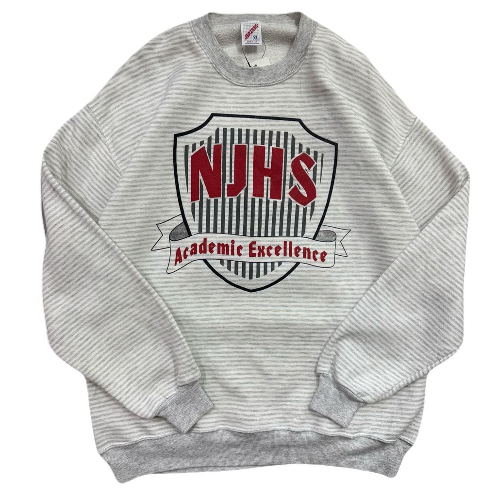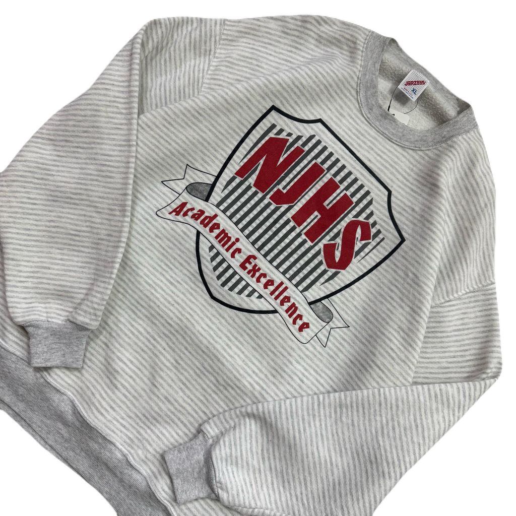 USA製 80s~ JERZEES NJHS Academic Excellence ジャージーズ ボーダー柄 スウェット トレーナー ホワイト×グレー XLサイズ No.EA199