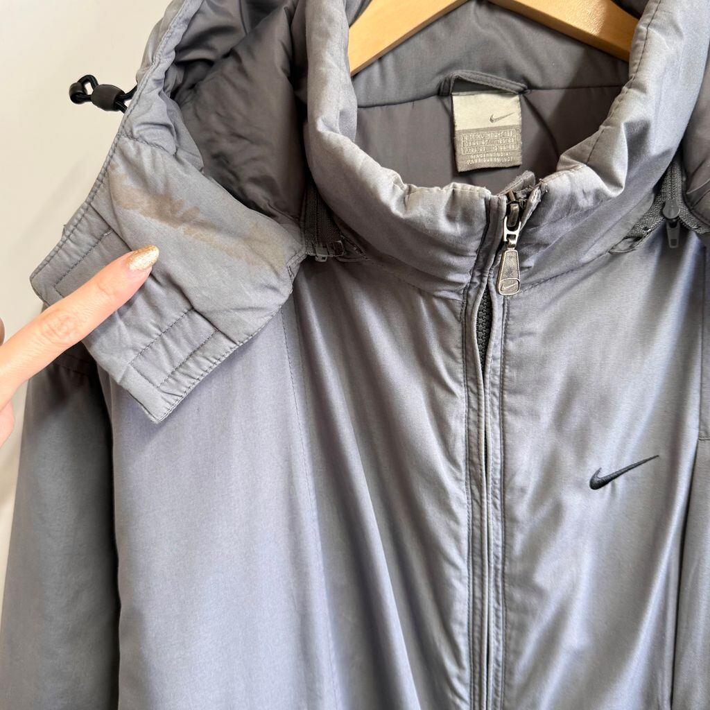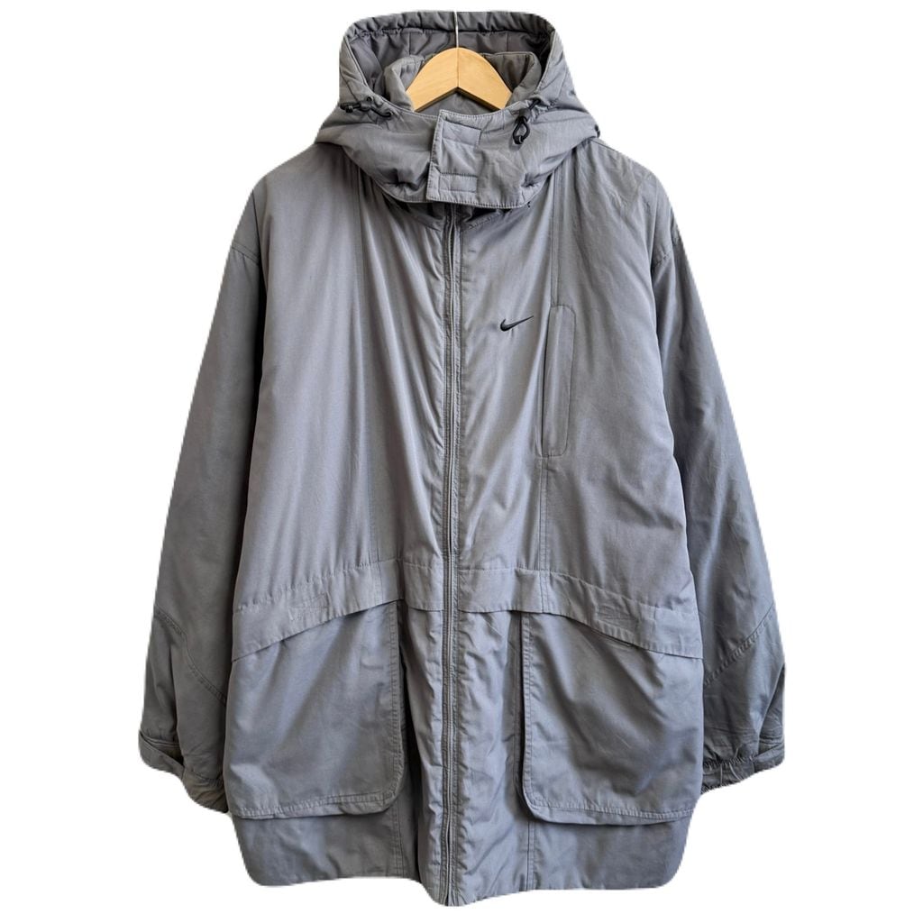 NIKE ナイキ 中綿ジャケット ベンチコート フード付き グレー XLサイズ No.M484