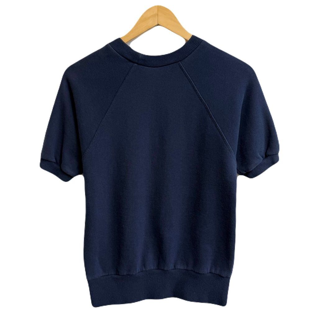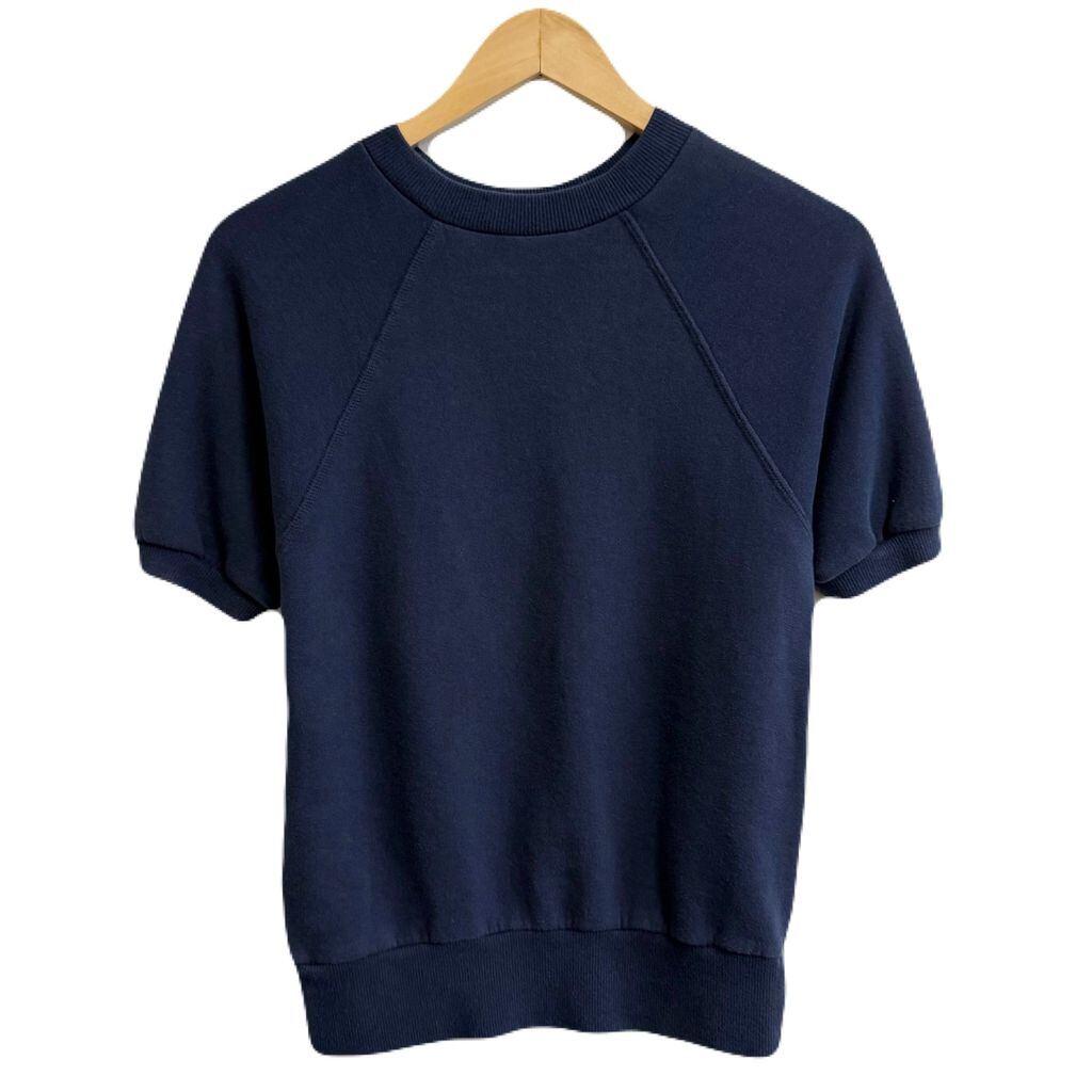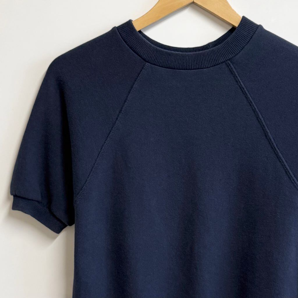 ラグランスウェット トレーナー 半袖 裏起毛 無地 紺 ネイビー No.M496