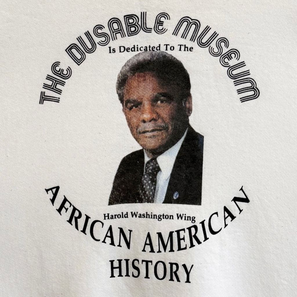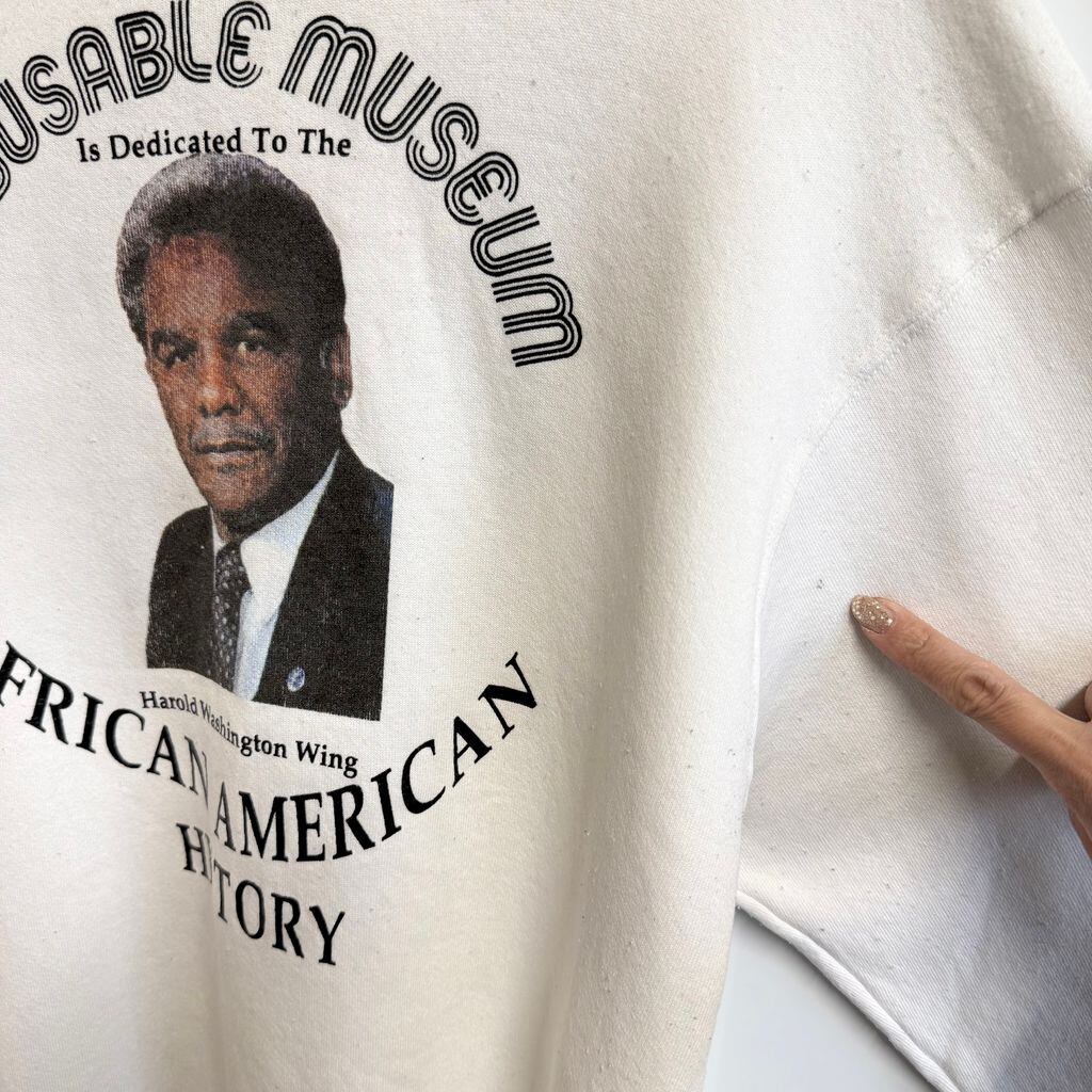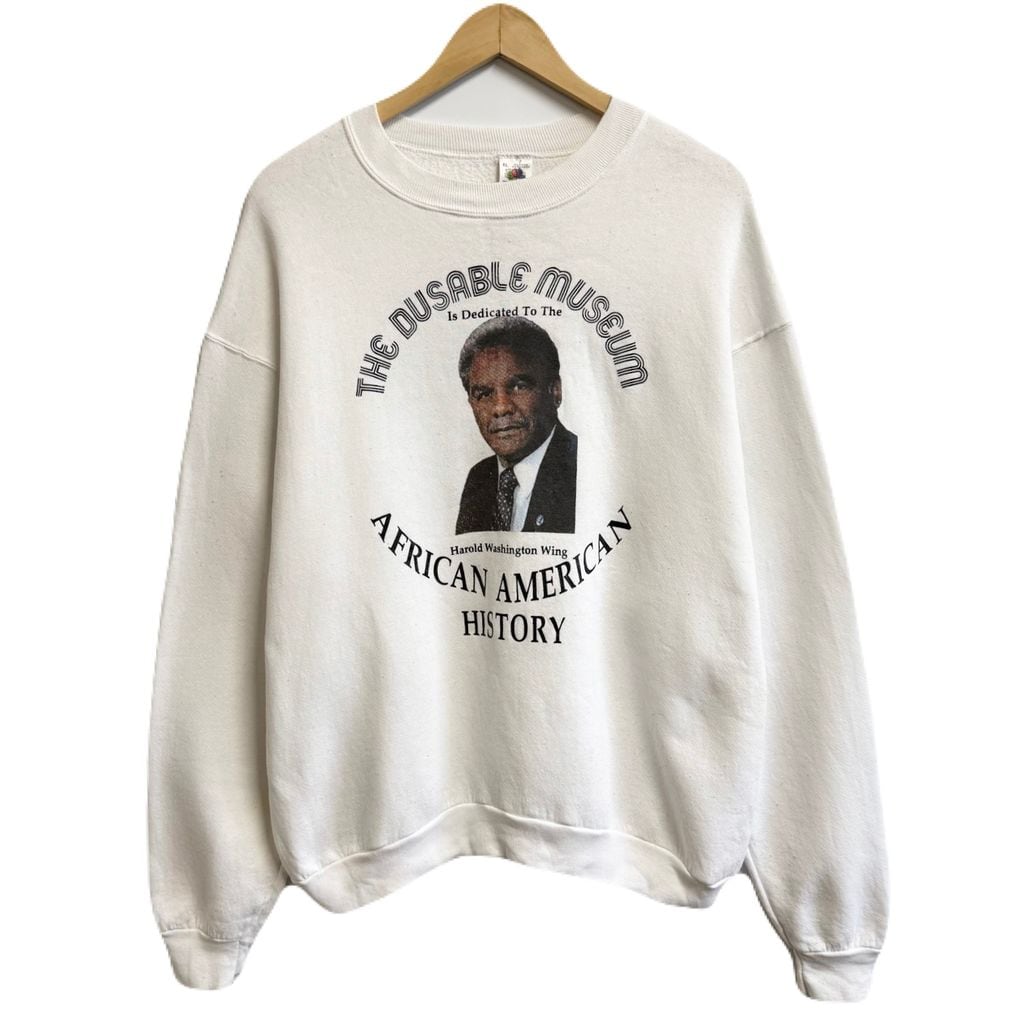〜90's vintage ビンテージ USA製 FRUIT OF THE LOOM フルーツオブザルーム ハロルドワシントン シカゴ市長 良プリント トレーナー スウェット 白 XLサイズ No.M497