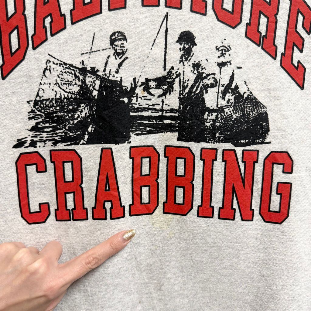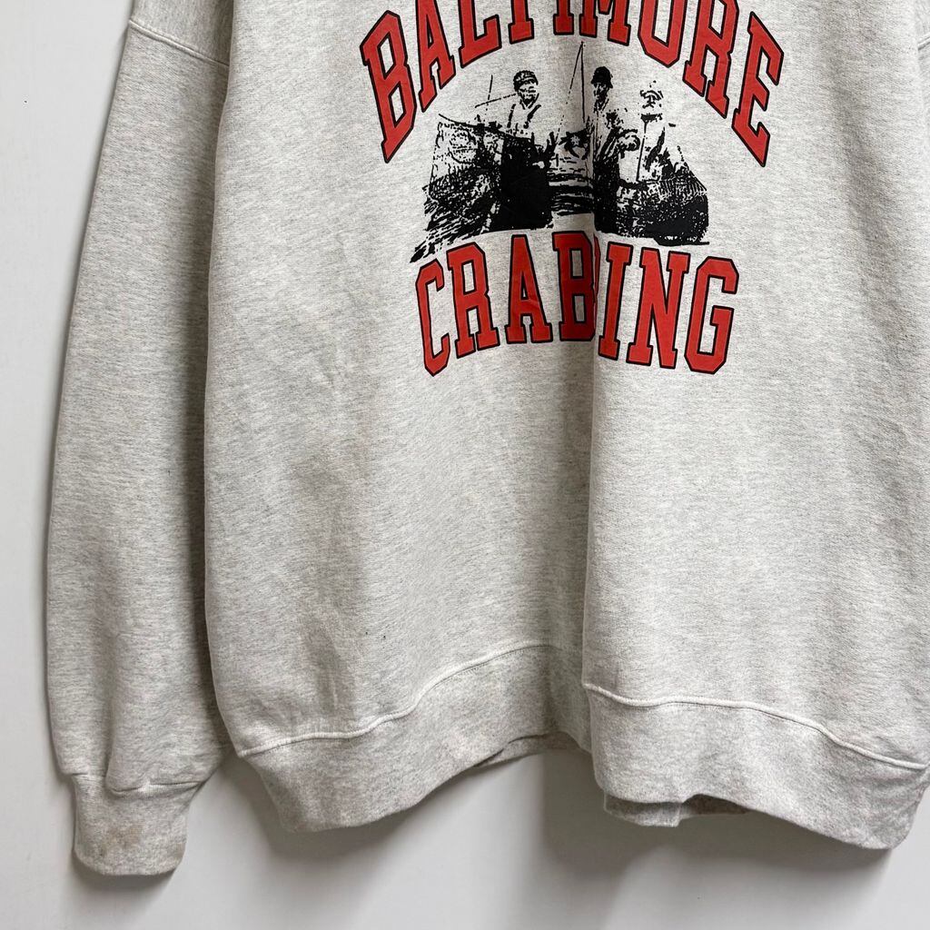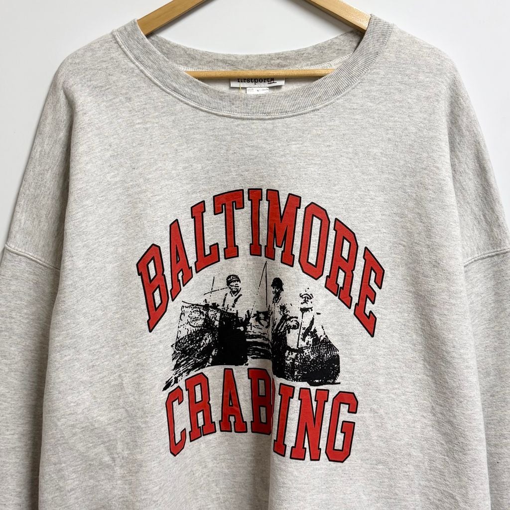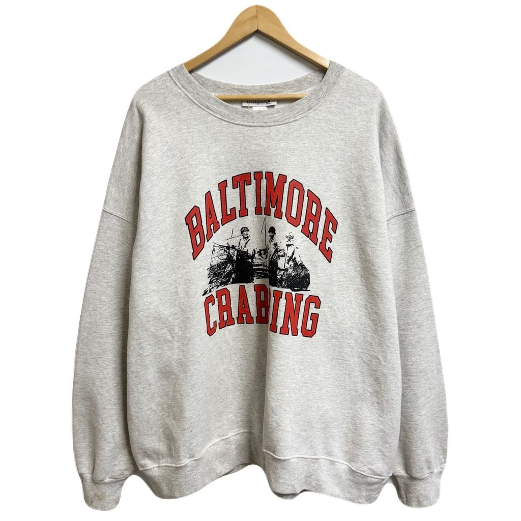 firstport フロントプリント ボルチモア カニ漁 トレーナー スウェット 裏起毛 ライトグレー XLサイズ No.M500