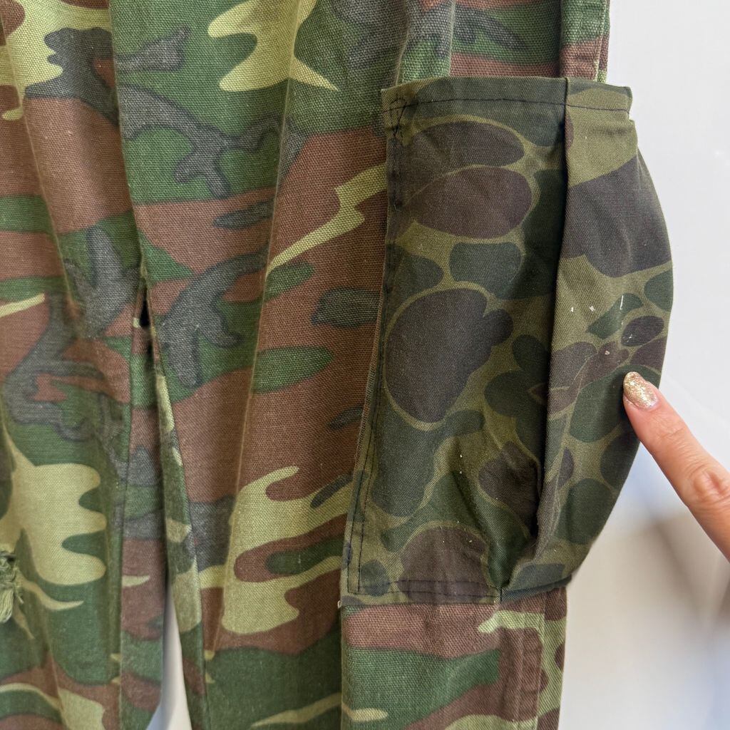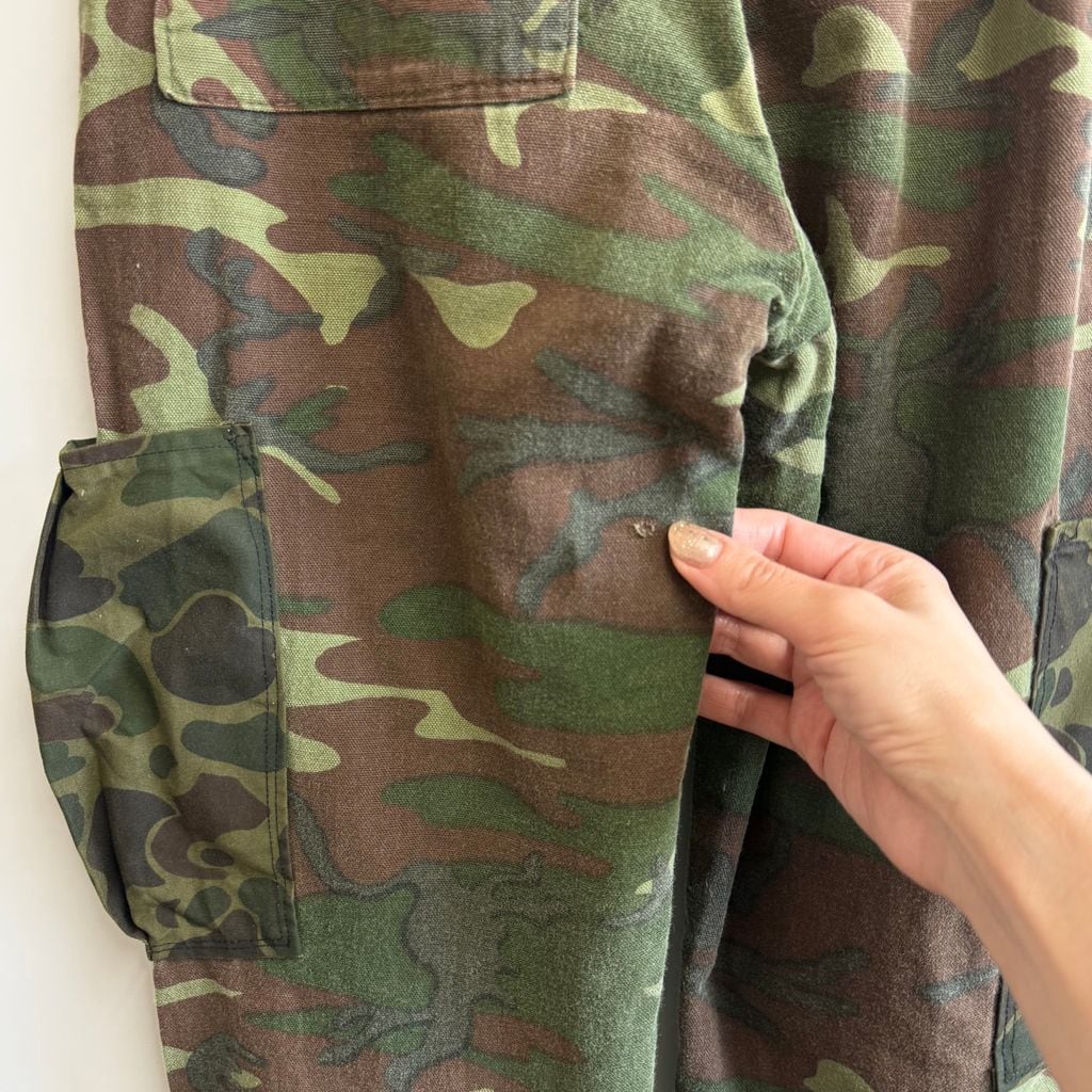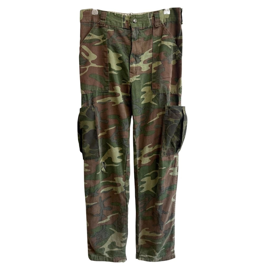 ウッドランドカモ ミリタリーカーゴパンツ TALON タロンジップ 切り替えデザイン W30程度 No.M509