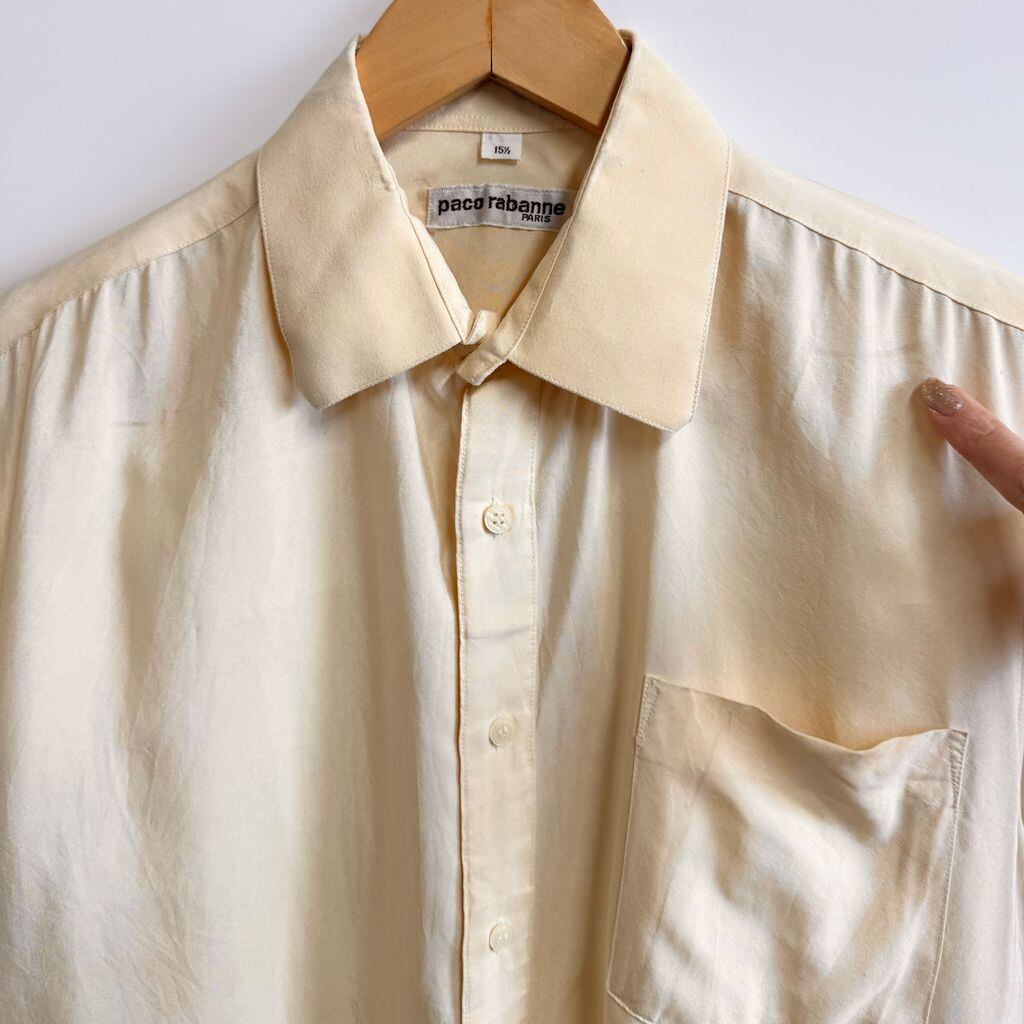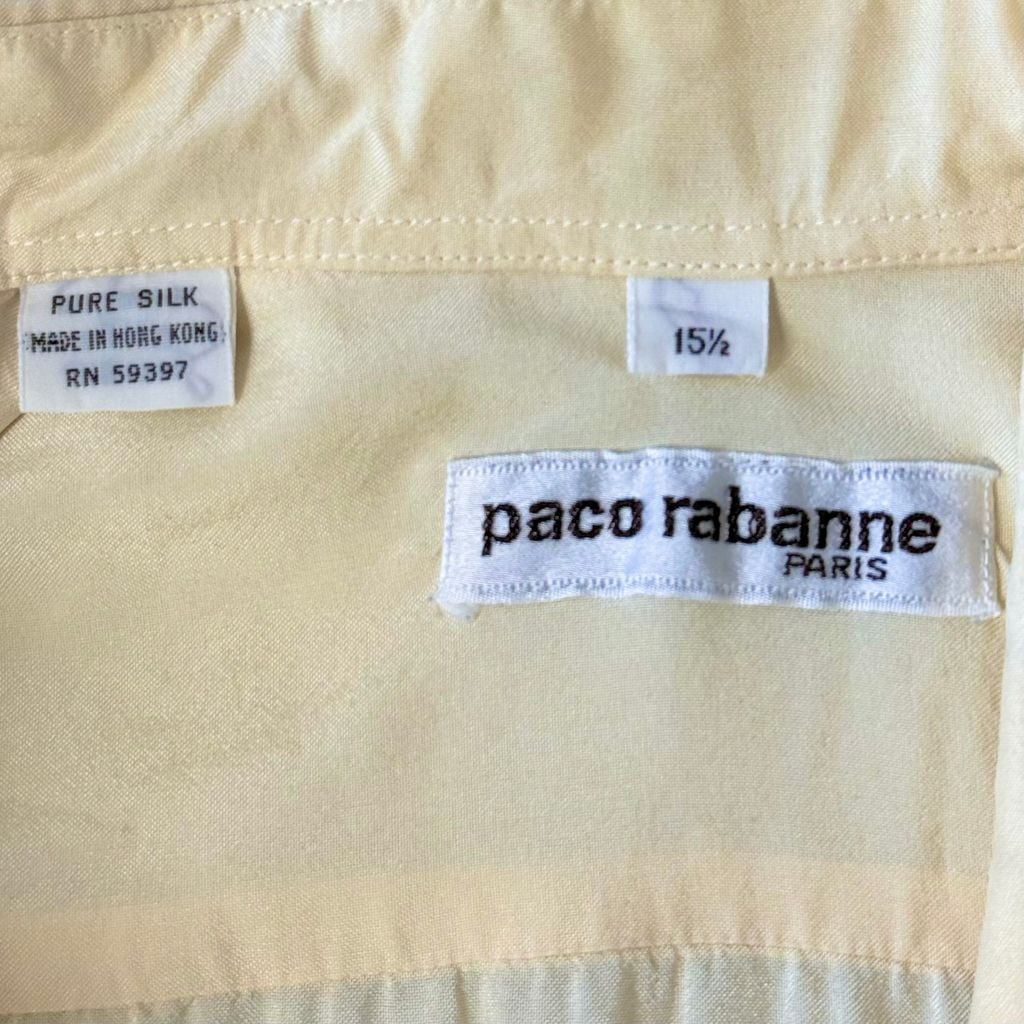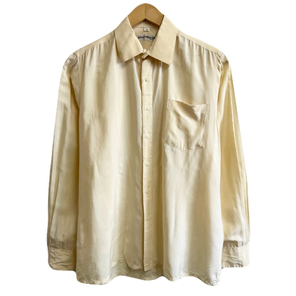Paco rabanne シルクシャツ 無地 ポケット付き 長袖シャツ クリーム色 No.M522
