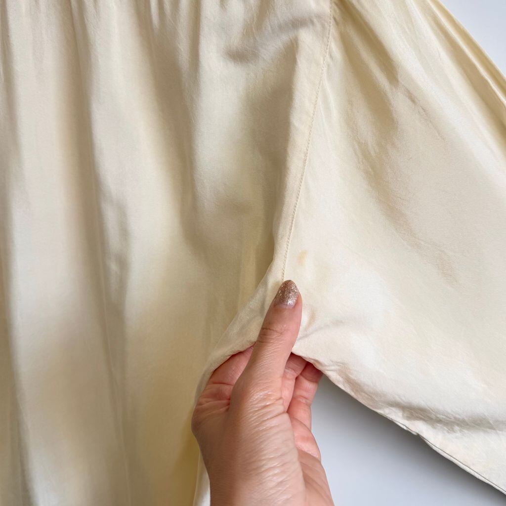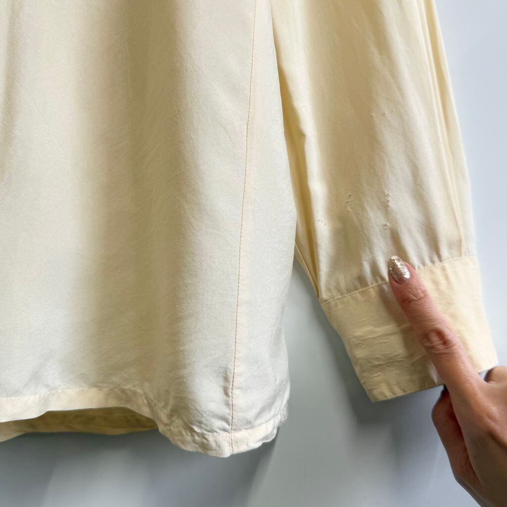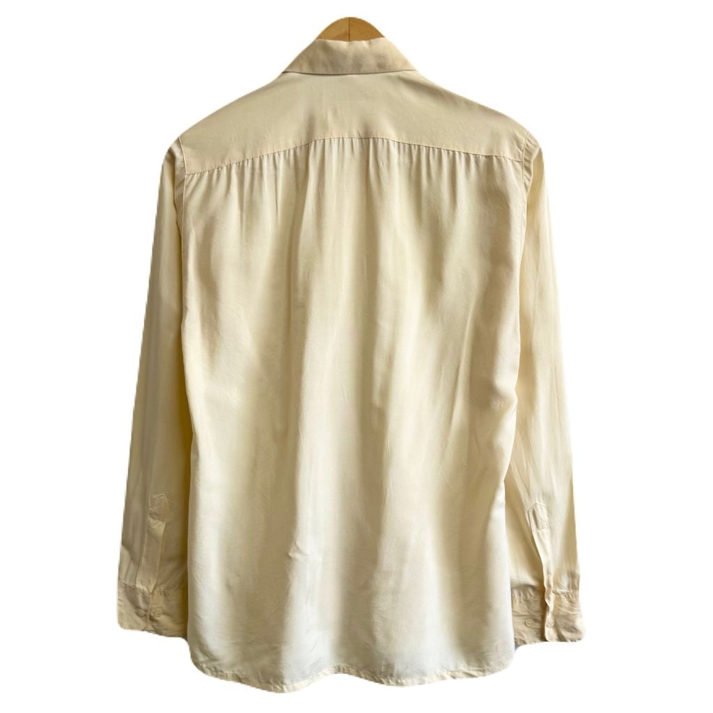 Paco rabanne シルクシャツ 無地 ポケット付き 長袖シャツ クリーム色 No.M522