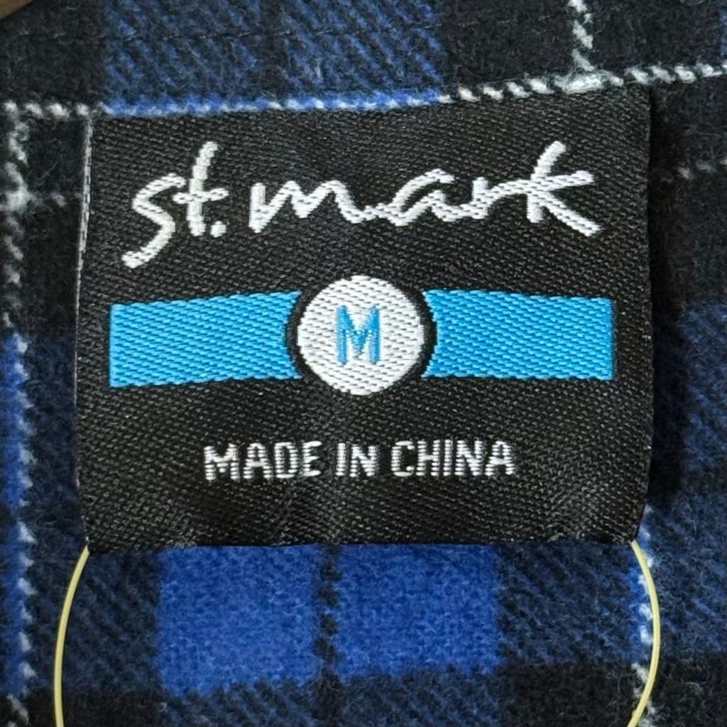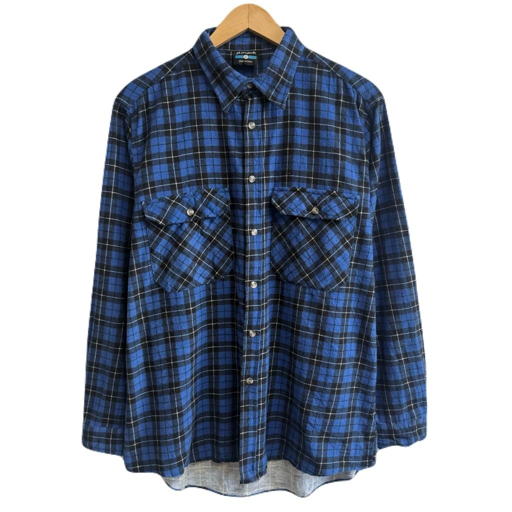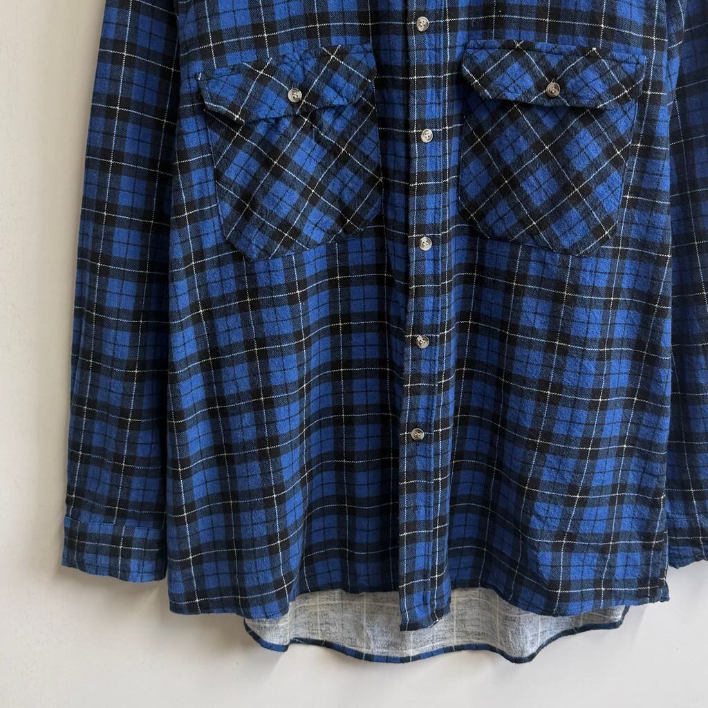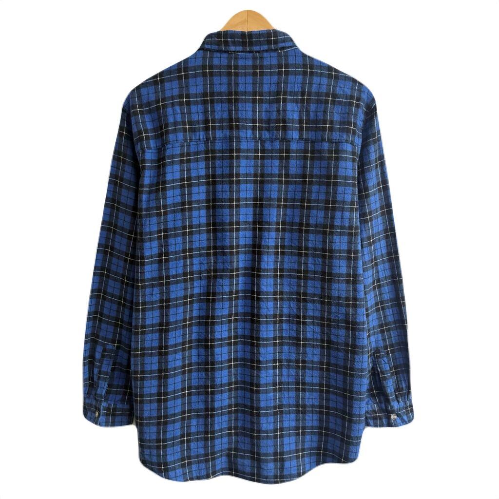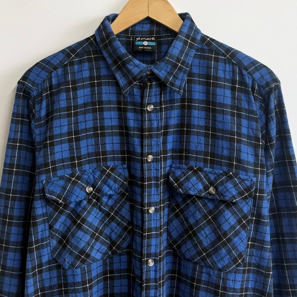 St.mark ネルシャツ コットンシャツ チェック柄 ポケット付き 長袖シャツ 青×黒×白 Mサイズ No.M523