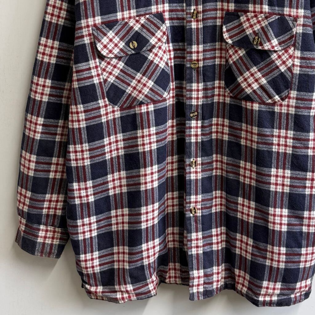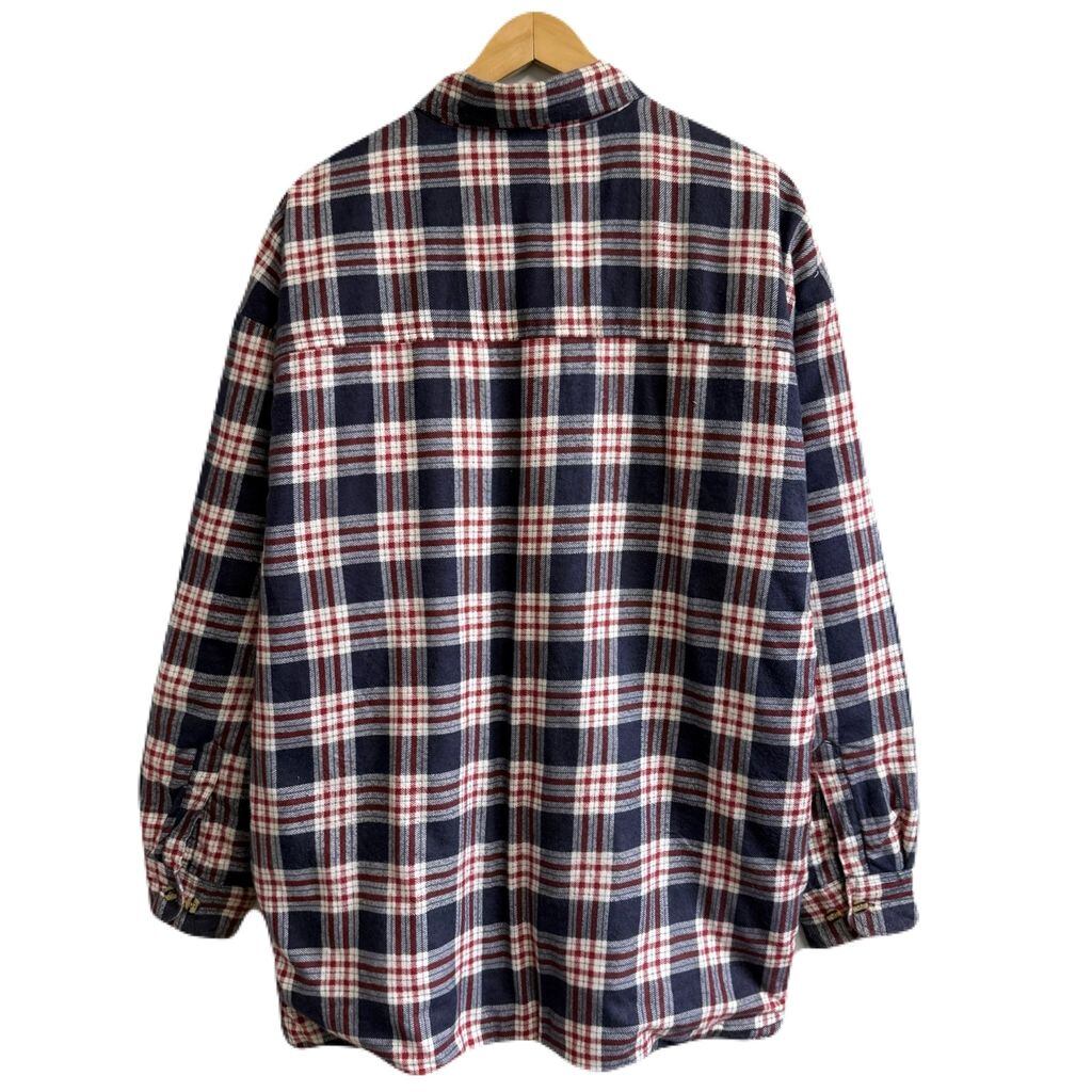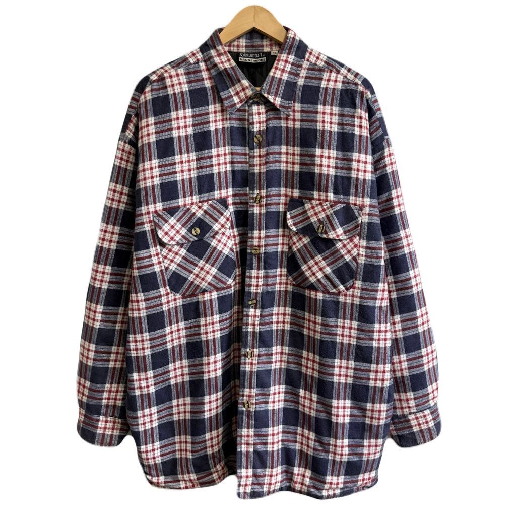 フランネルシャツジャケット キルティング裏地 コットンシャツ チェック柄 ポケット付き 厚手長袖シャツ 紺×白×多色 XLサイズ No.M525
