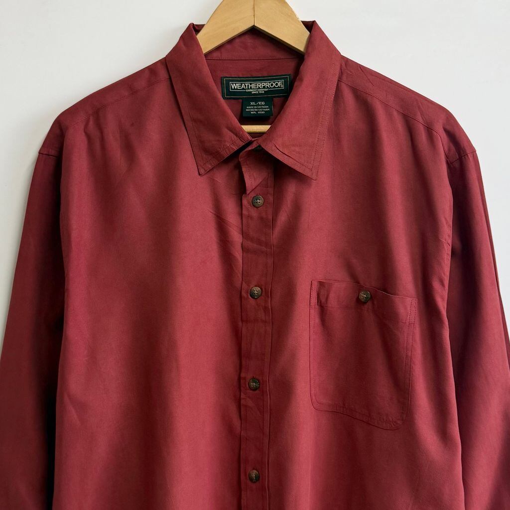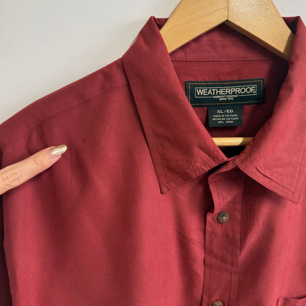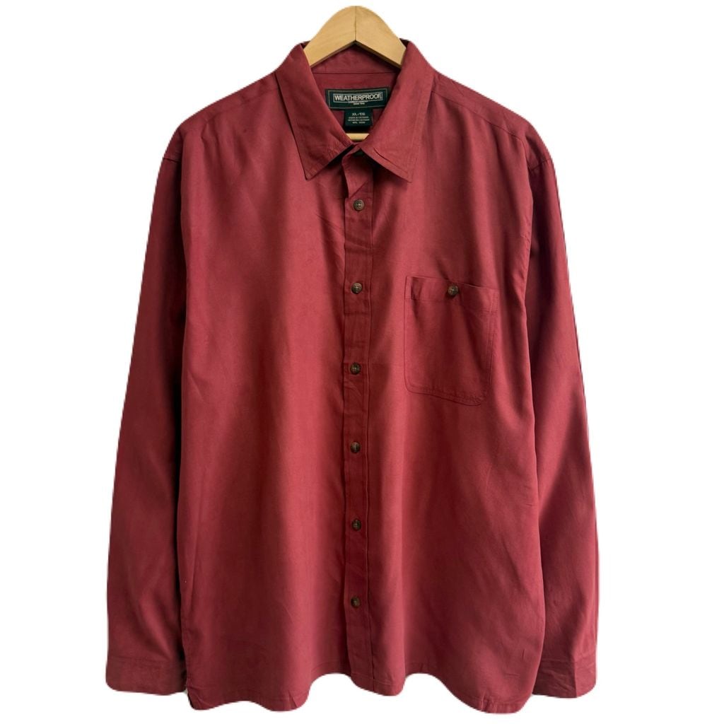 WEATHERPROOF ポリエステル×ナイロンシャツ 無地 ポケット付き 長袖シャツ ワインレッド ボルドー XLサイズ No.M548