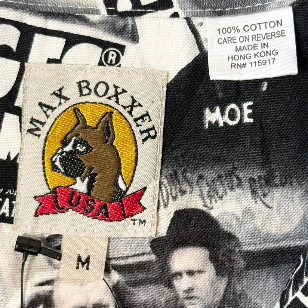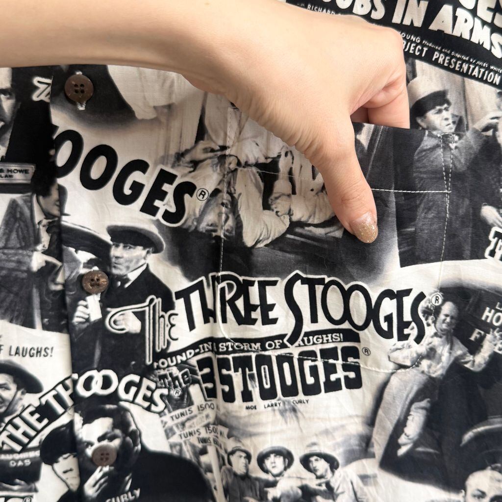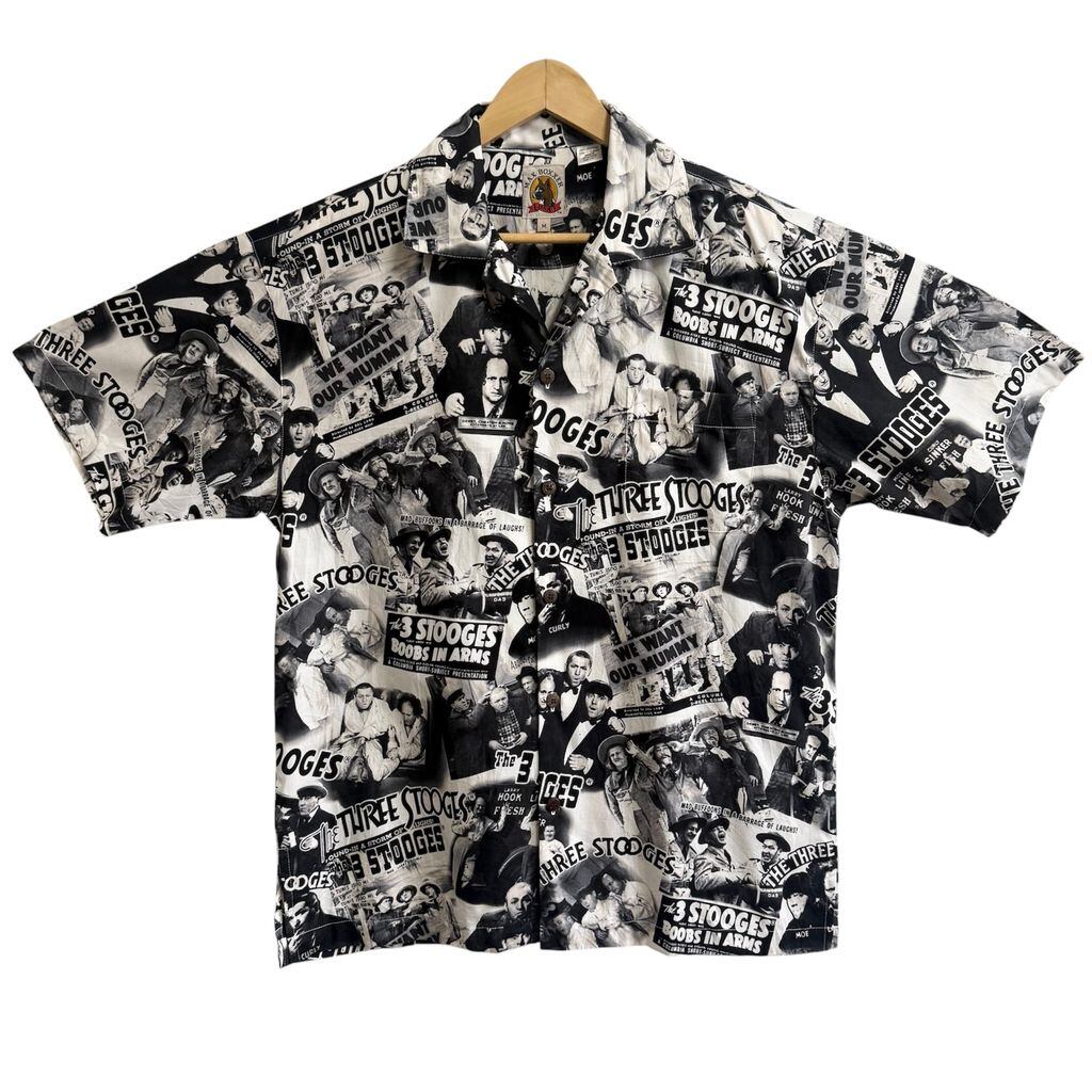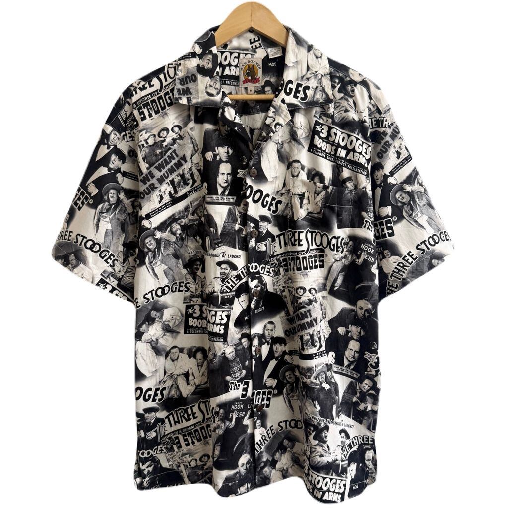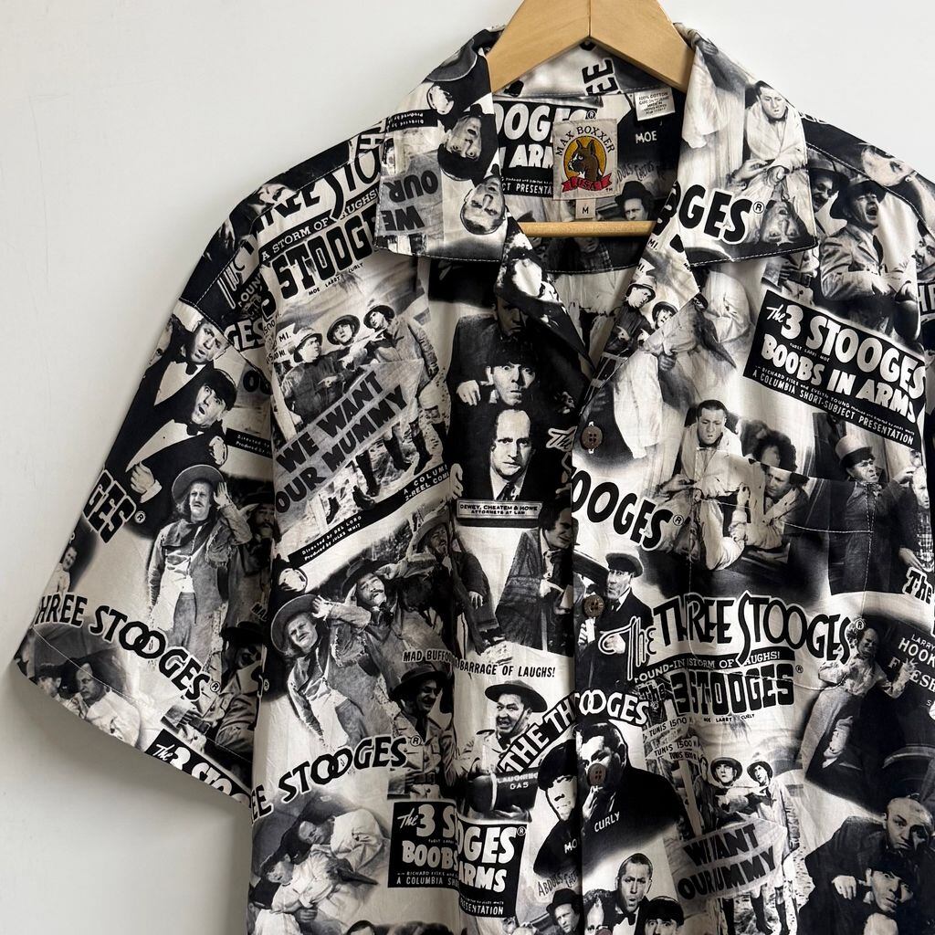 MAX BOXXER 3バカ大将 The Three Stooges 総柄 柄シャツ オープンカラー 開襟シャツ 半袖シャツ 白×黒 Mサイズ No.M550