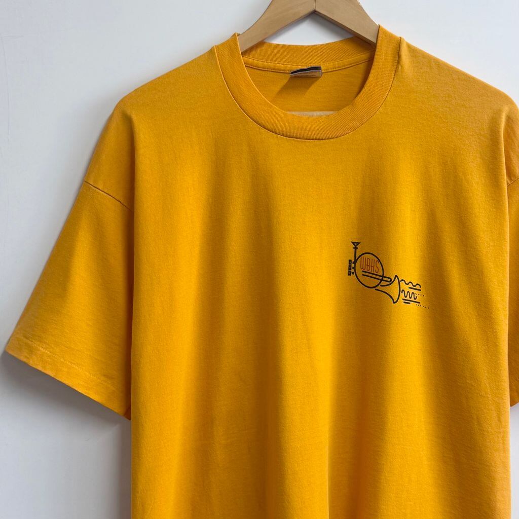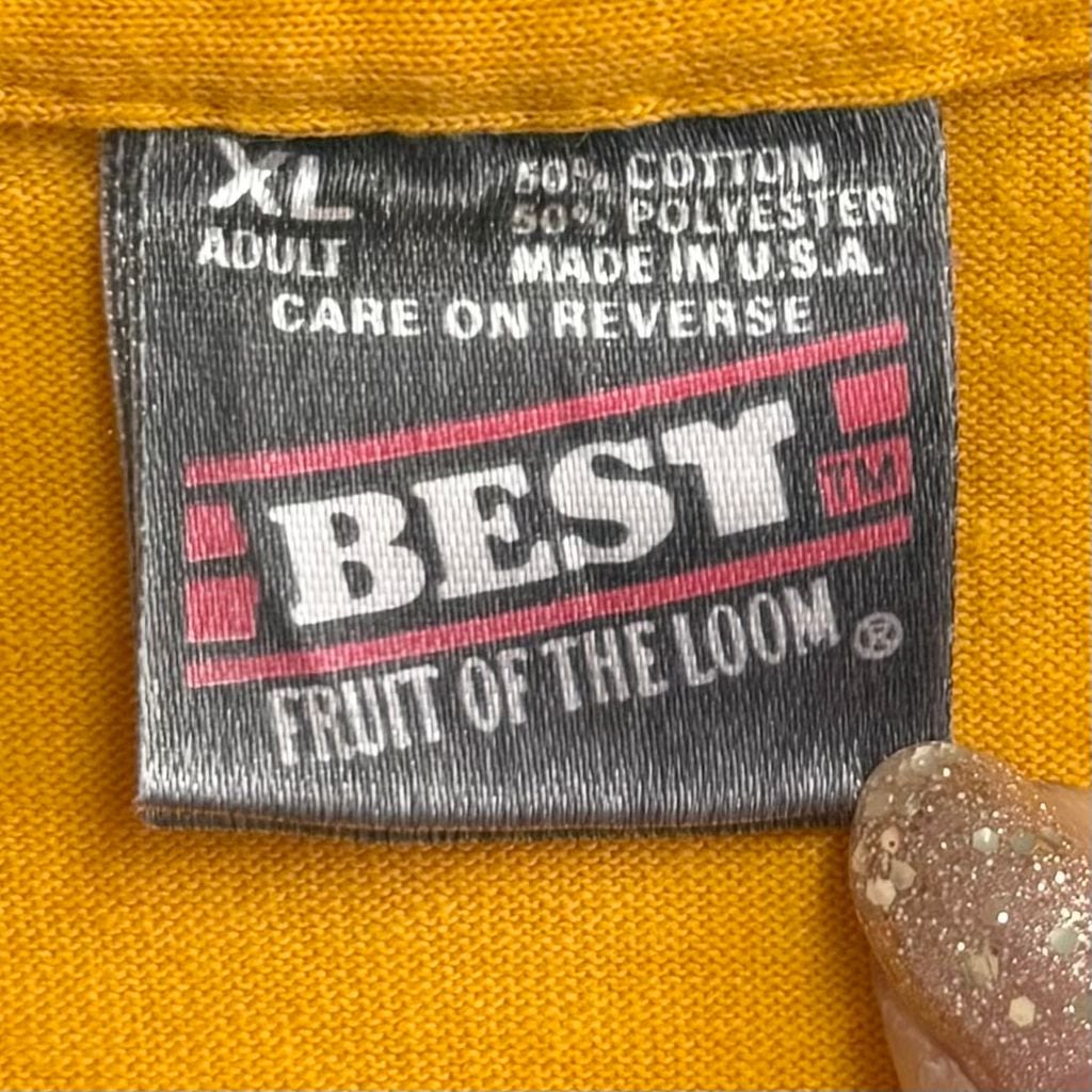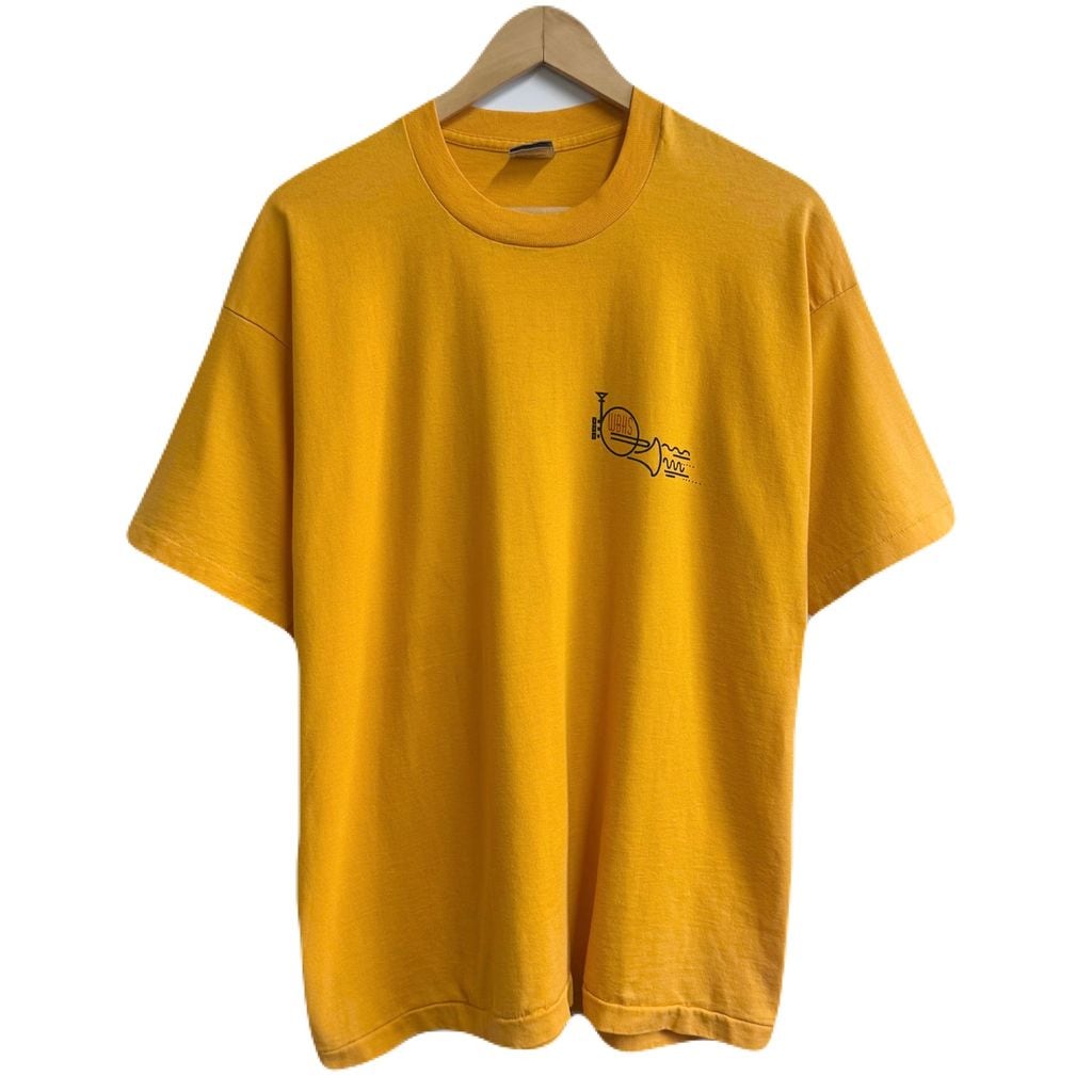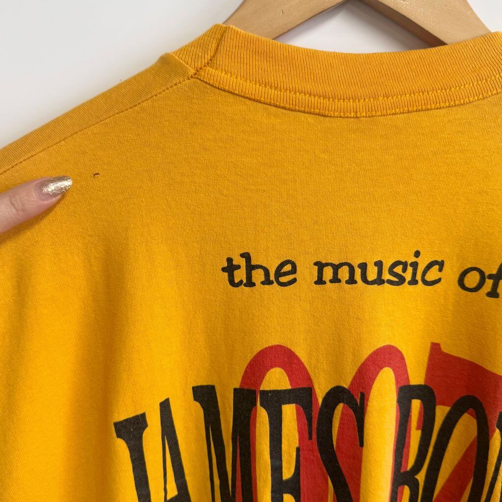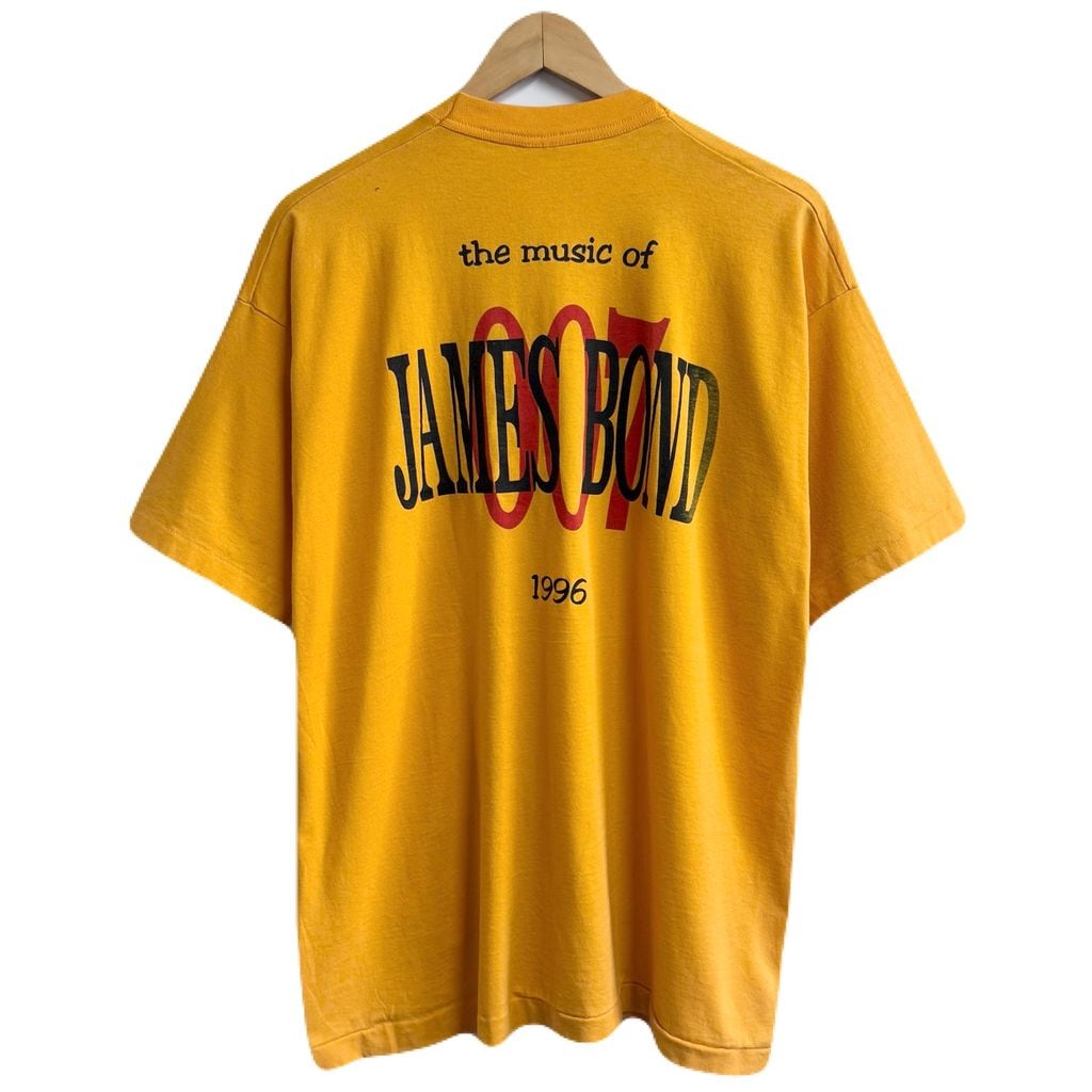 USA製 FRUIT OF THE LOOM フルーツオブザルーム 両面プリント 007 JAMES BOND シングルステッチ 半袖Tシャツ 黄色オレンジ XLサイズ No.M554