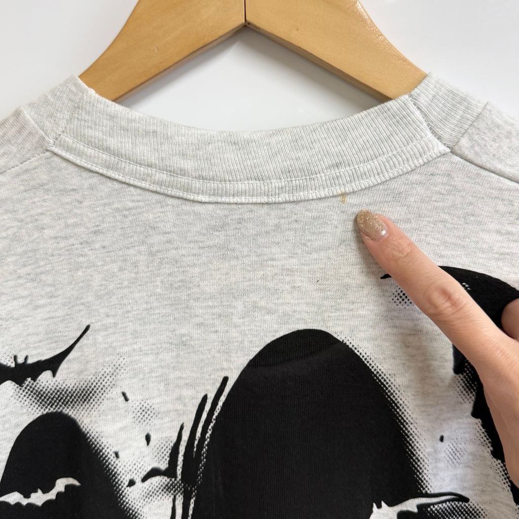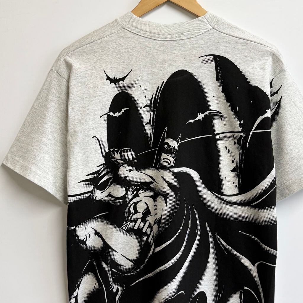 USA製 FRUIT OF THE LOOM フルーツオブザルーム バックプリント バットマン シングルステッチ 半袖Tシャツ ライトグレー Lサイズ No.M557