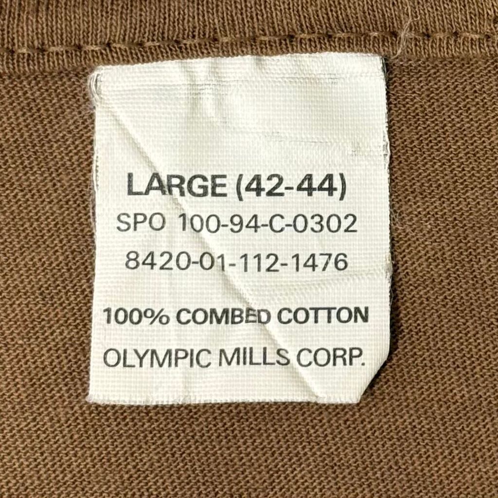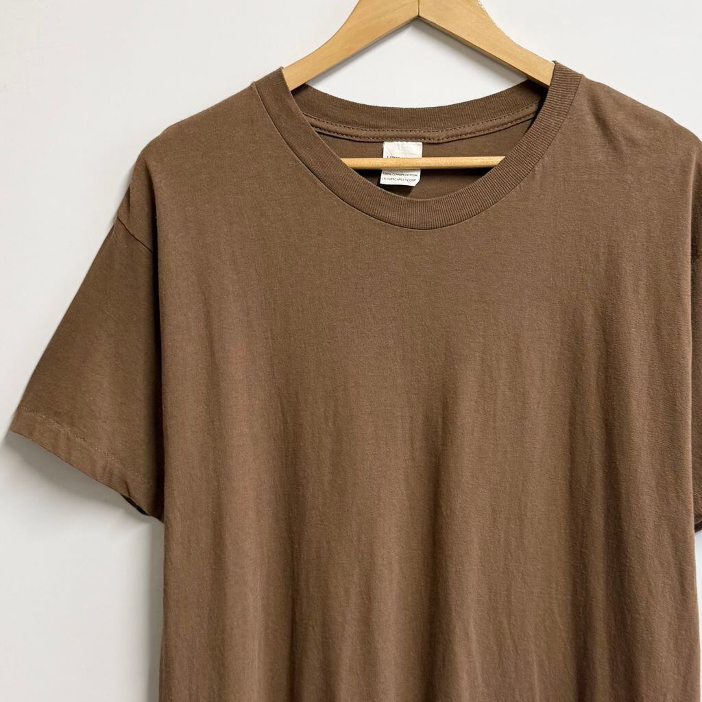 94〜 U.S. ARMY ユーエスアーミー ミリタリー アンダーシャツ 無地 シングルステッチ 半袖Tシャツ 茶色 ブラウン Lサイズ No.M558