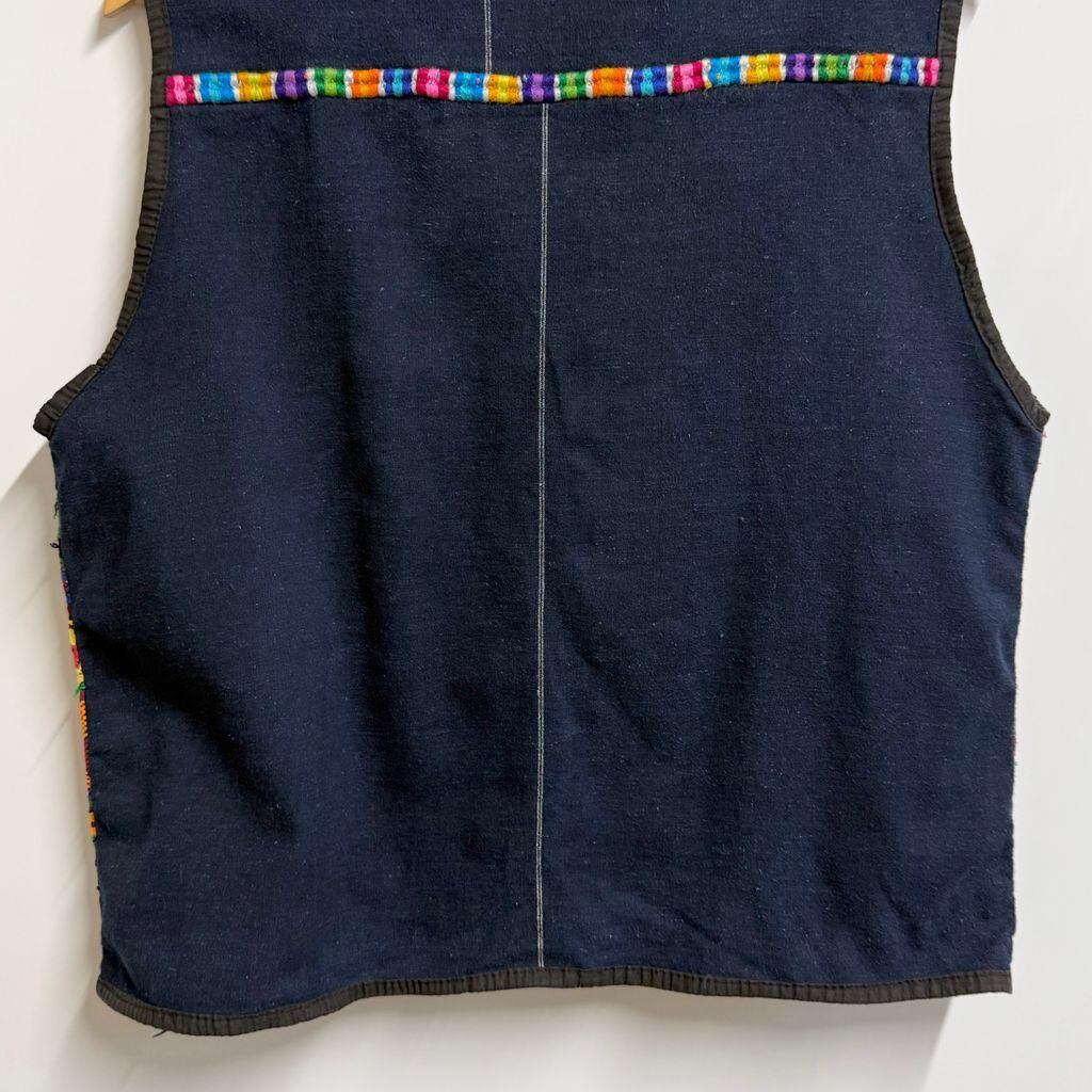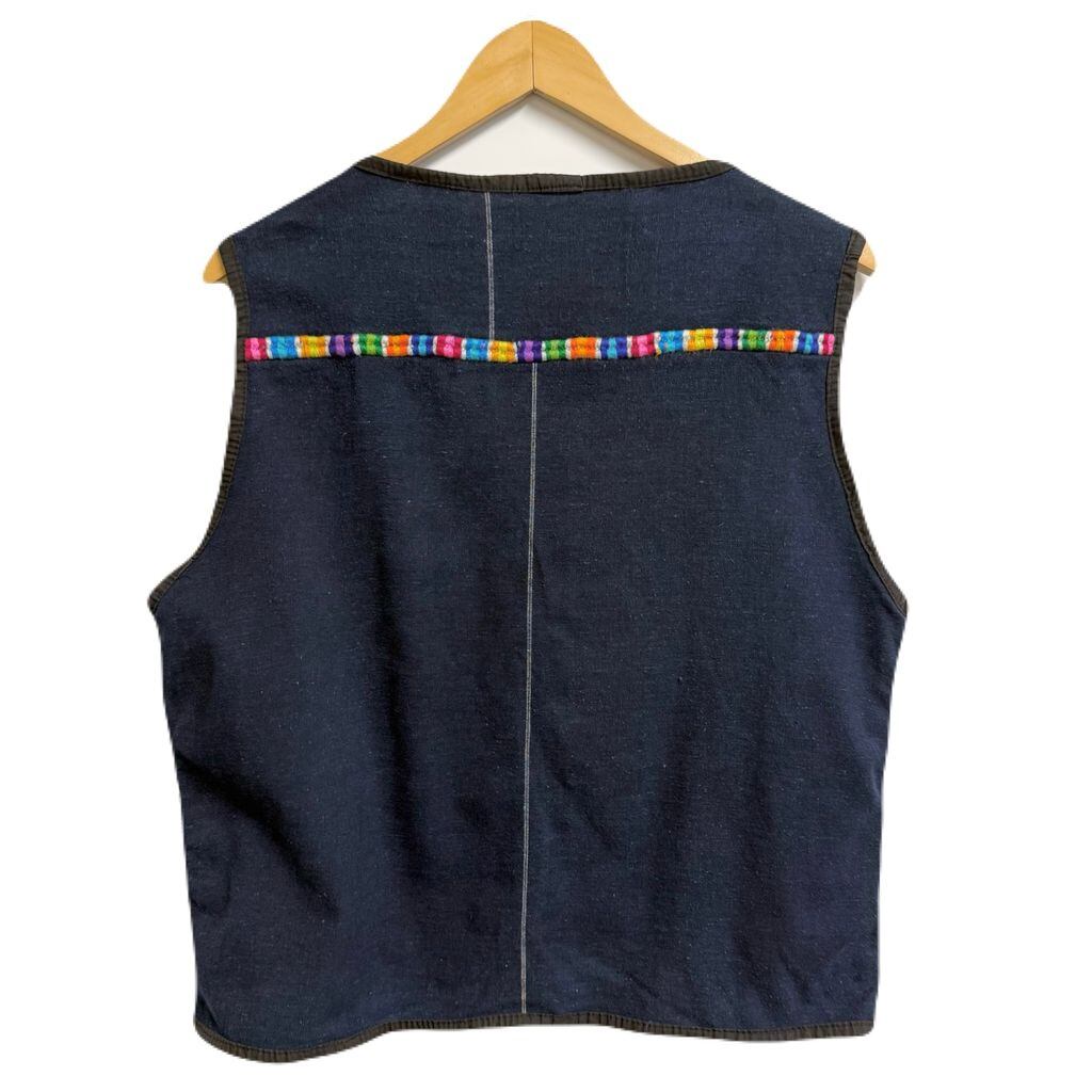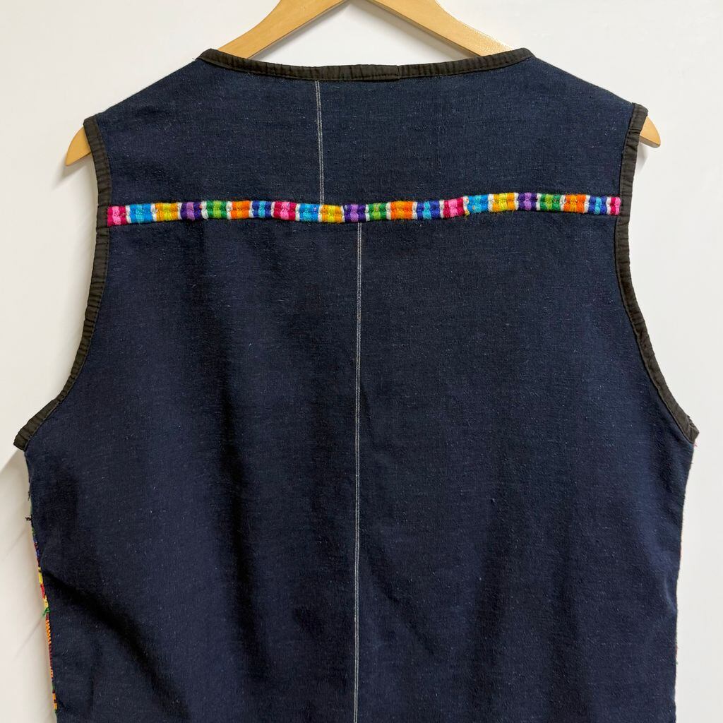 グアテマラ ベスト 民族 ウイピル フロントボタン インディゴ×カラフル 多色 Lサイズ No.M560