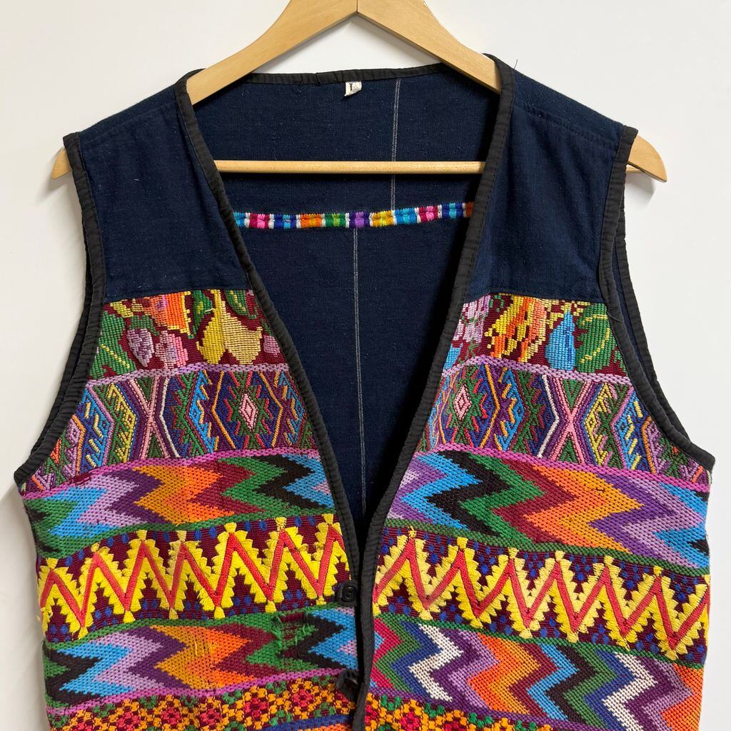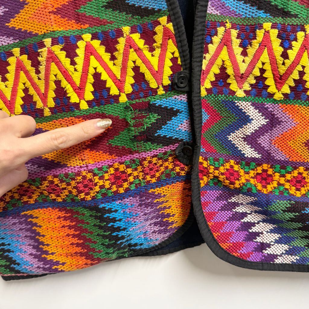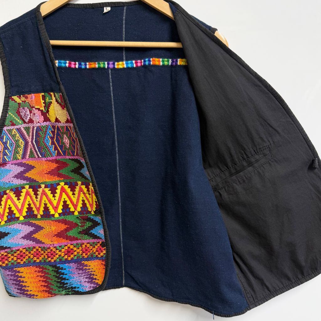 グアテマラ ベスト 民族 ウイピル フロントボタン インディゴ×カラフル 多色 Lサイズ No.M560