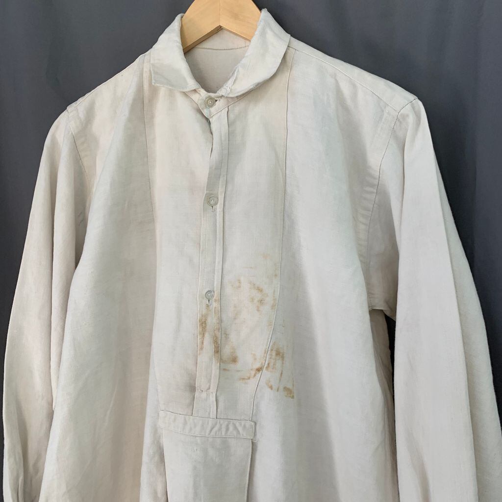 ユーロ アンティーク リネン スモックシャツ ファーマーズシャツ グランパシャツ No.I705