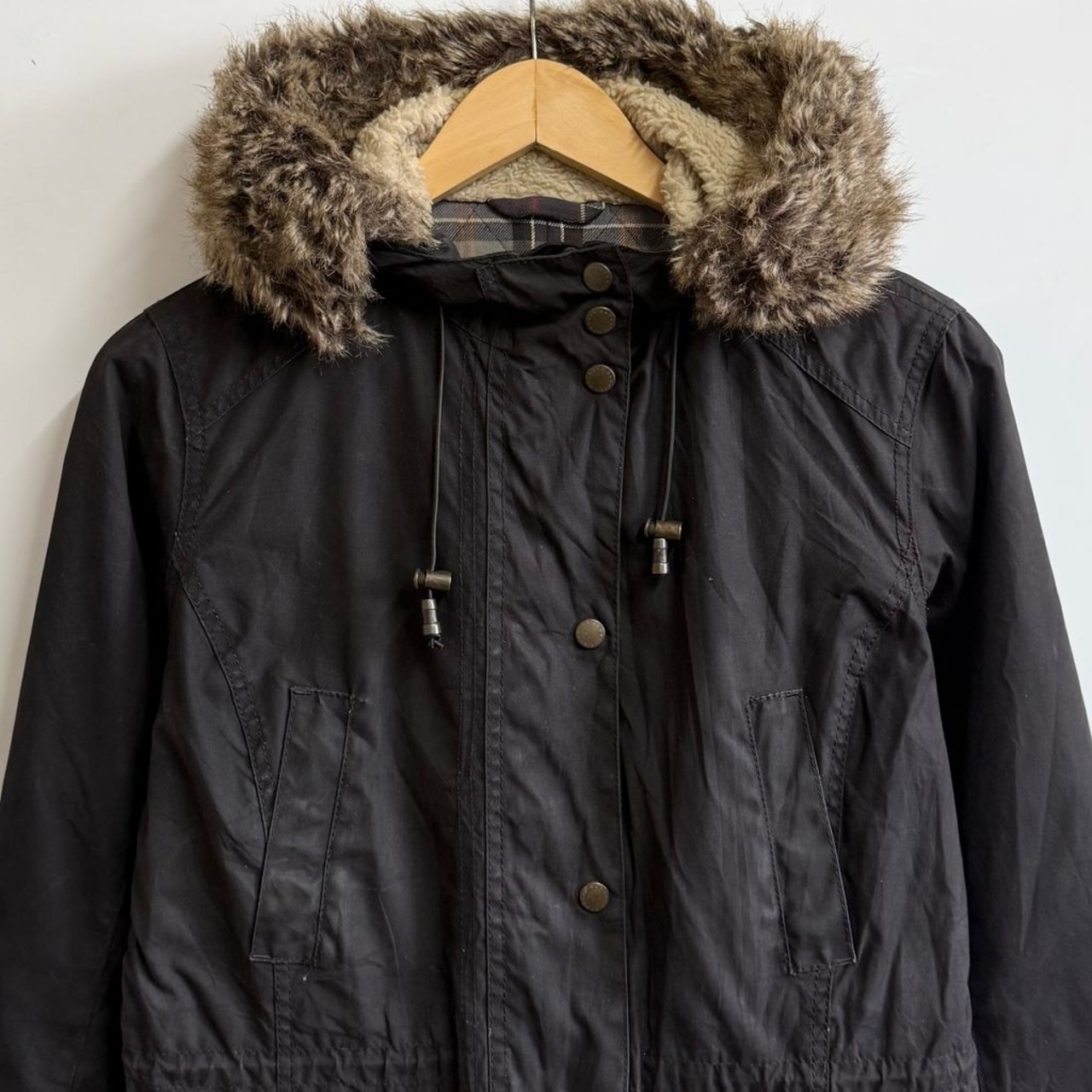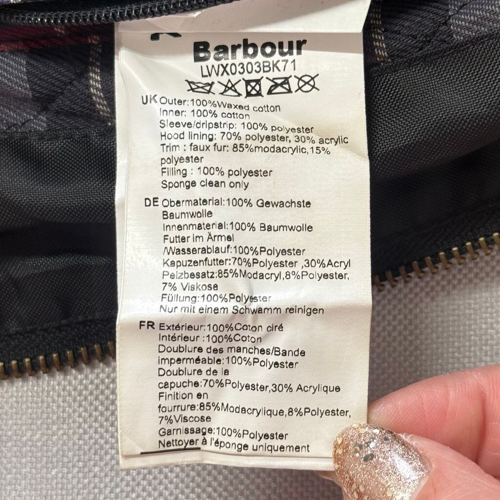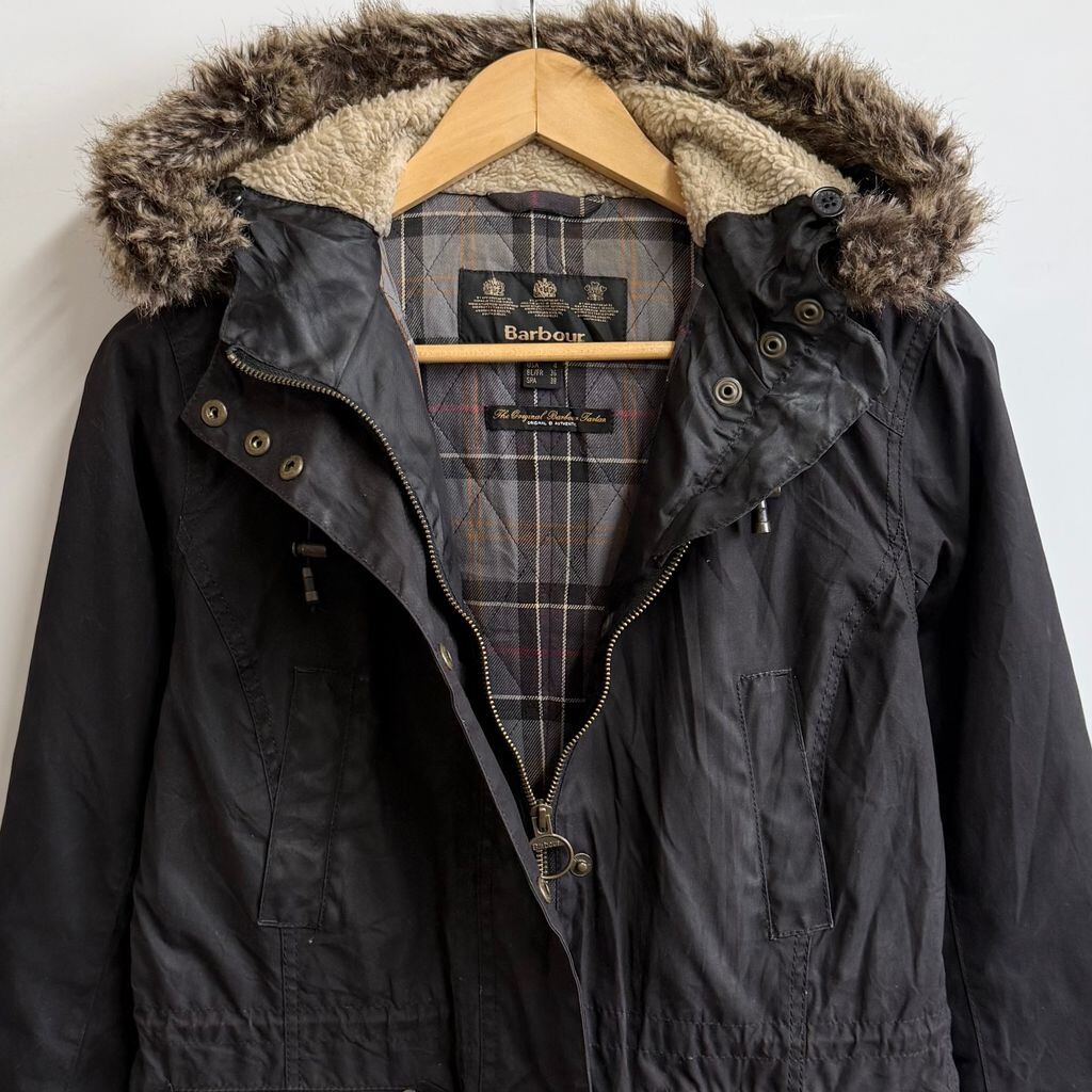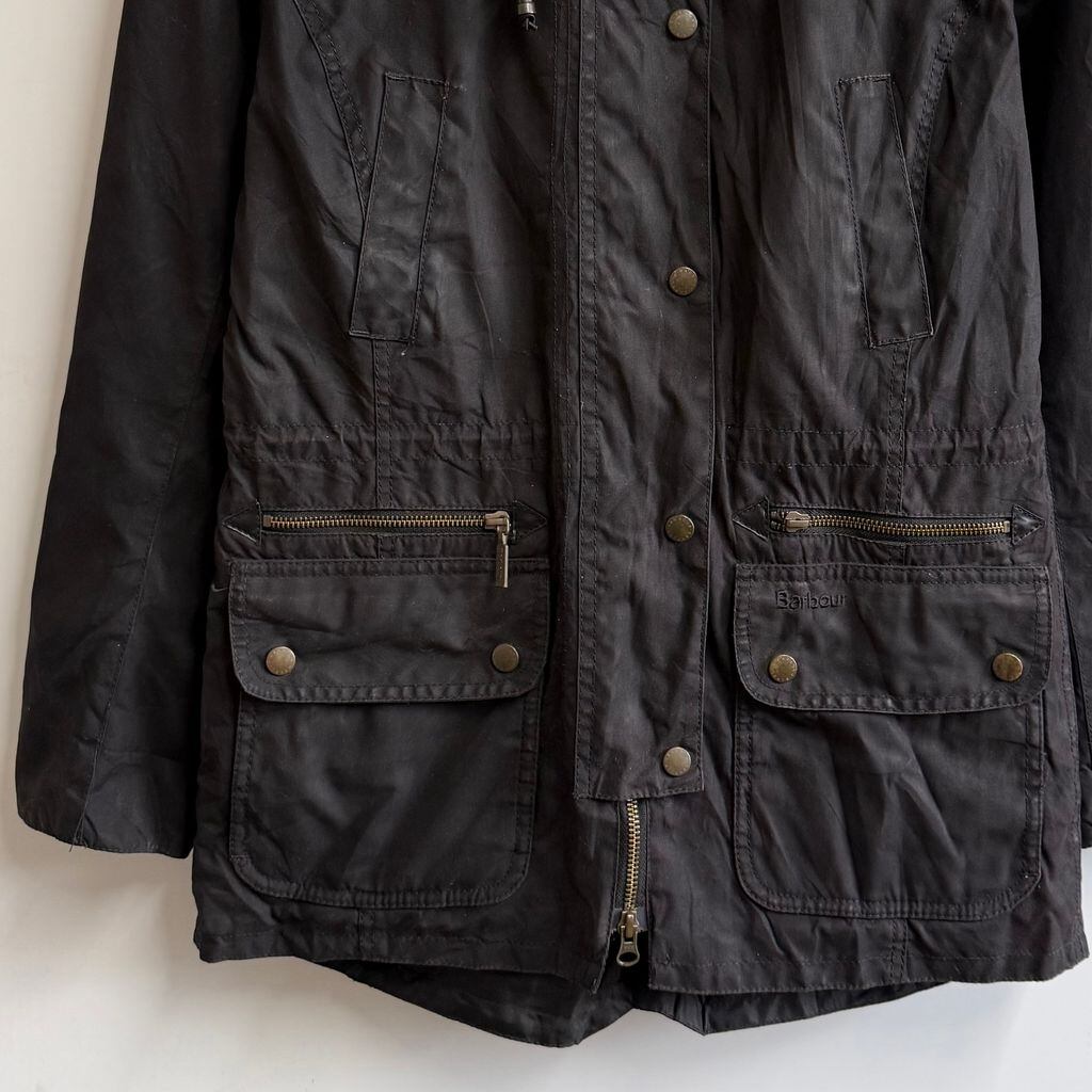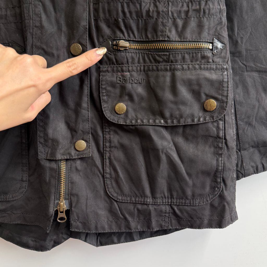 Barbour バブアー ワックスジャケット モッズコート 裏地チェック柄 黒 ブラック No.M565