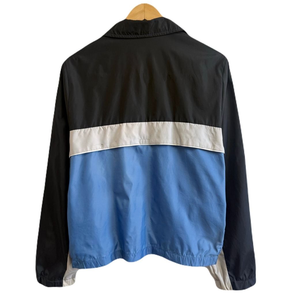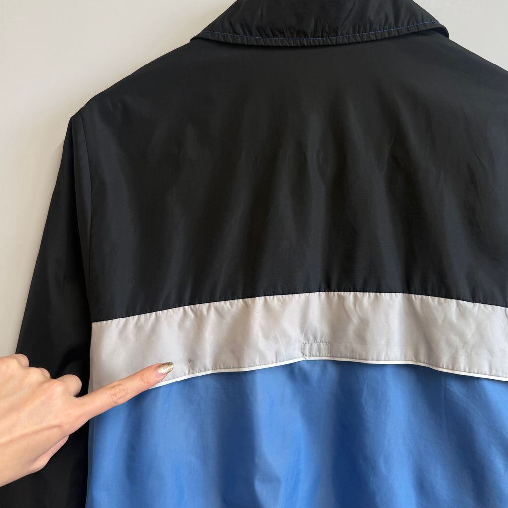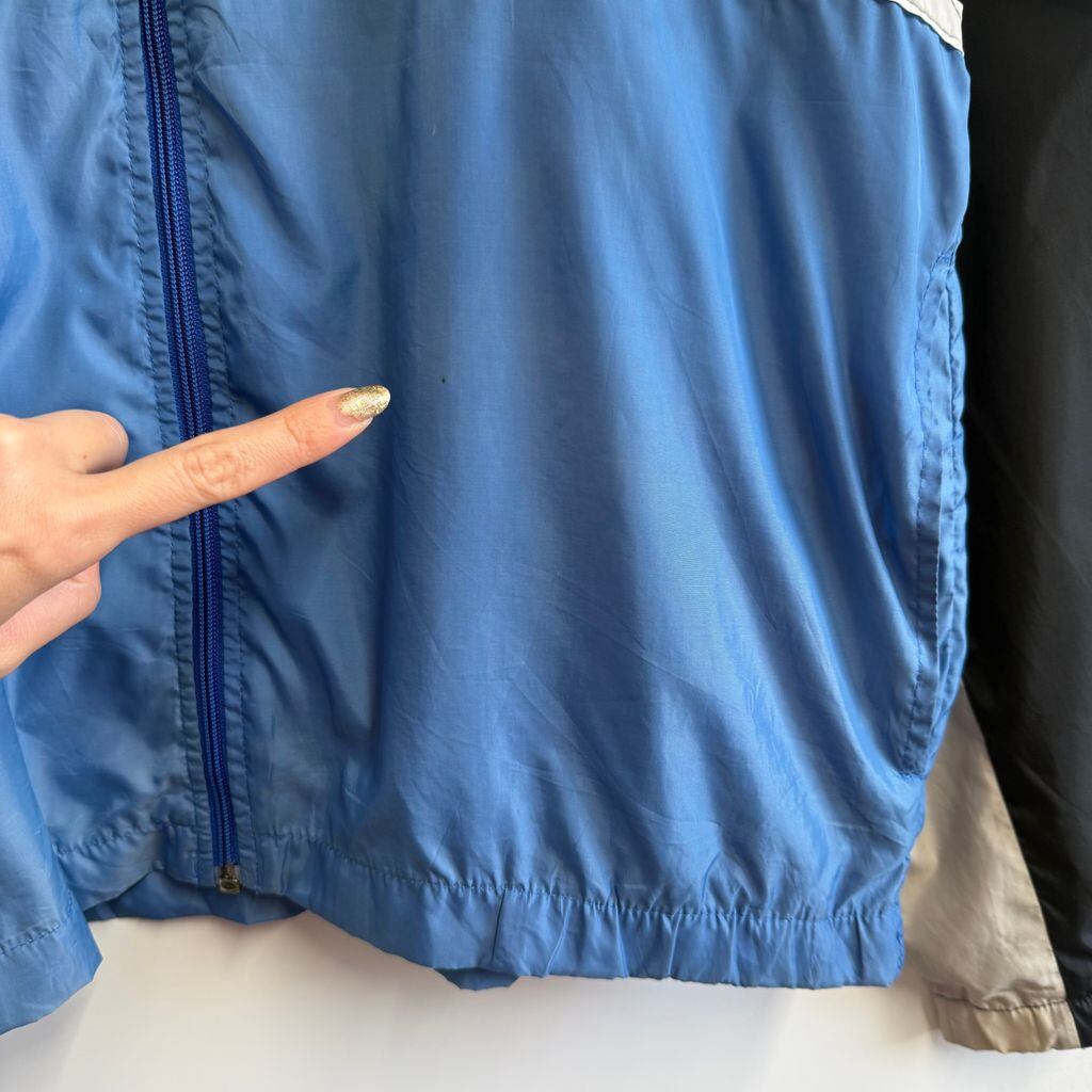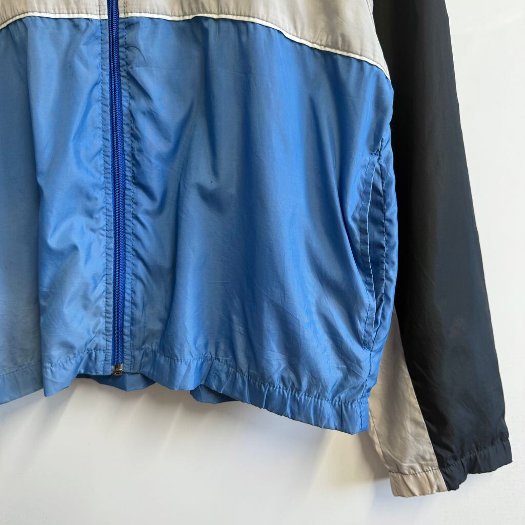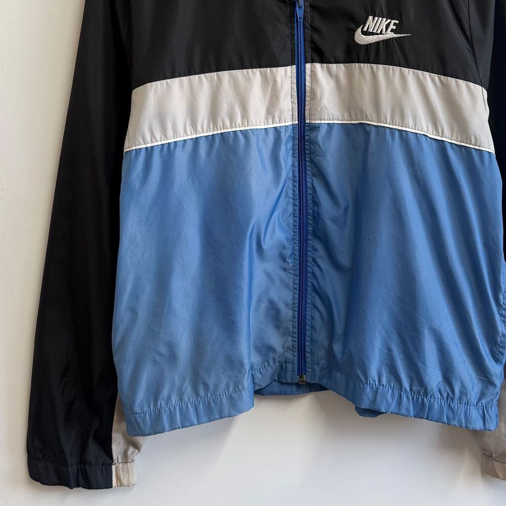 NIKE ナイキ マルチカラーナイロンジャケット フルジップ ポケット付き 黒×ライトグレー×ブルー Sサイズ No.M572