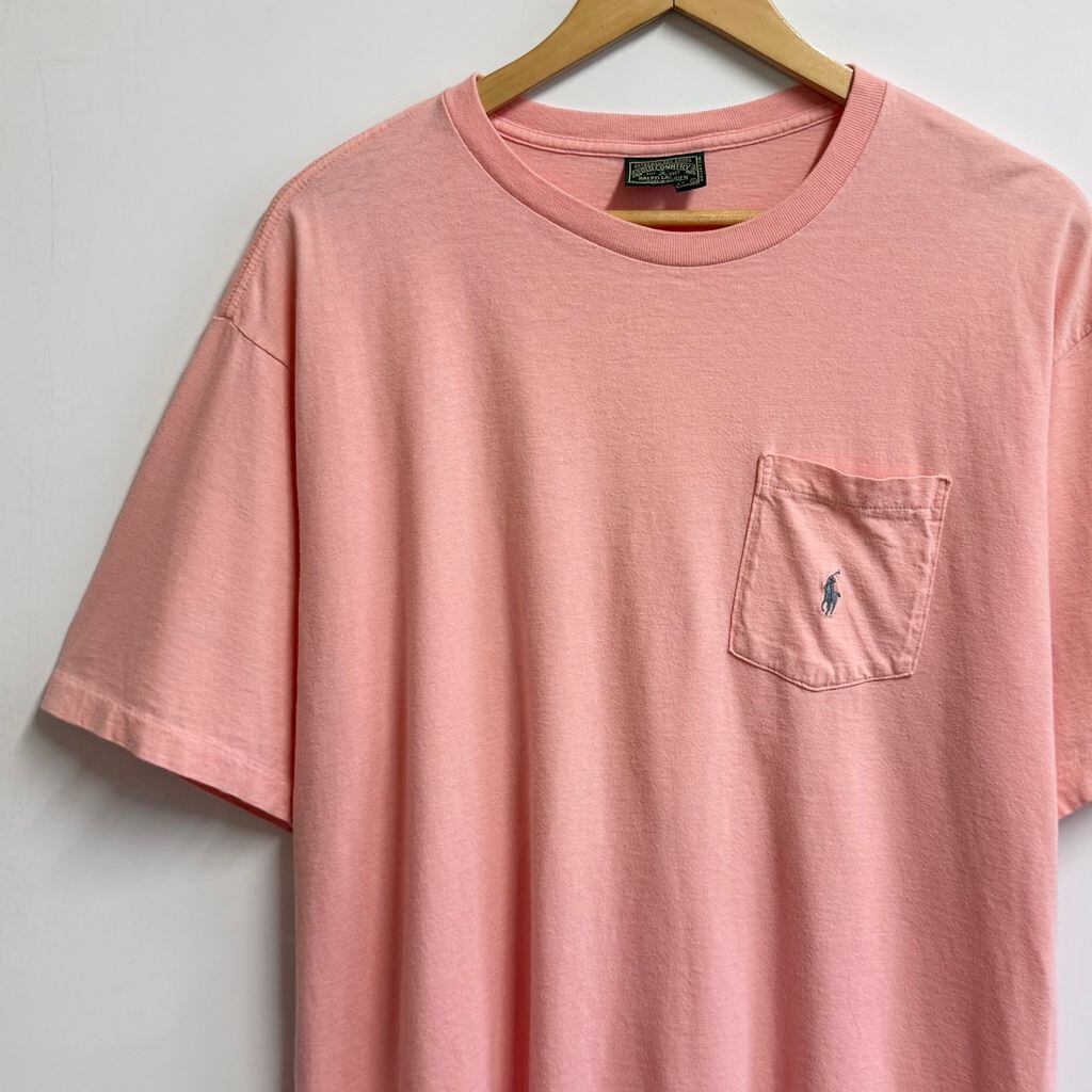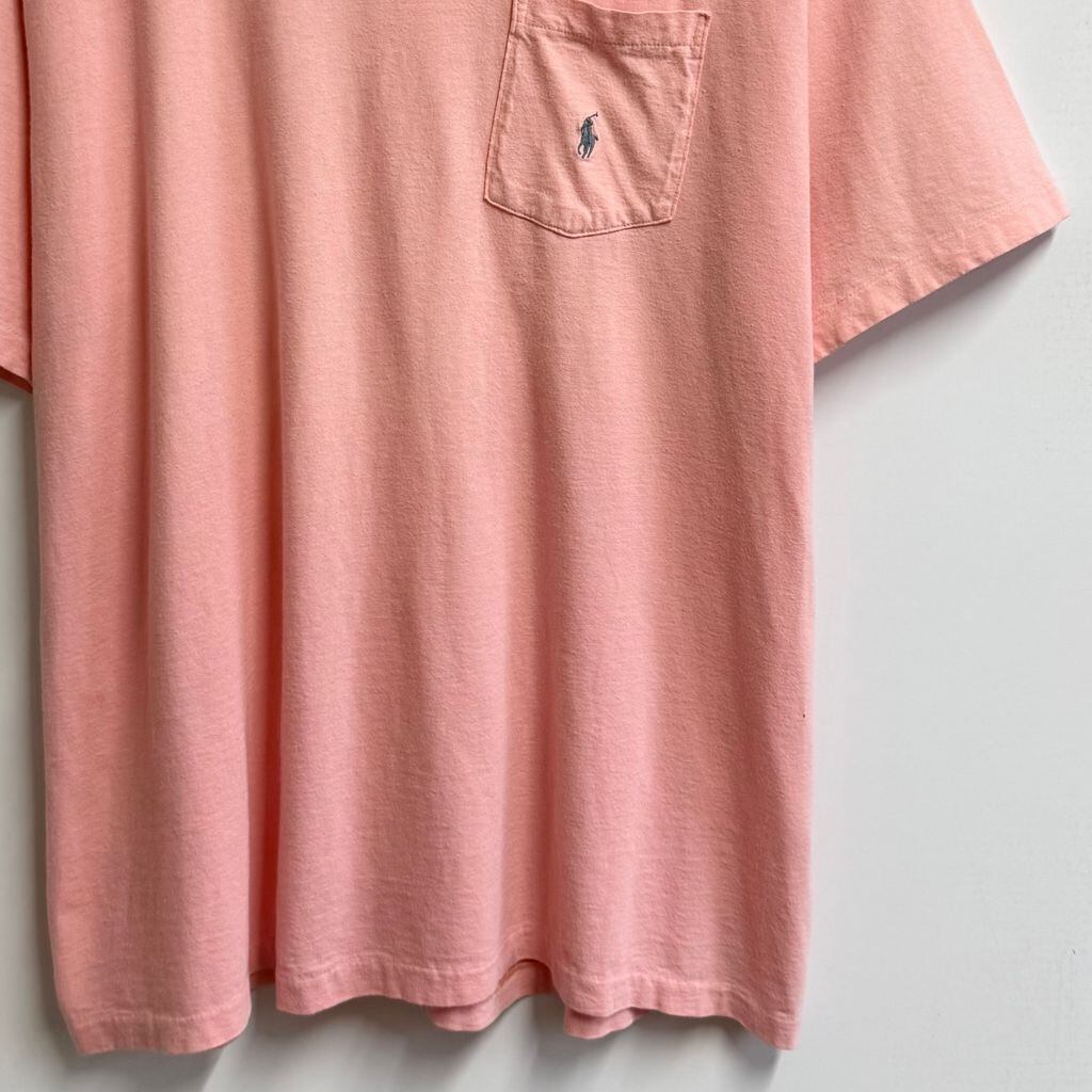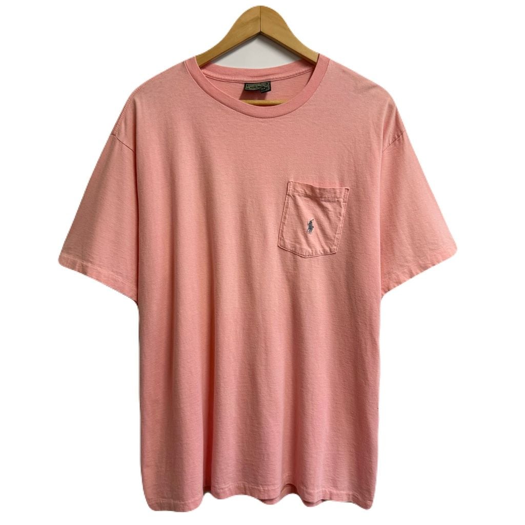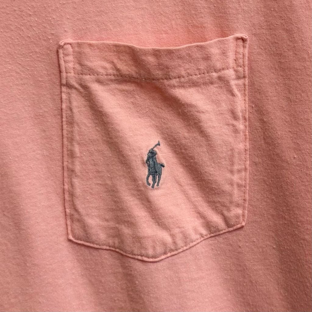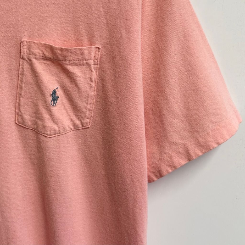 USA製 POLO COUNTRY ポロカントリー RALPH LAUREN ラルフローレン 胸ポケット付き ワンポイントロゴ 刺繍 シングルステッチ 半袖Tシャツ ピンク Lサイズ No.M600
