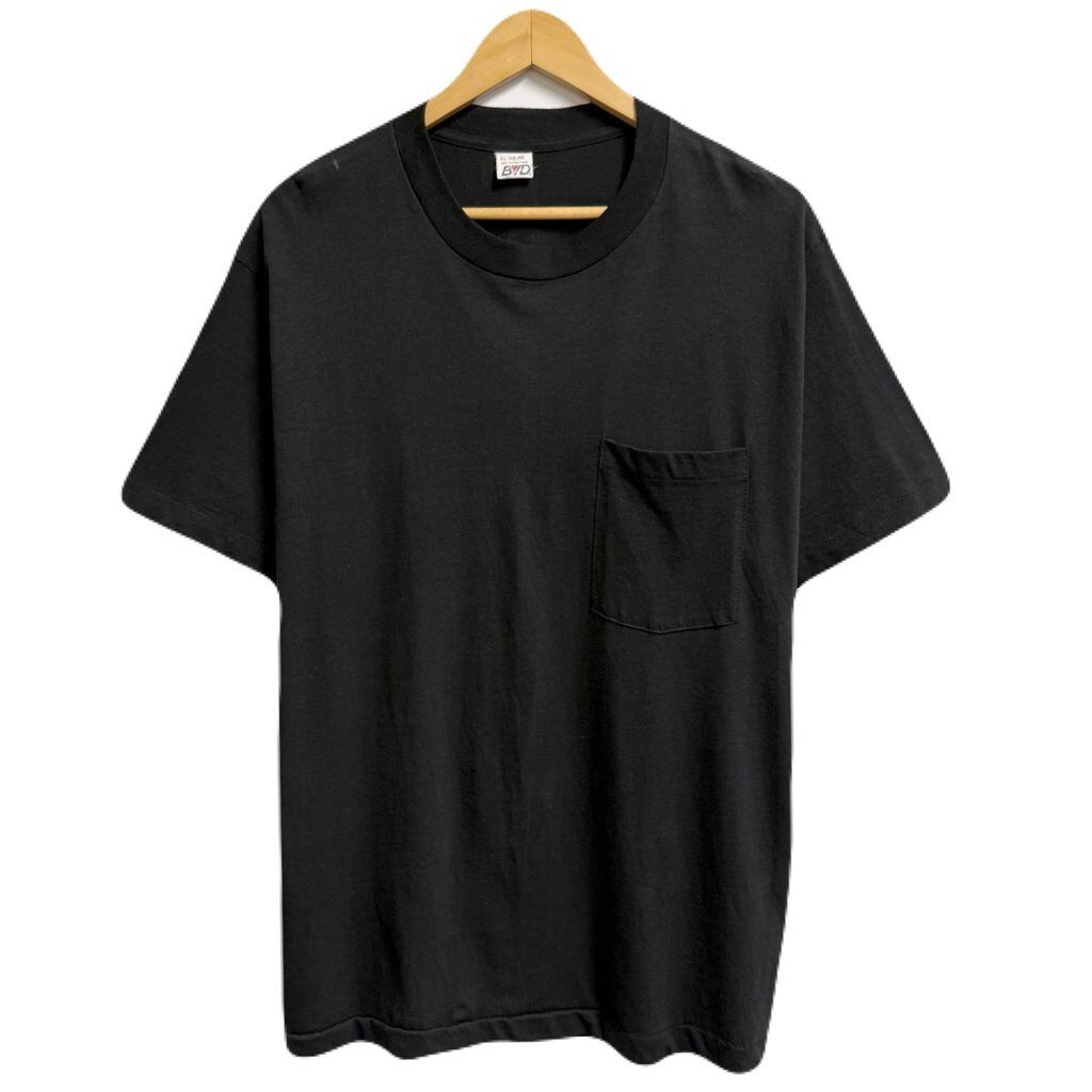 〜90's BVD 無地 胸ポケット付き シングルステッチ 半袖Tシャツ 黒 ブラック XLサイズ No.M602