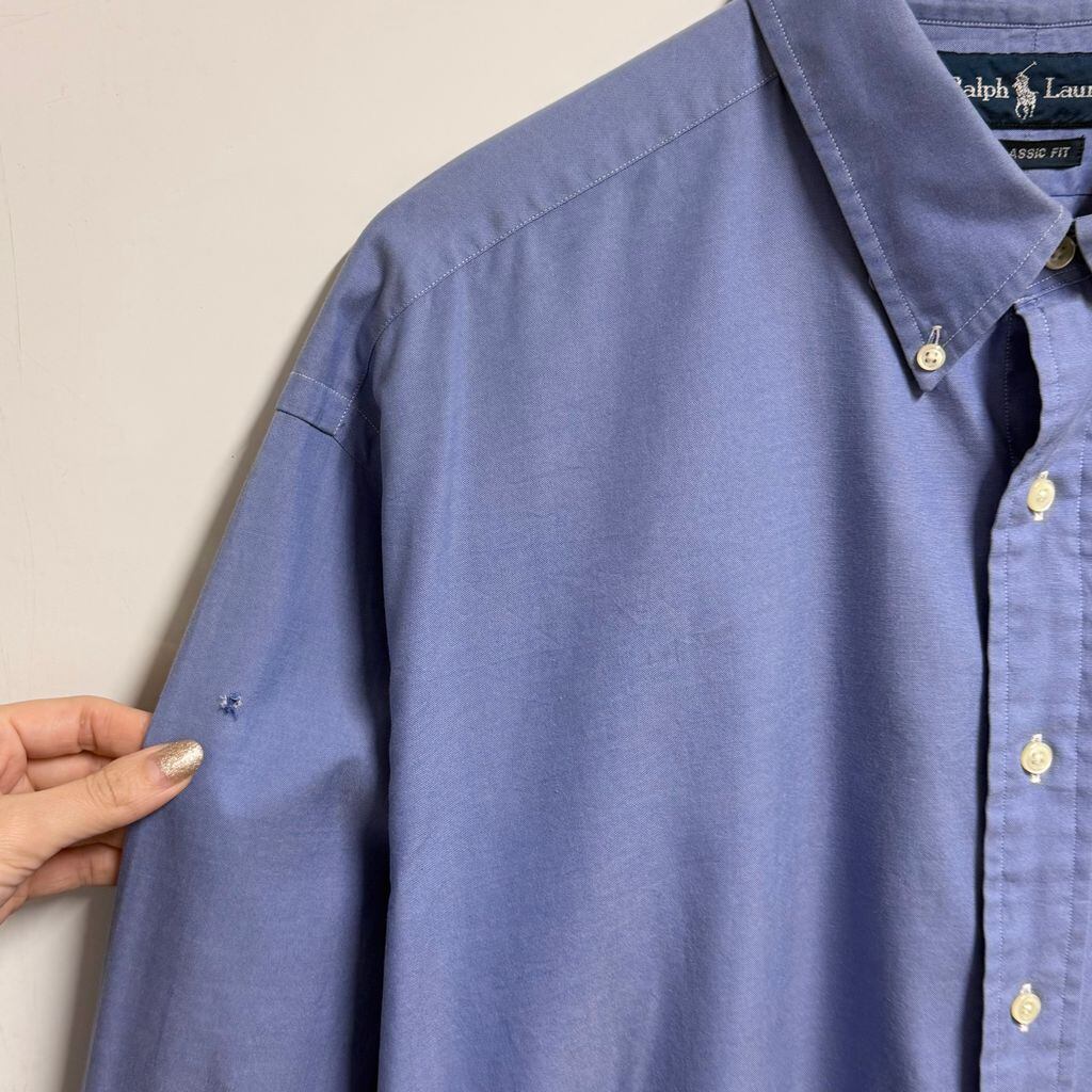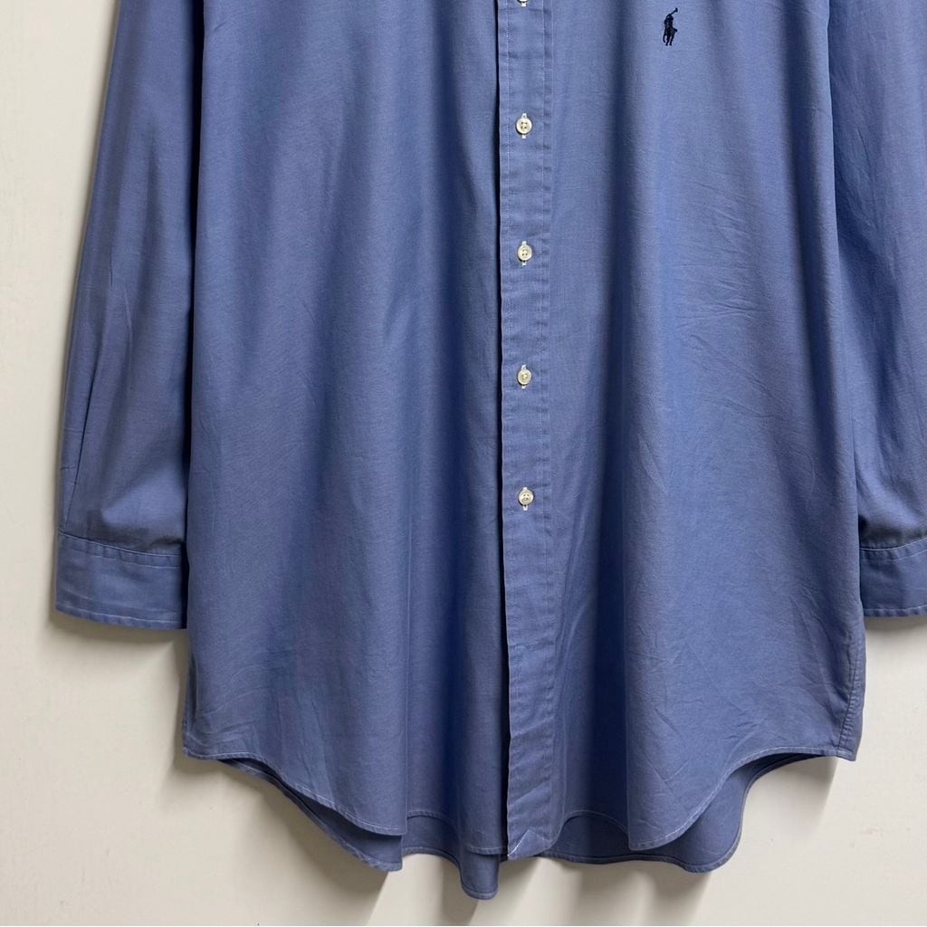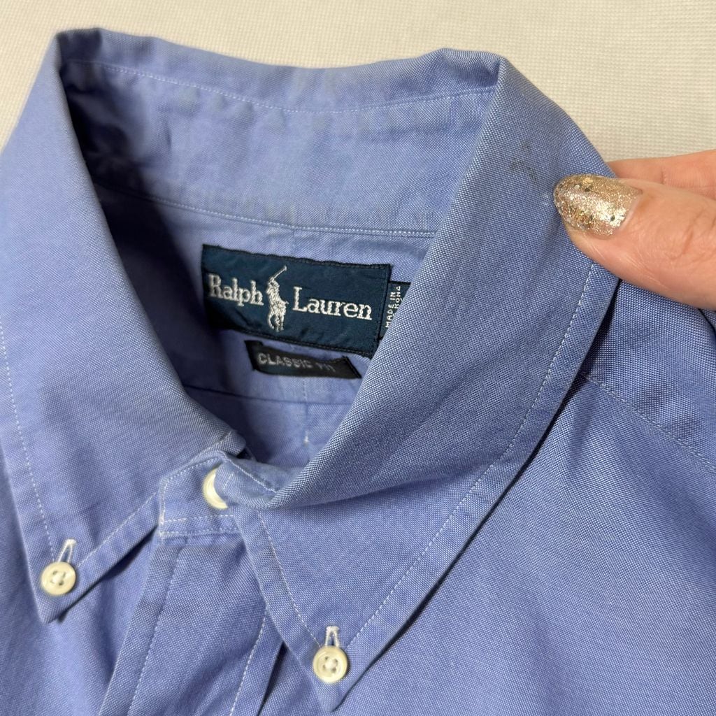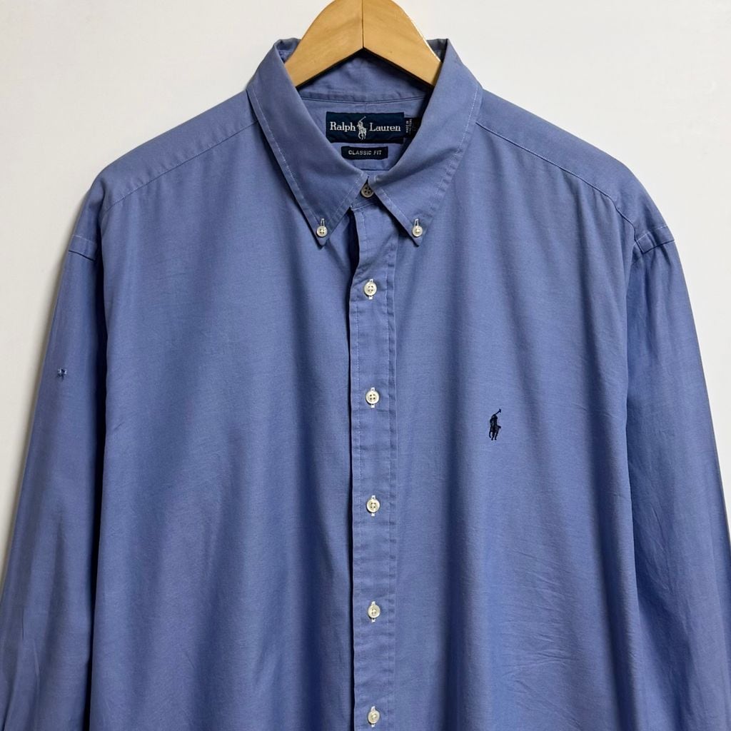 Ralph Lauren ラルフローレン CLASSIC FIT ボタンダウンシャツ コットンシャツ 長袖シャツ ワンポイントロゴ 刺繍 ブルー No.M605