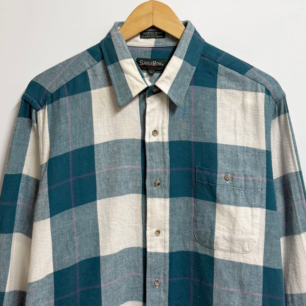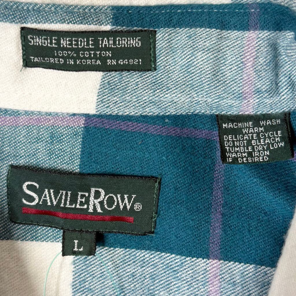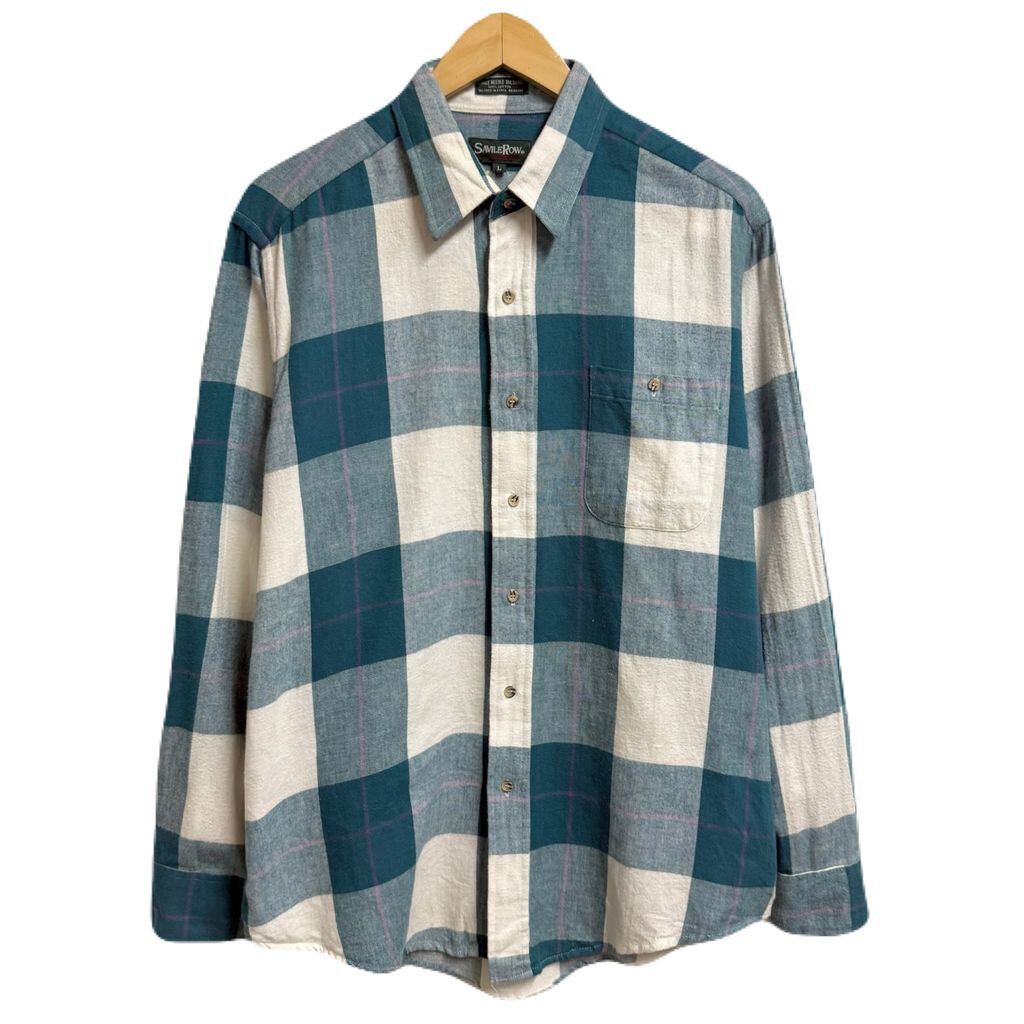 SAVILEROW コットンシャツ チェック柄 ポケット付き 長袖シャツ グリーン×白×パープル Lサイズ No.M607