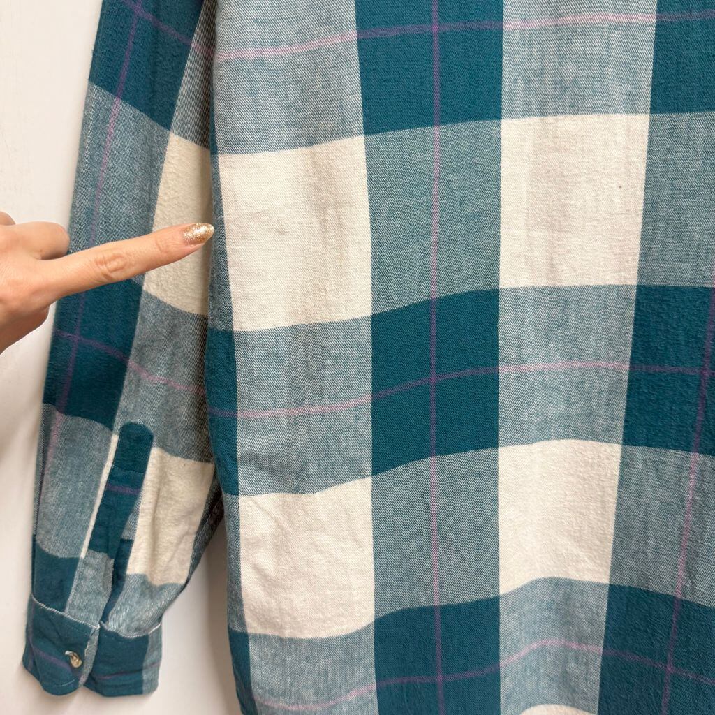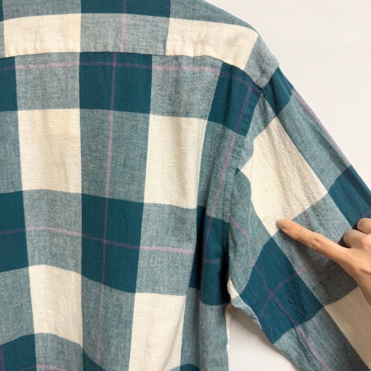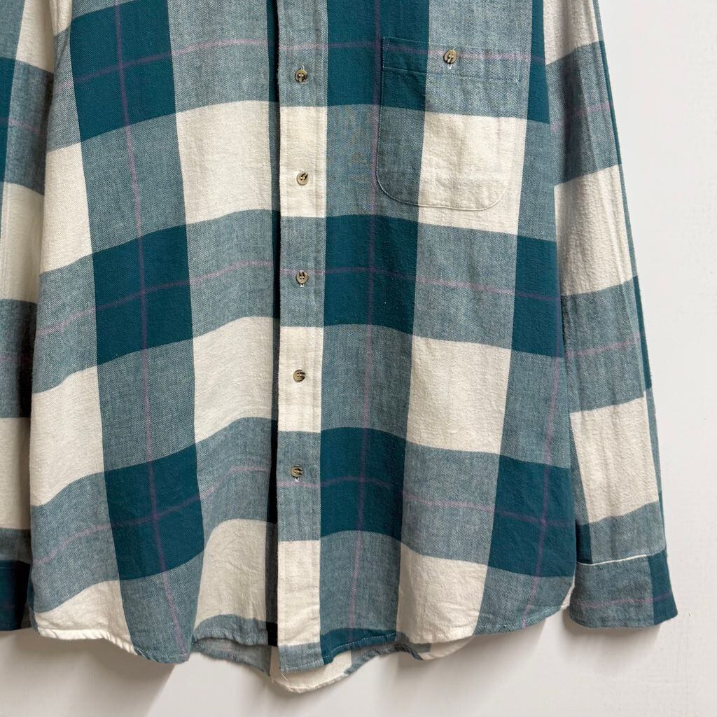 SAVILEROW コットンシャツ チェック柄 ポケット付き 長袖シャツ グリーン×白×パープル Lサイズ No.M607