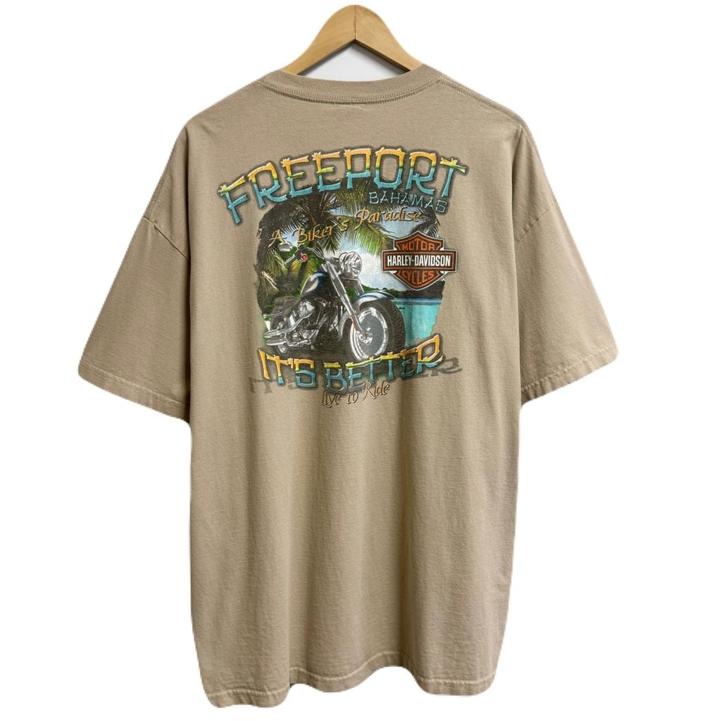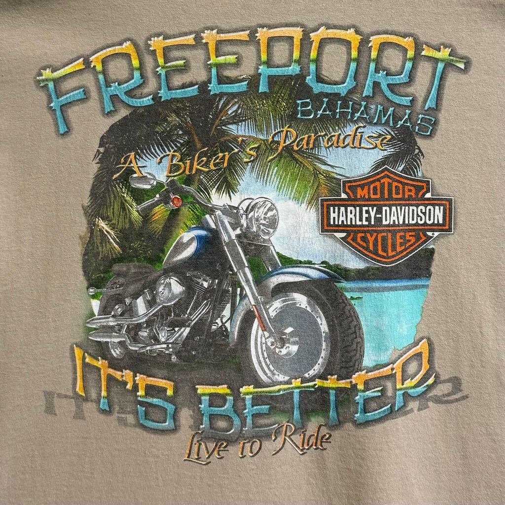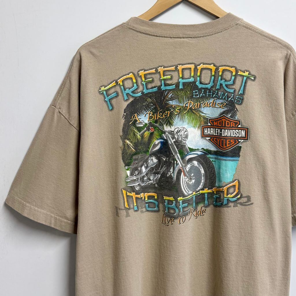 HARLEY DAVIDSON ハーレーダビッドソン 両面プリント フリーポート バハマ 半袖Tシャツ ベージュ 2XLサイズ No.M601