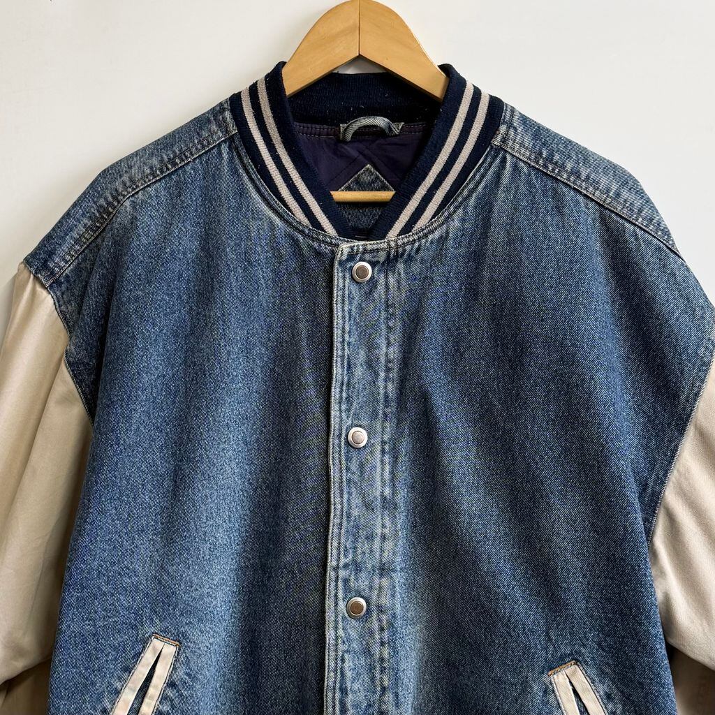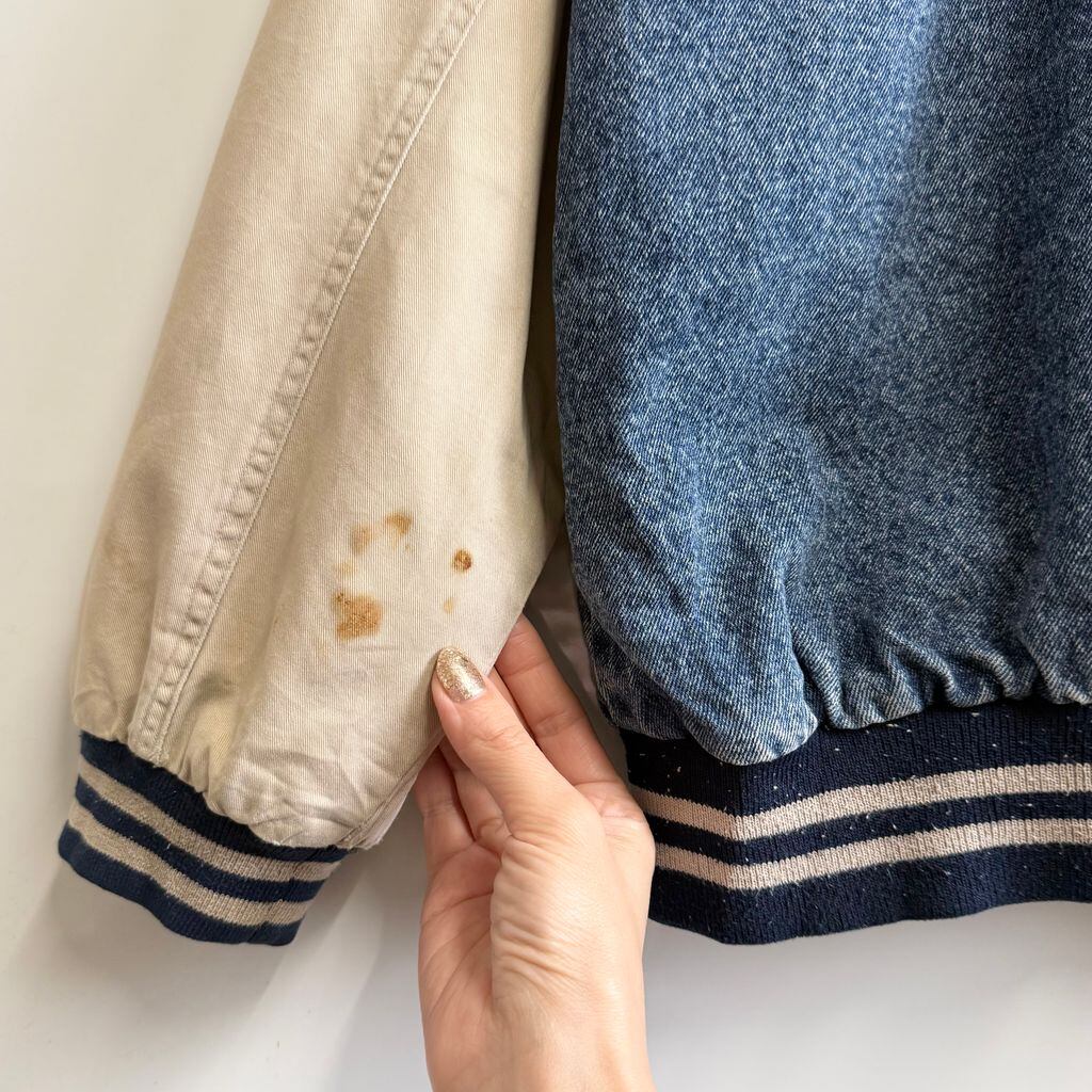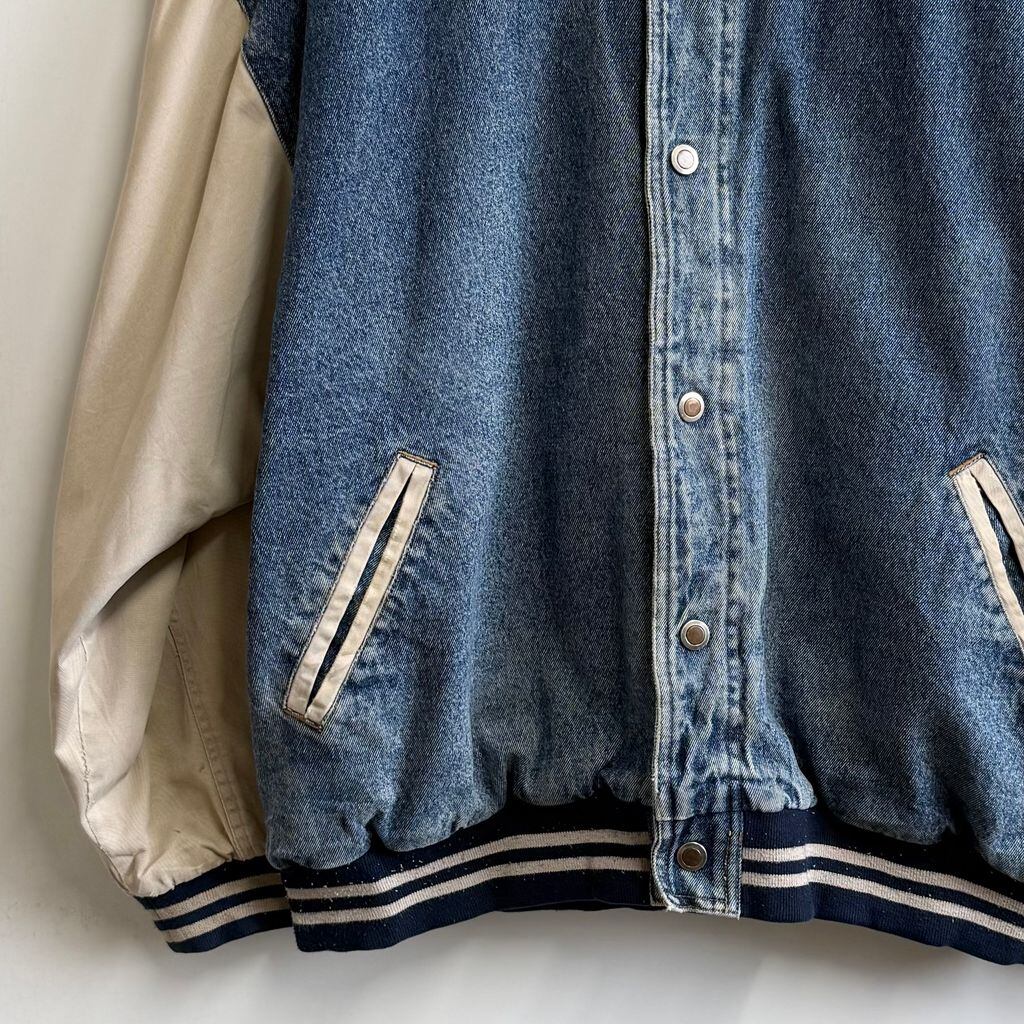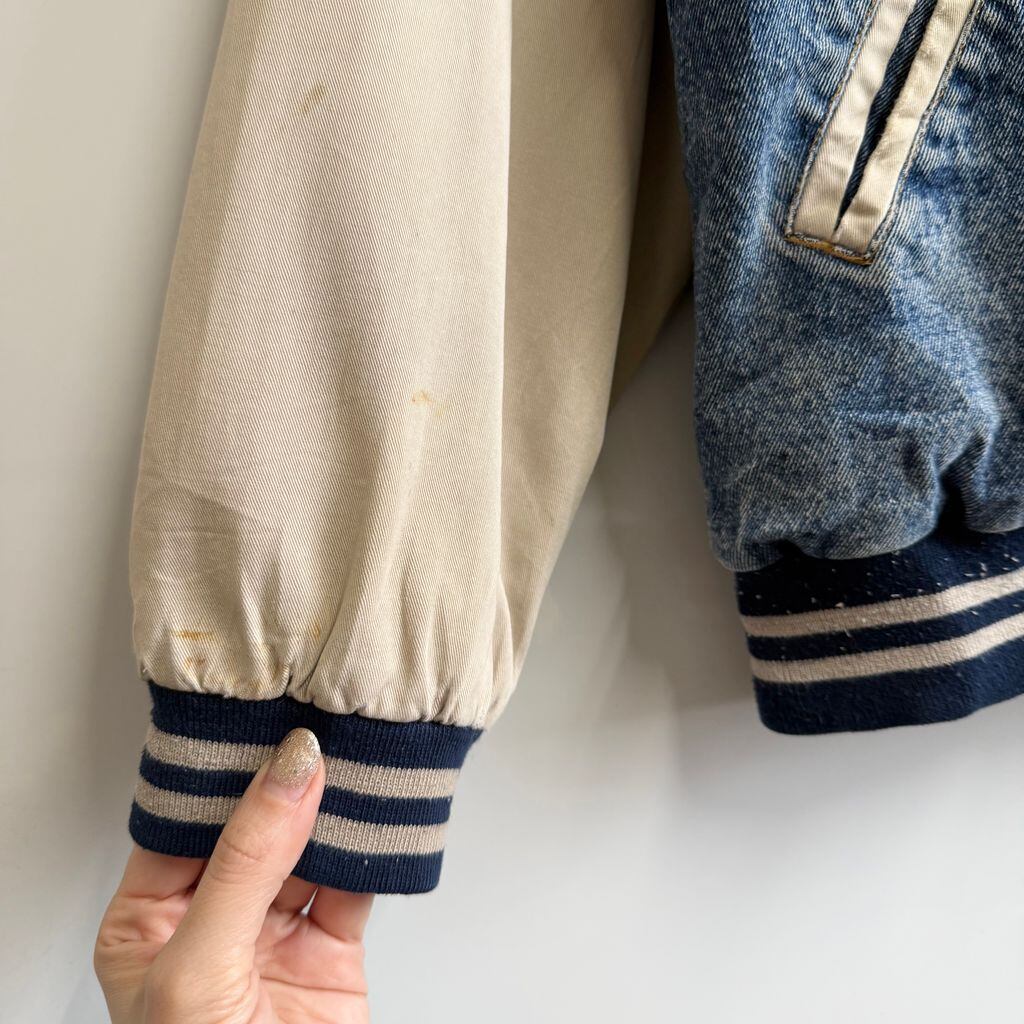 basic EDITIONS デニムスタジャン 切り替えデザイン リブライン スナップボタン 青×ベージュ Lサイズ No.M615
