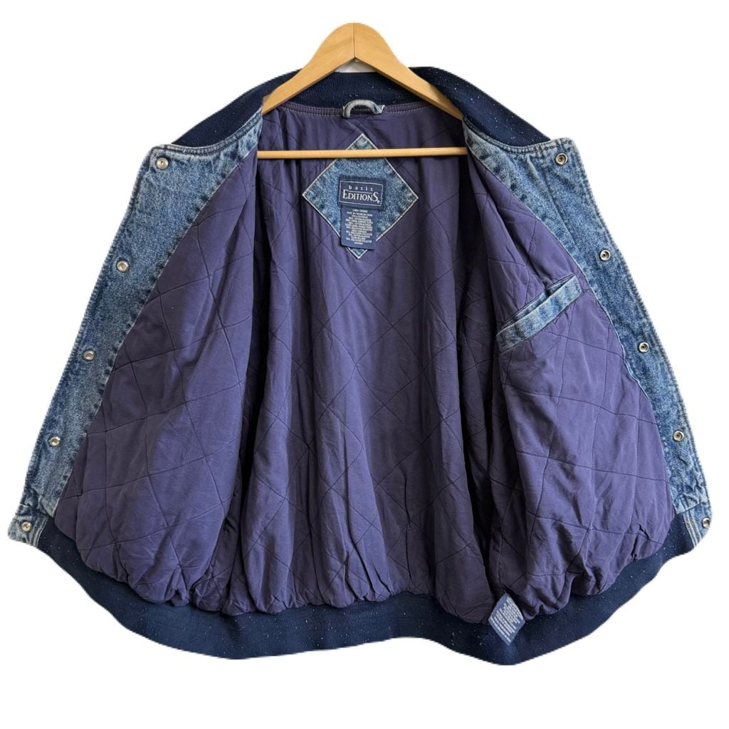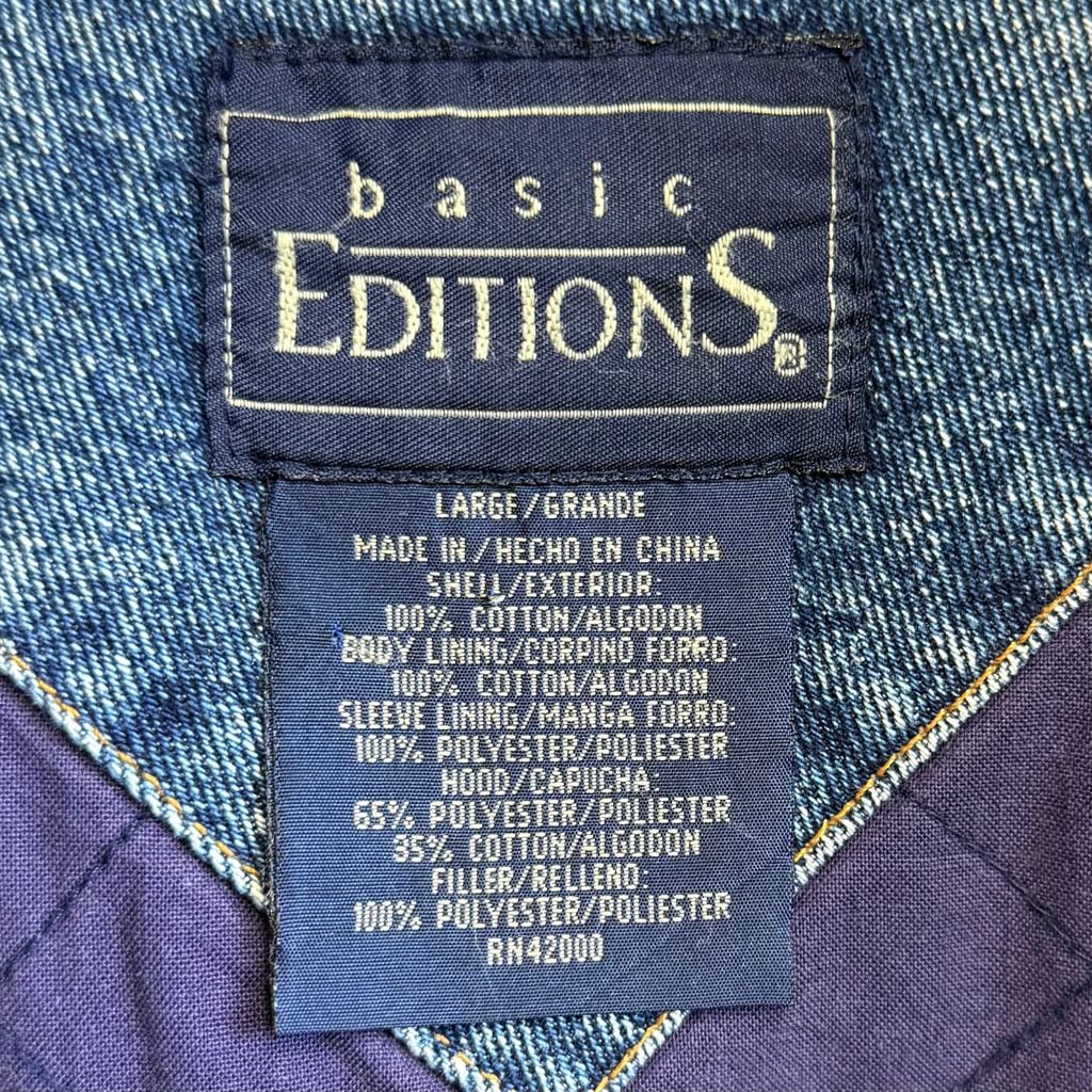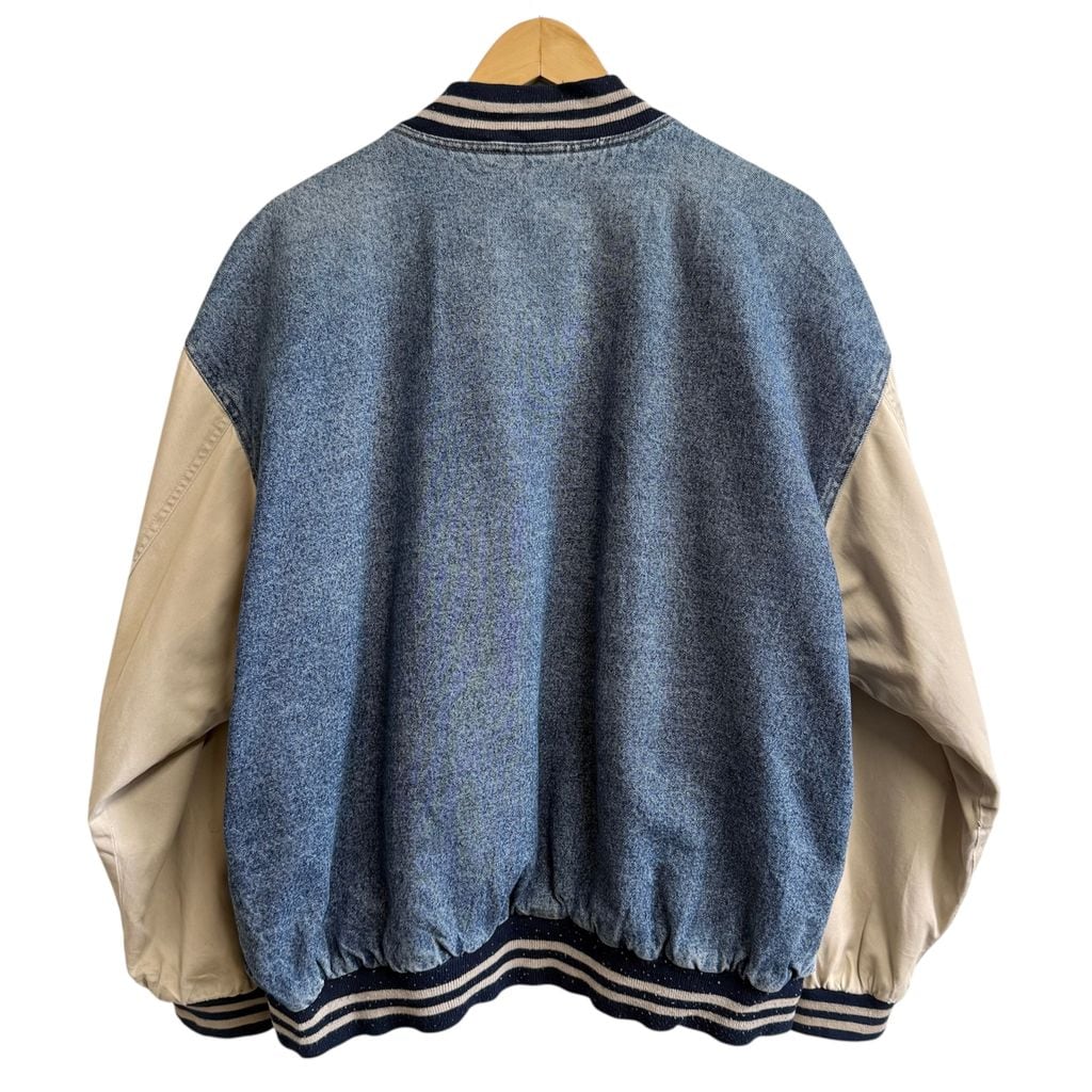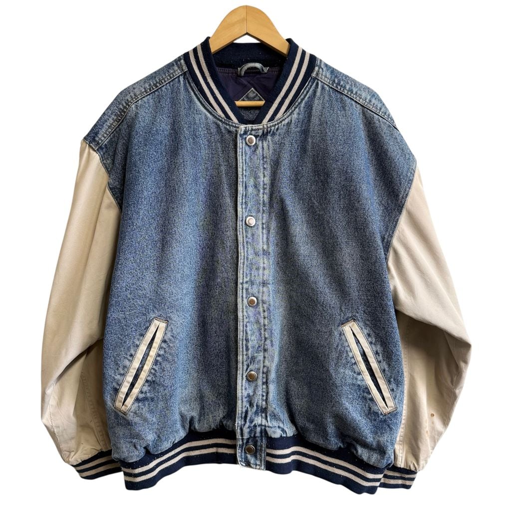 basic EDITIONS デニムスタジャン 切り替えデザイン リブライン スナップボタン 青×ベージュ Lサイズ No.M615