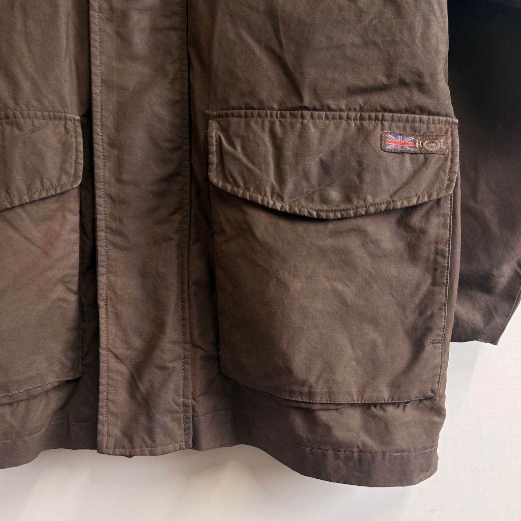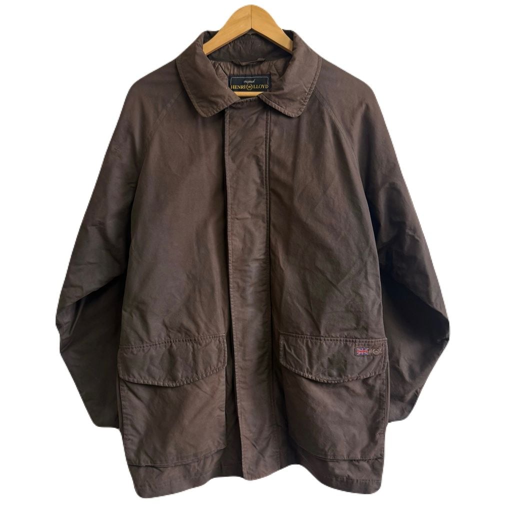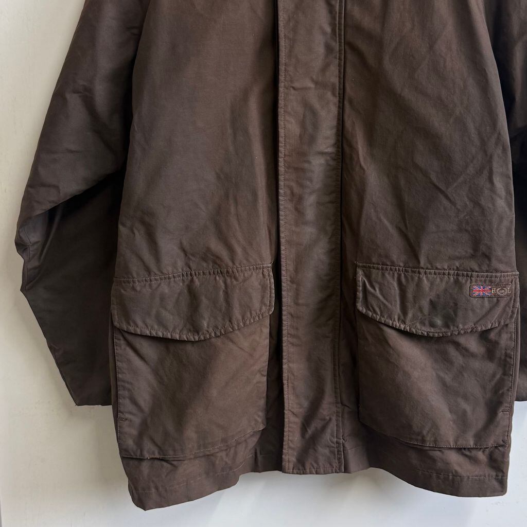 HENRI LLOYD オイルドジャケット キルティングライニング フロントボタン×フルジップ ダークブラウン Lサイズ No.M617