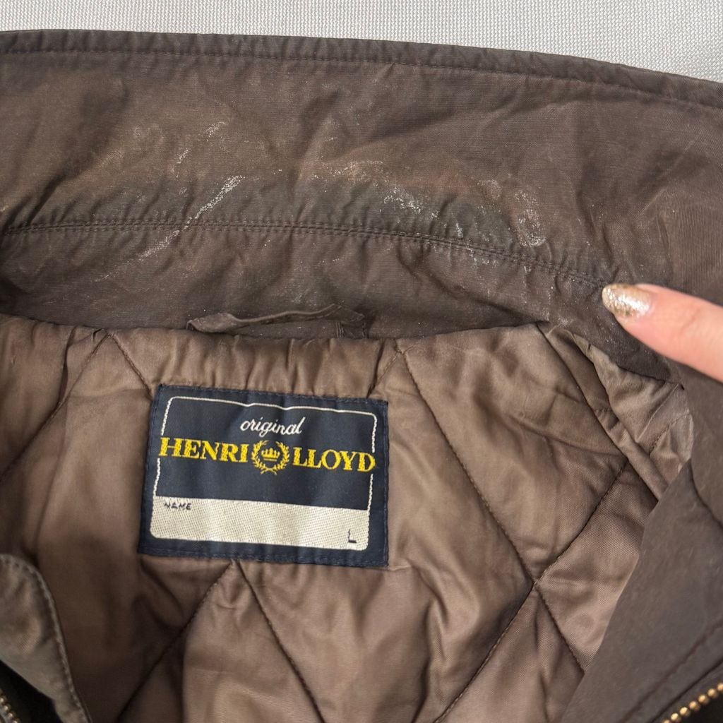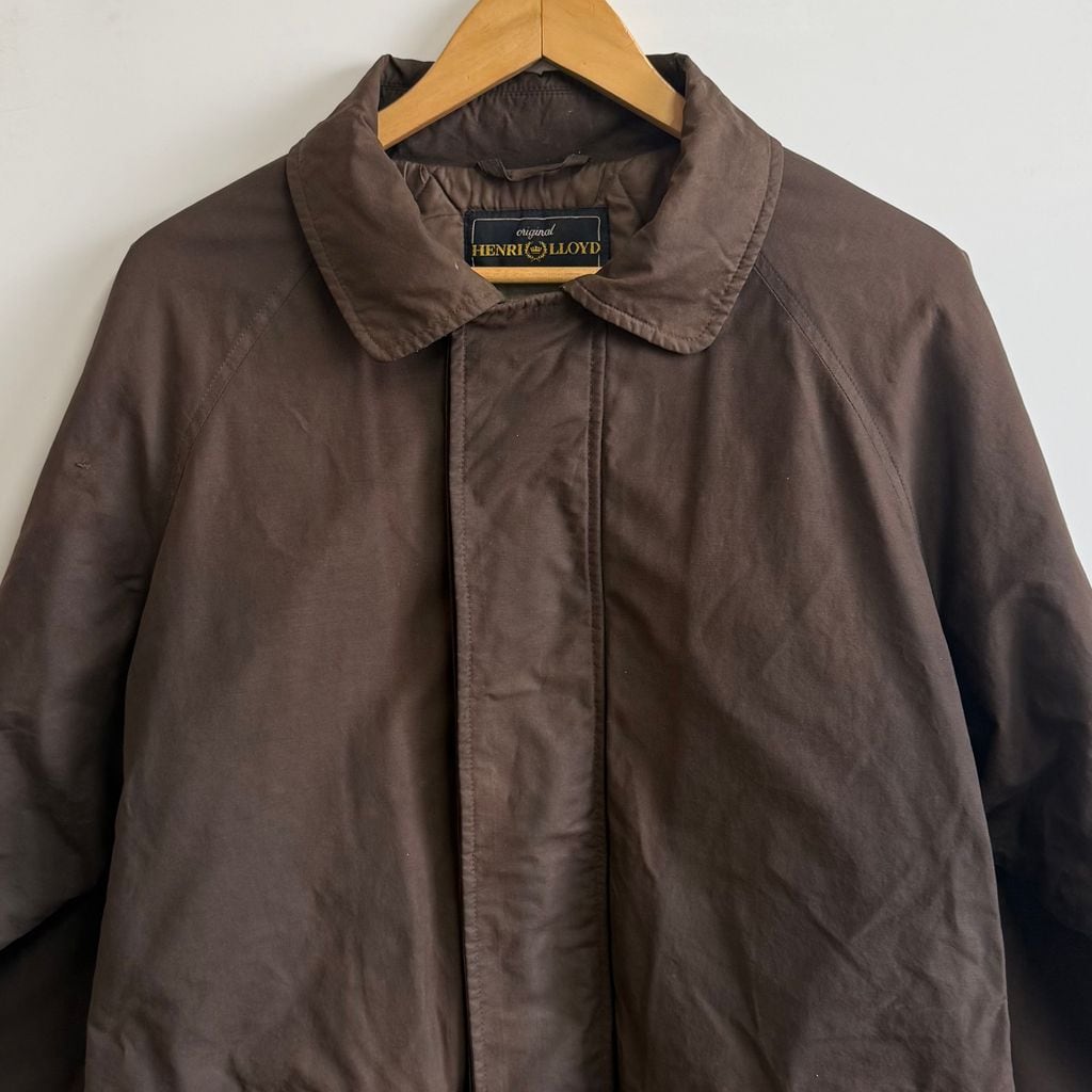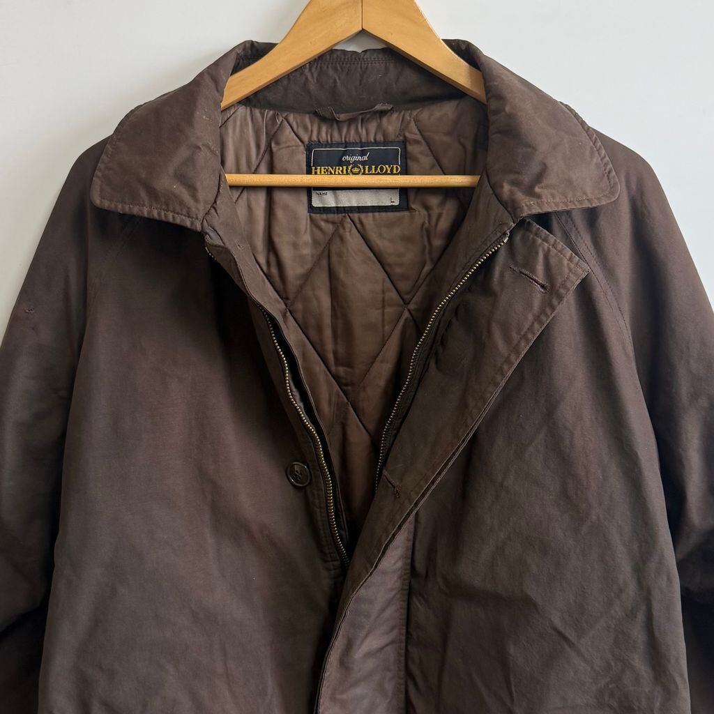 HENRI LLOYD オイルドジャケット キルティングライニング フロントボタン×フルジップ ダークブラウン Lサイズ No.M617