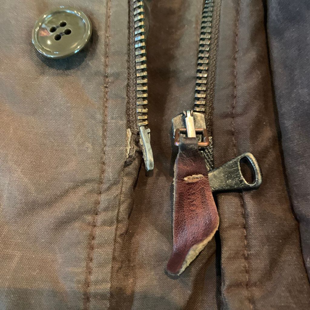 ジップ部分の蝶棒の生地裂け有り、閉じる際、少し難あり