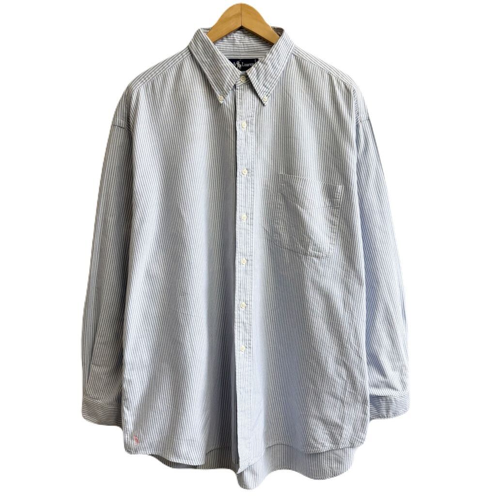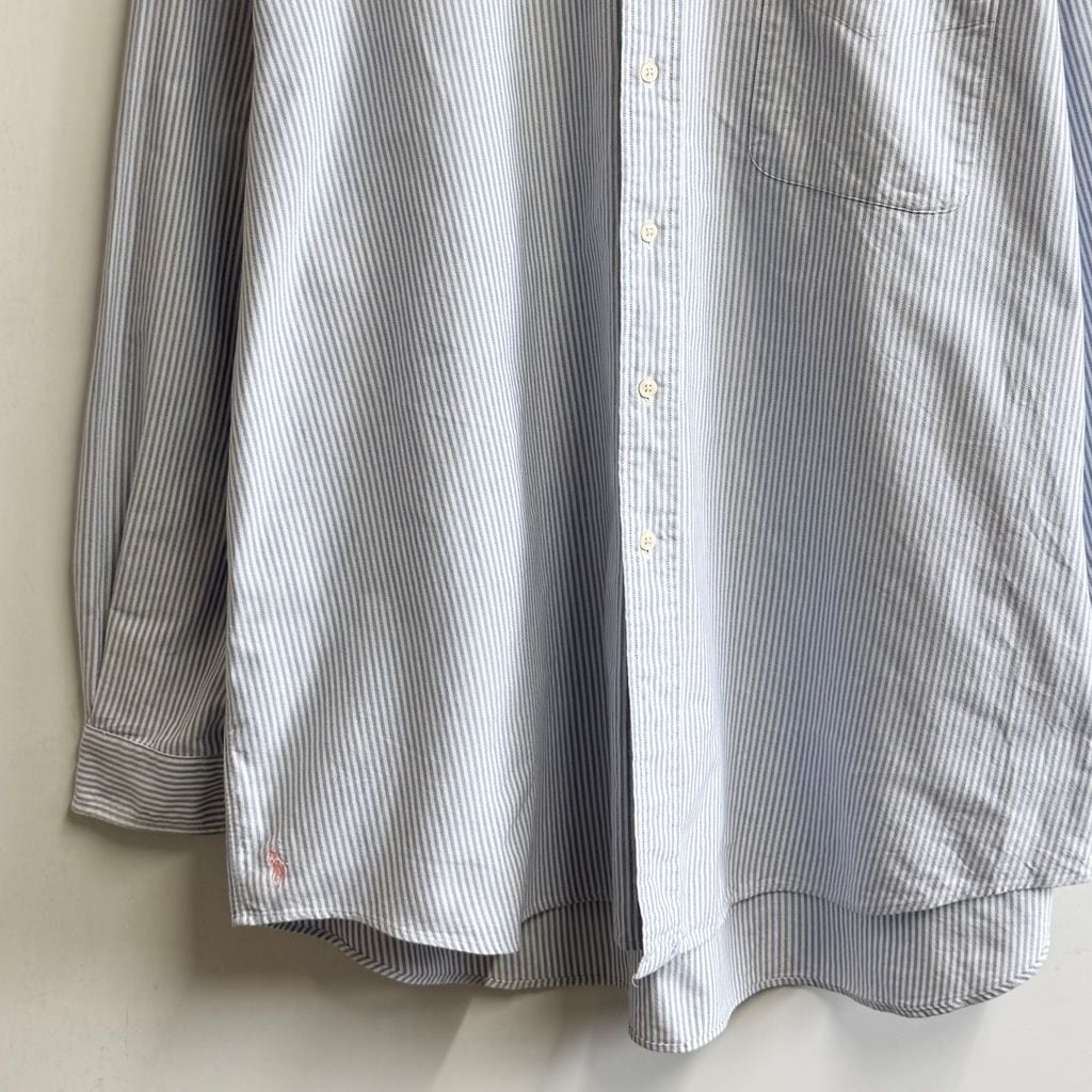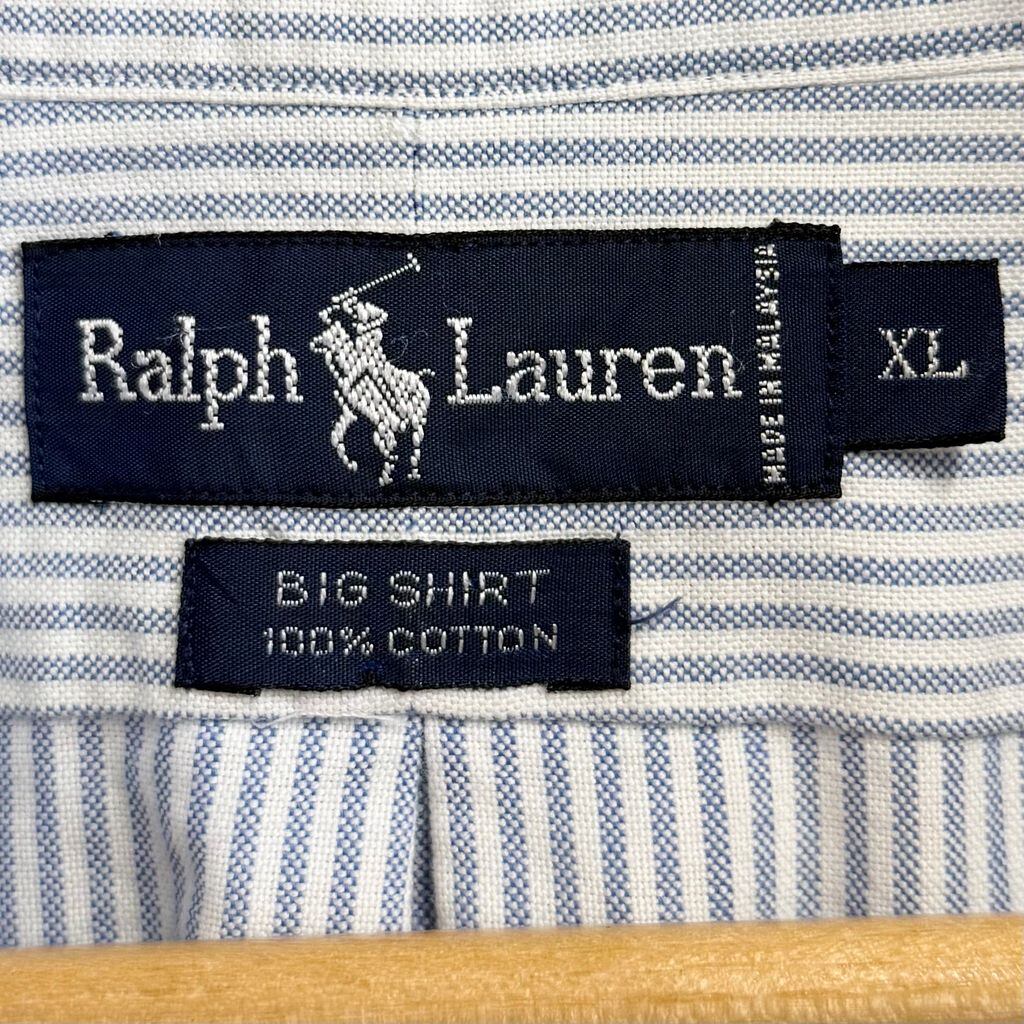 Ralph Lauren ラルフローレン BIG SHIRT ボタンダウンシャツ コットンシャツ ストライプ ポケット付き 長袖シャツ ワンポイントロゴ 刺繍 青×白 XLサイズ No.M623