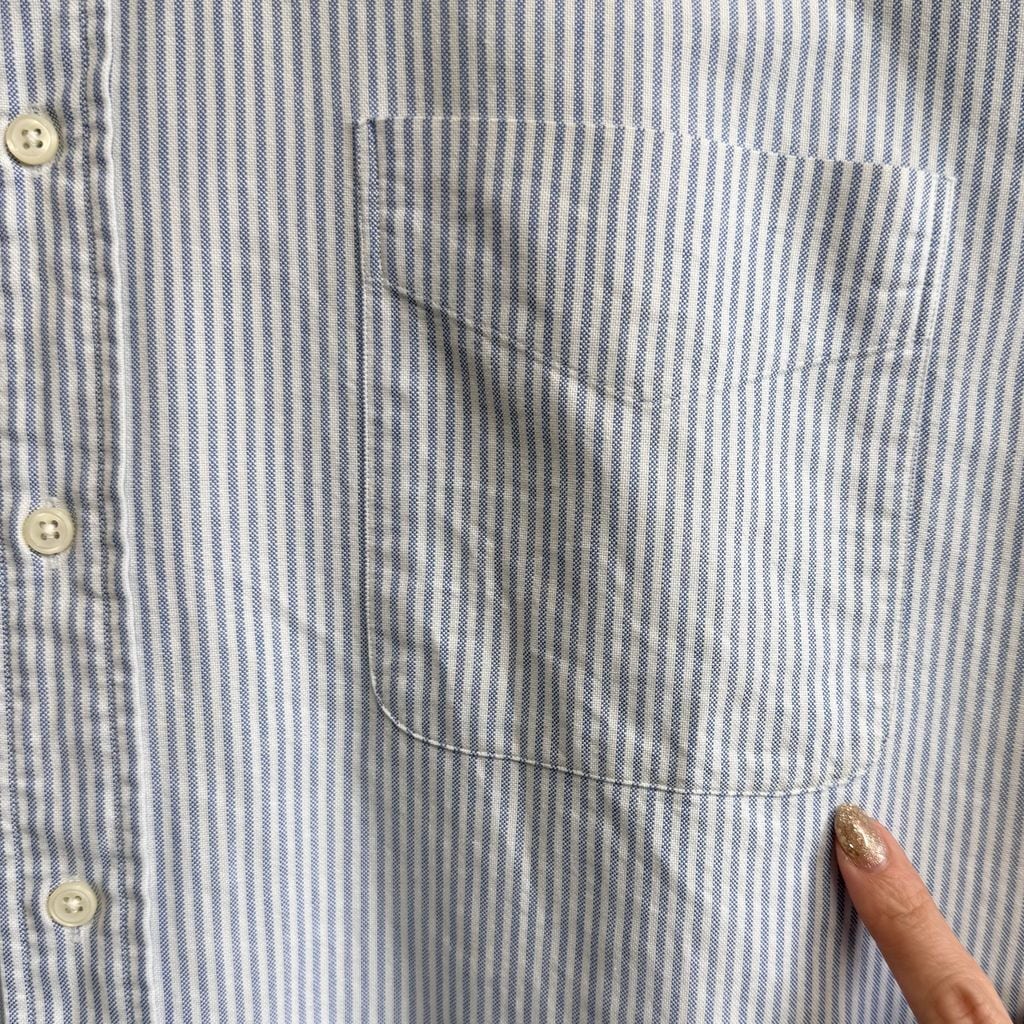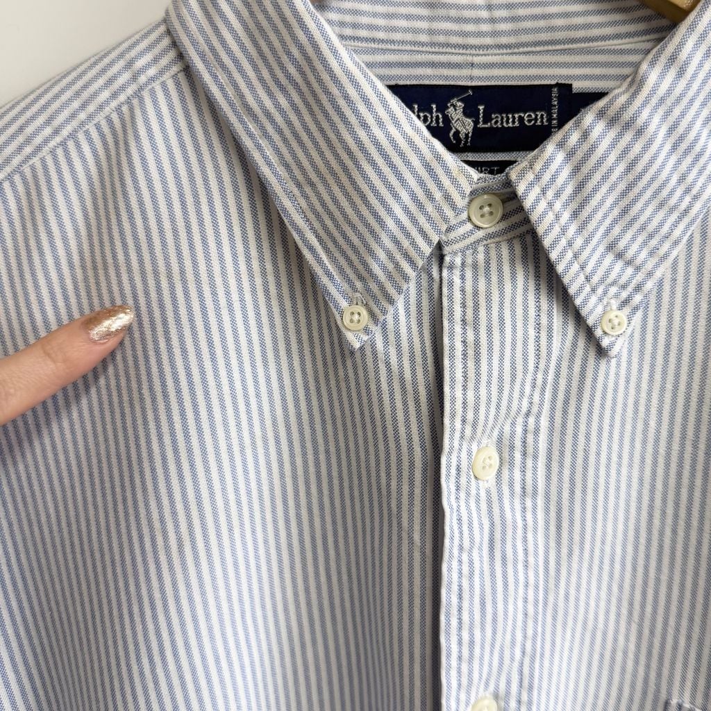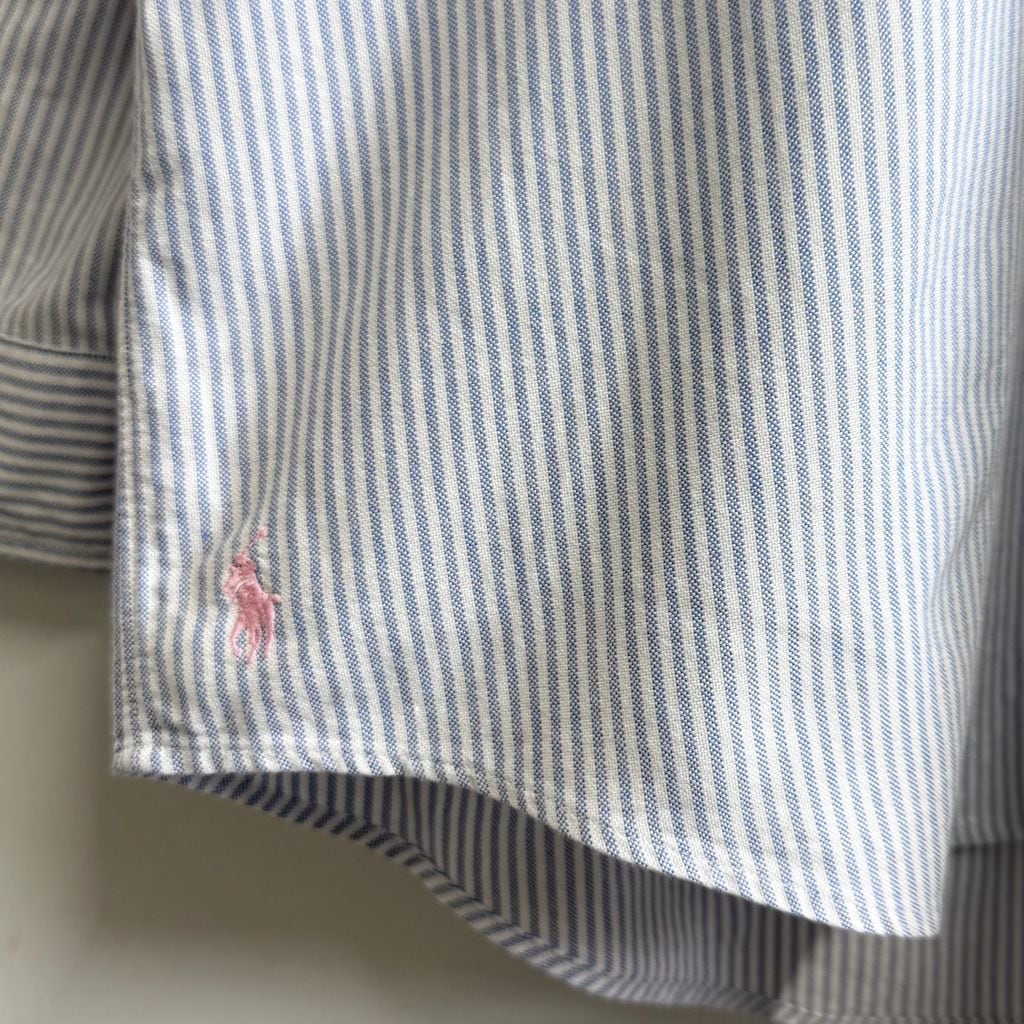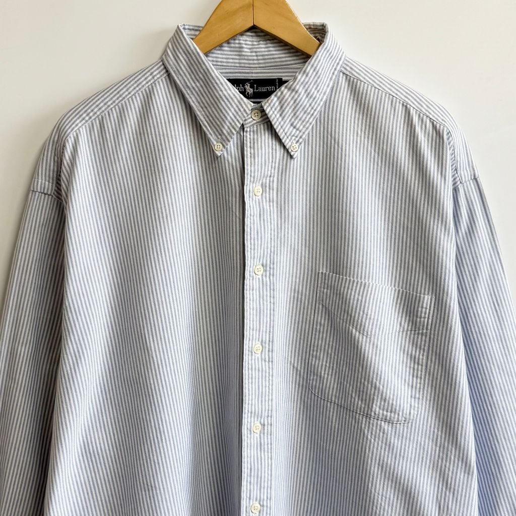 Ralph Lauren ラルフローレン BIG SHIRT ボタンダウンシャツ コットンシャツ ストライプ ポケット付き 長袖シャツ ワンポイントロゴ 刺繍 青×白 XLサイズ No.M623