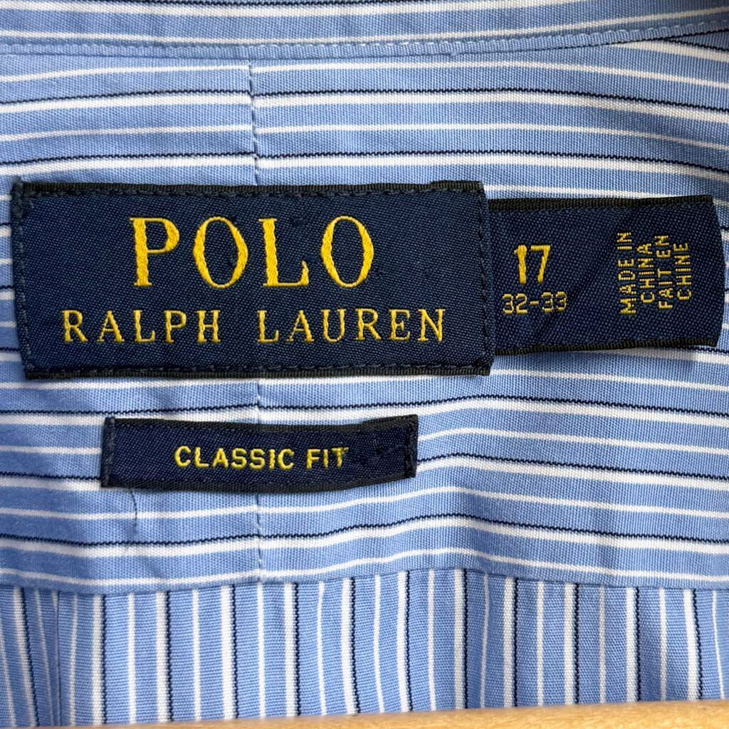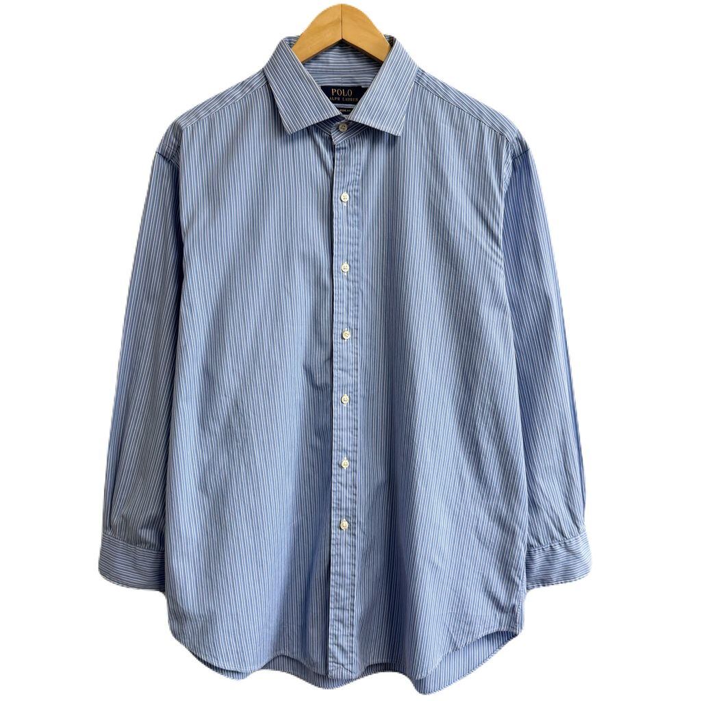 Polo Ralph Lauren ポロ ラルフローレン CUSTOM FIT コットンシャツ ストライプ 長袖シャツ 水色×白×黒 No.M625