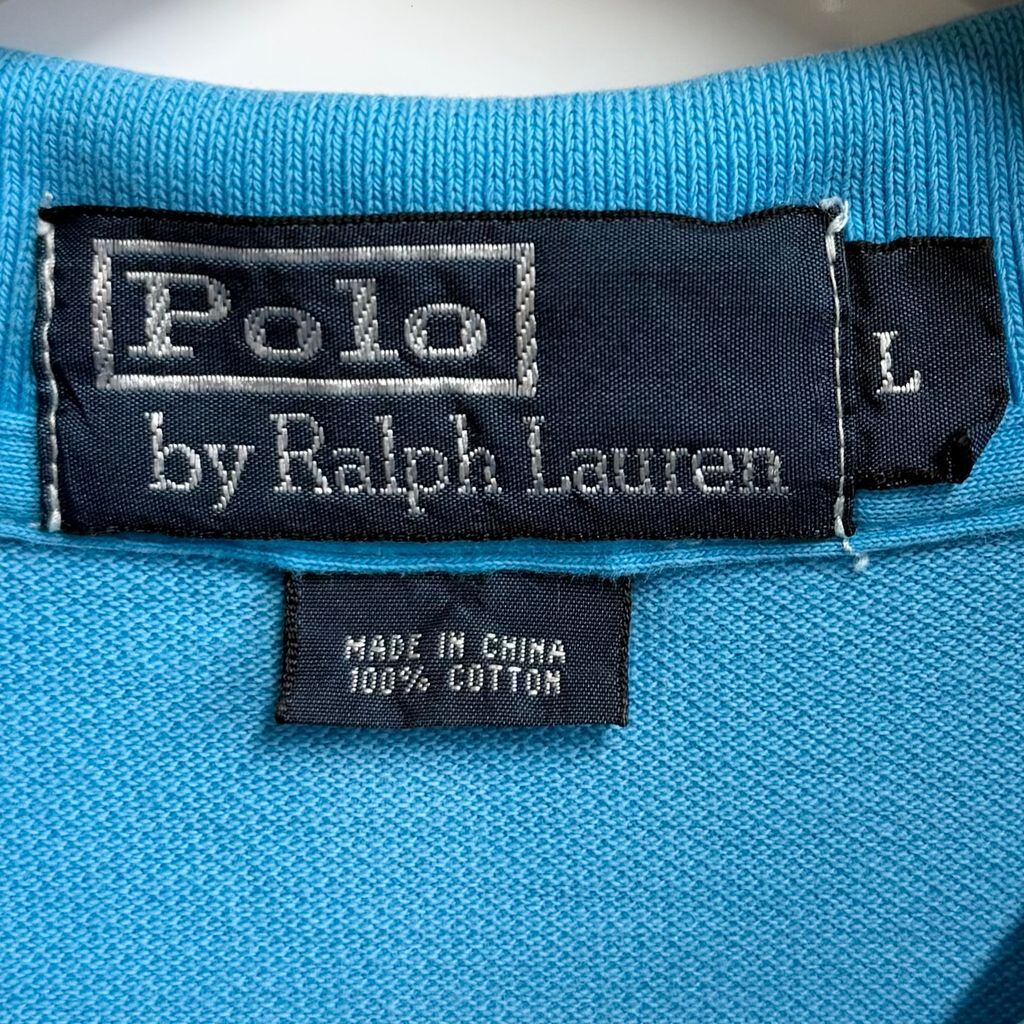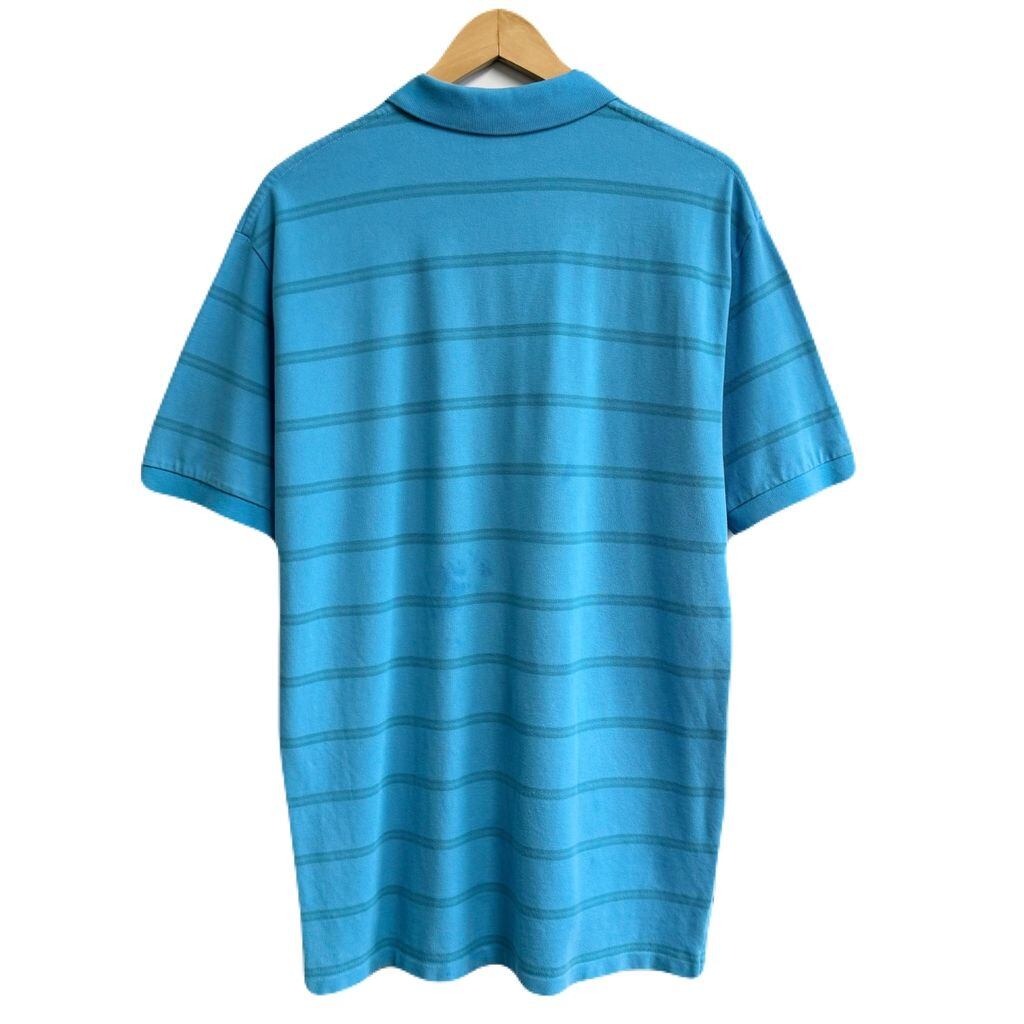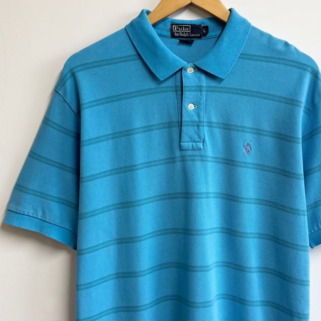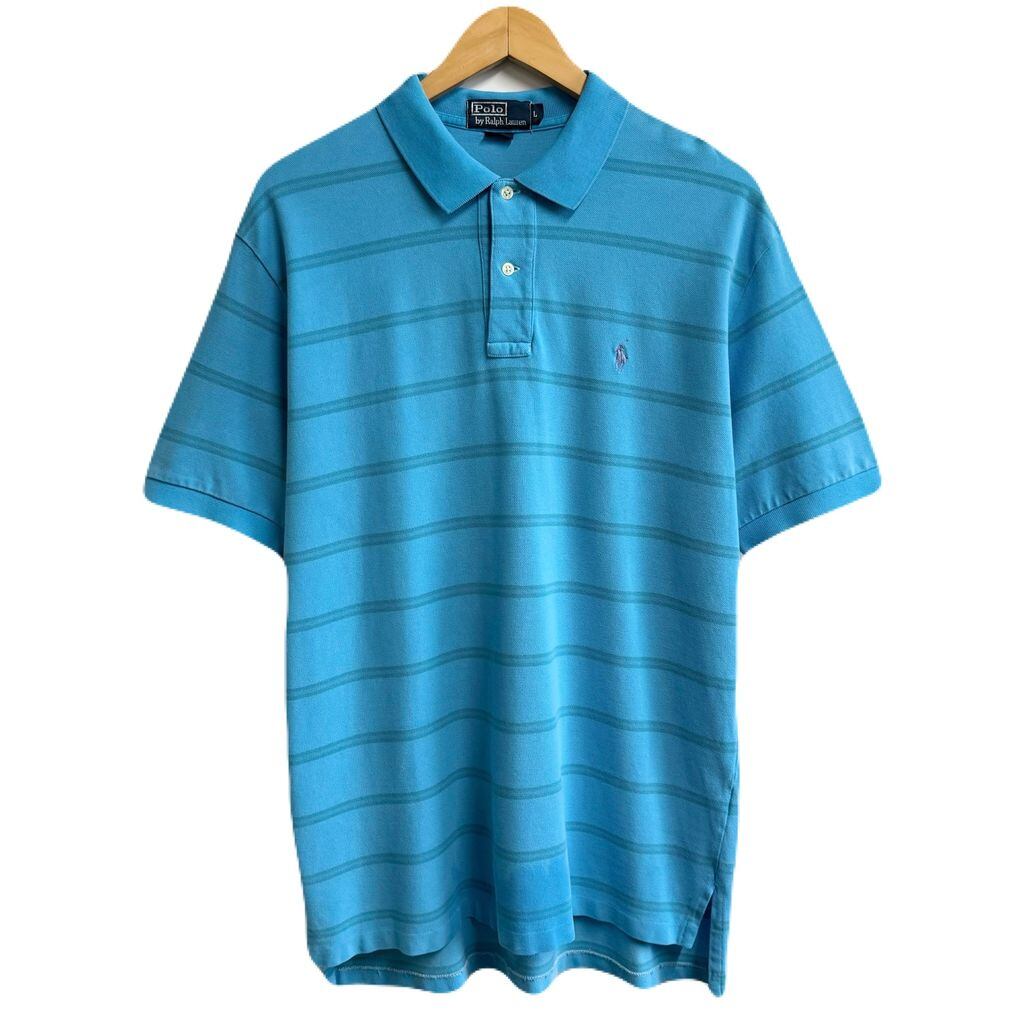 Polo Ralph Lauren ポロ ラルフローレン ポロシャツ 半袖 ボーダー ワンポイントロゴ 刺繍 水色×グリーン Lサイズ No.M631