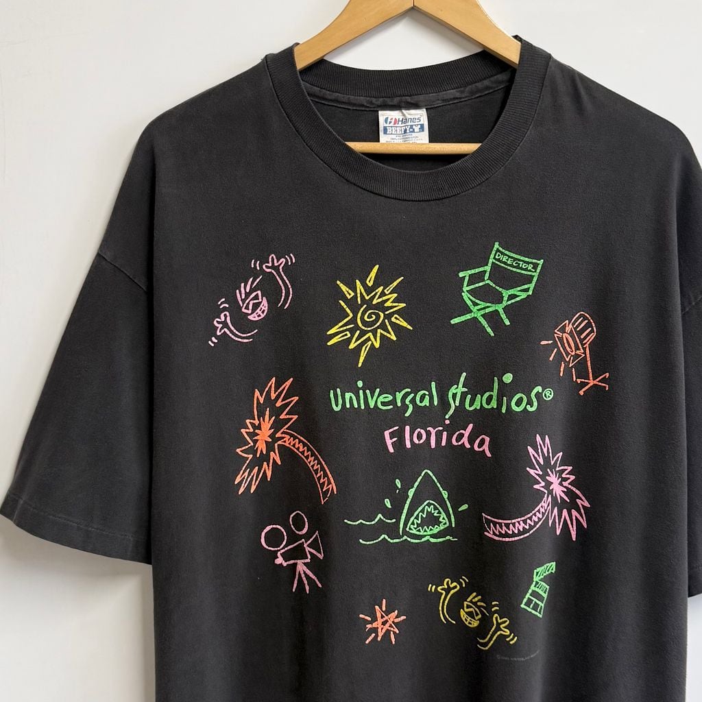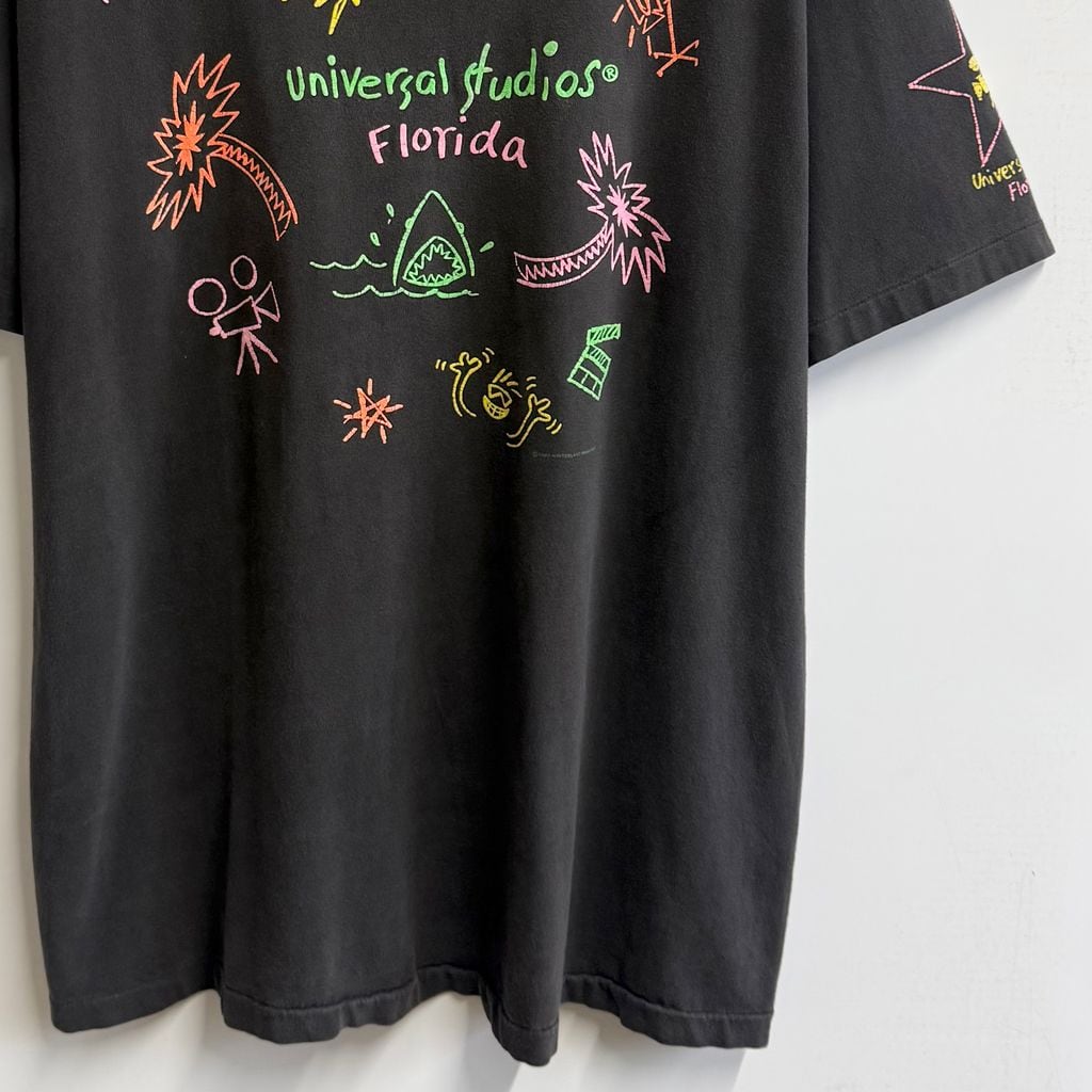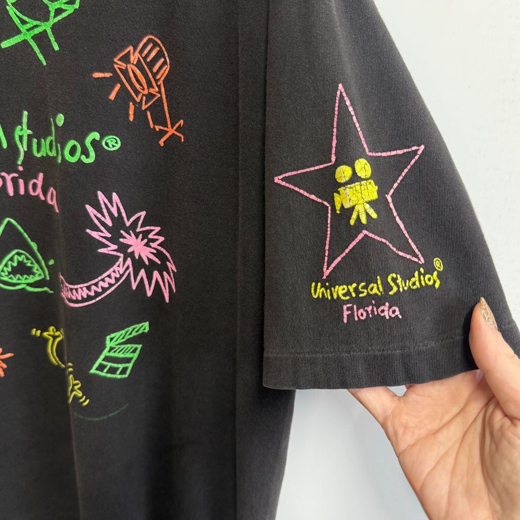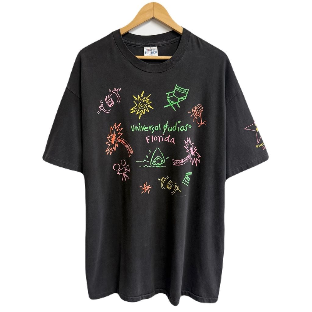 90's USA製 Hanes ヘインズ ユニバーサルスタジオ Florida フロリダ 手書き風プリント シングルステッチ 半袖Tシャツ こげ茶 ダークブラウン XLサイズ No.M632