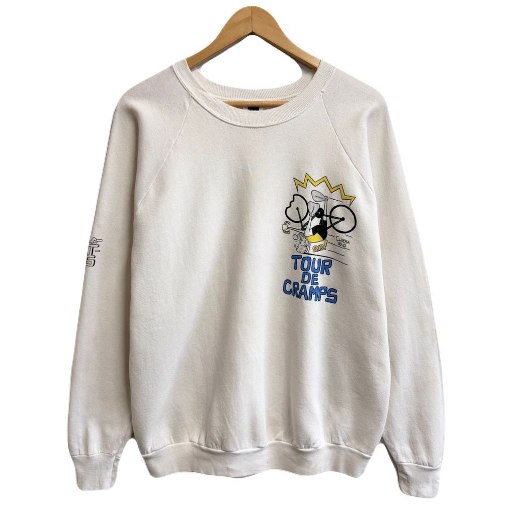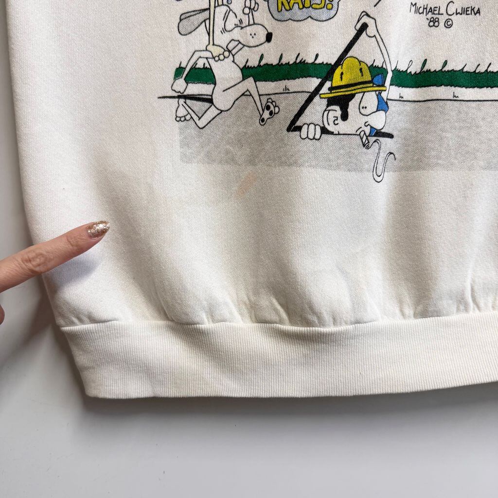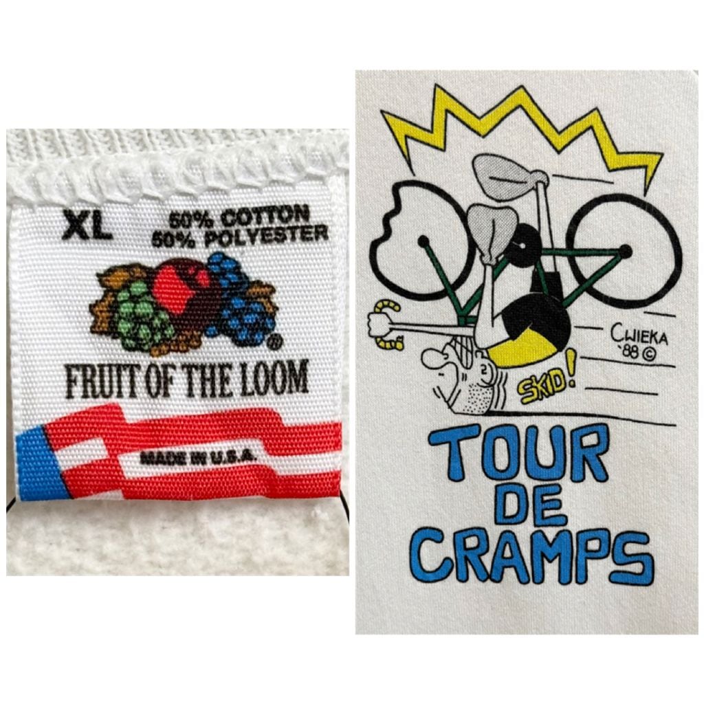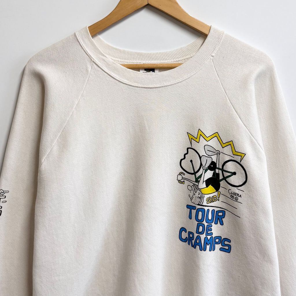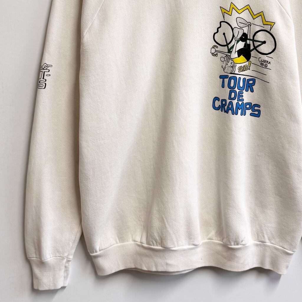 80's USA製 FRUIT OF THE LOOM フルーツオブザルーム Sport Toons マイケル クウィーカ サイクリング イラスト キャラクター ラグランスウェット トレーナー 白 XLサイズ No.M634