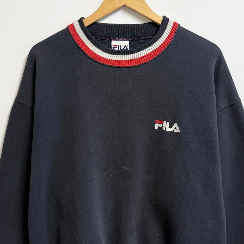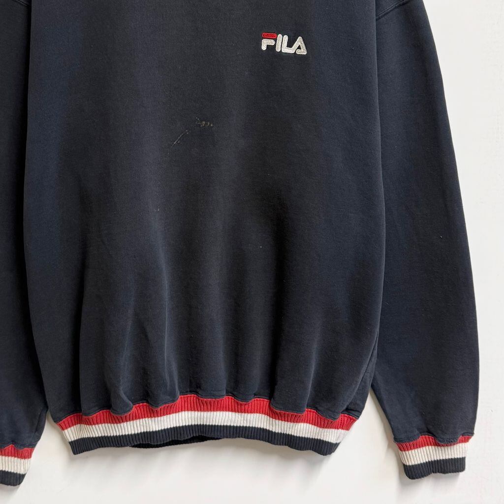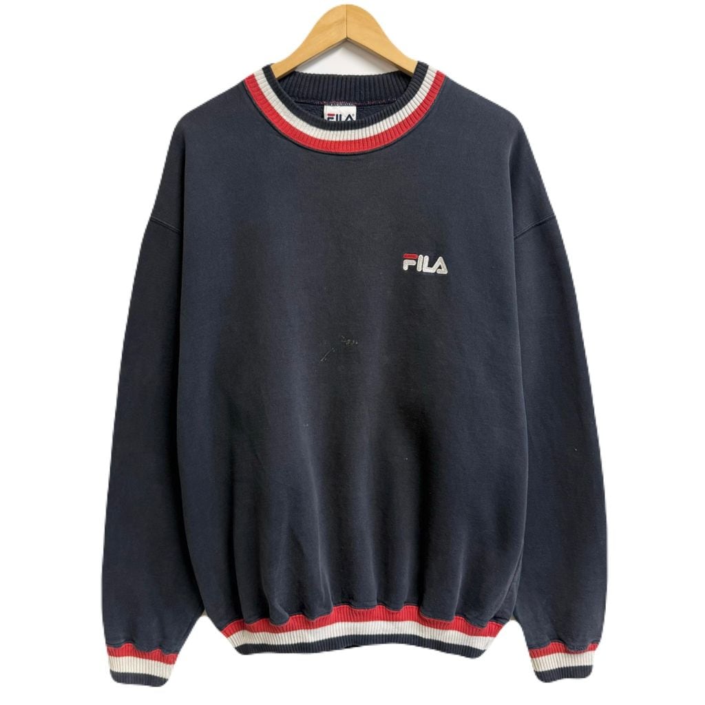 FILA フィラ リブライン ロゴ刺繍 トレーナー スウェット 紺×白×赤 XLサイズ No.M635