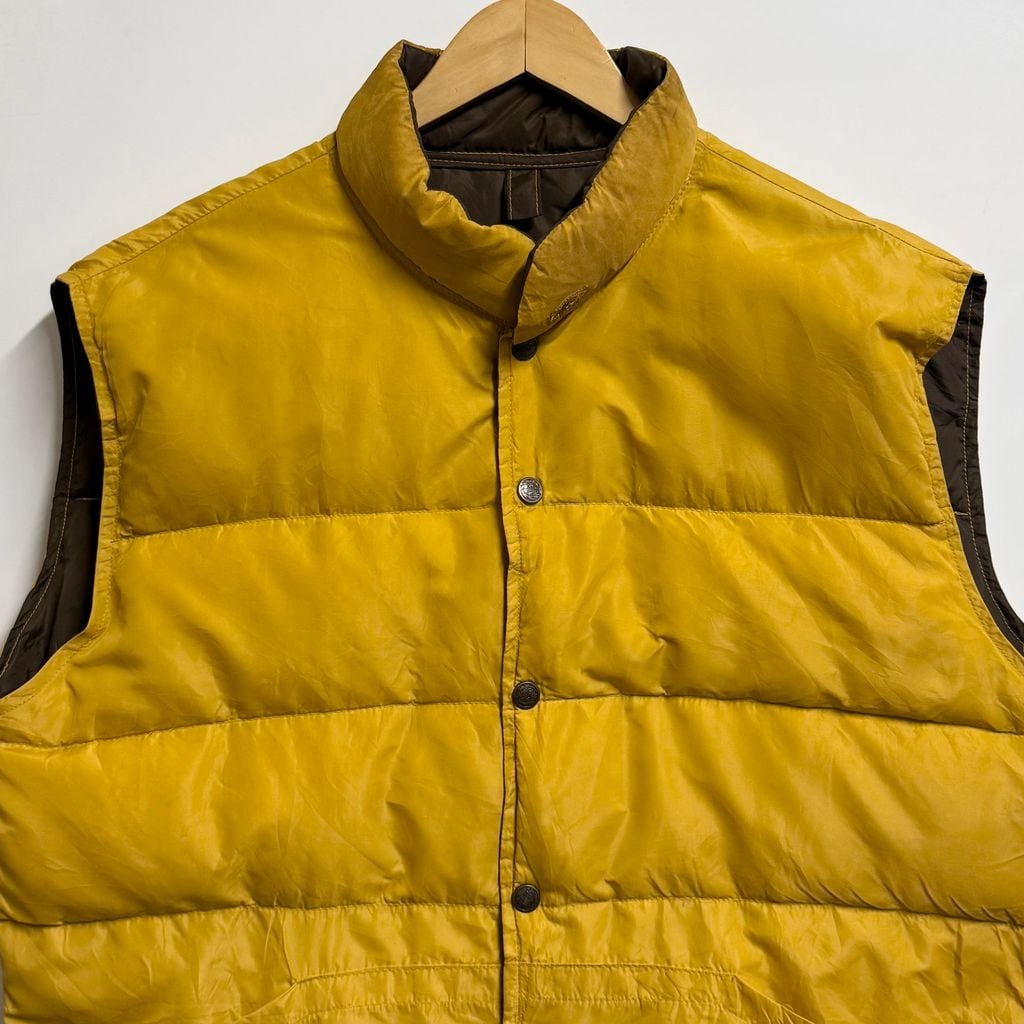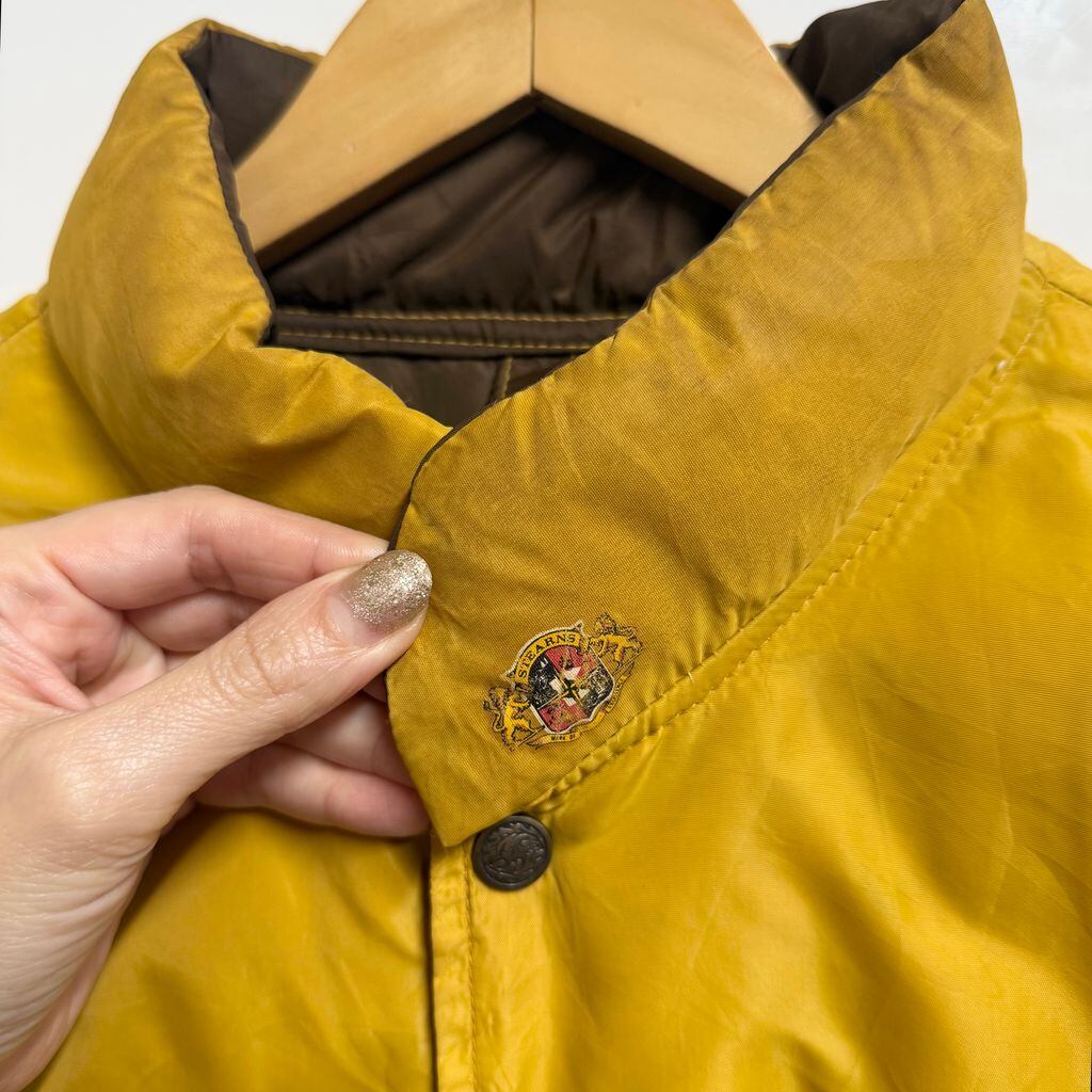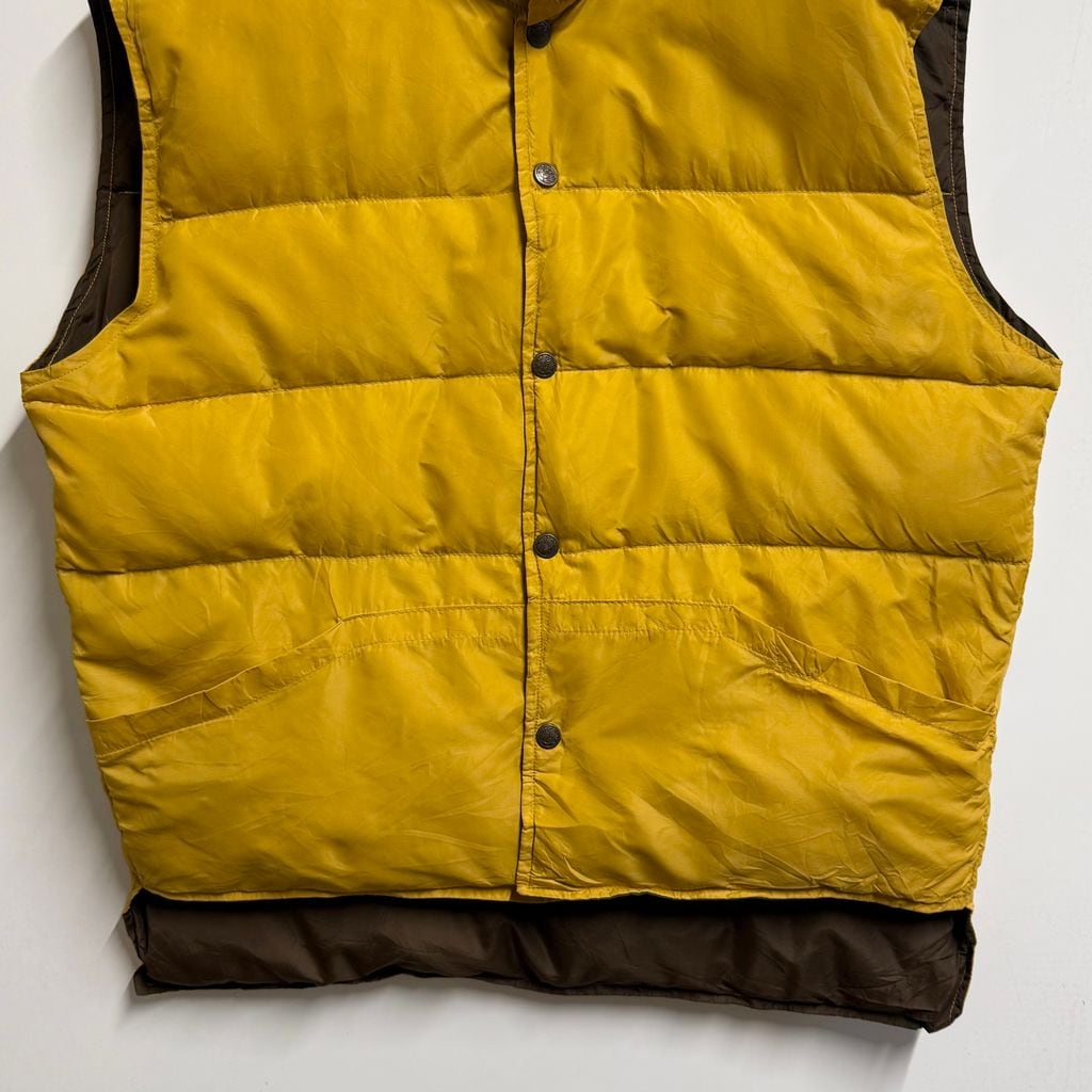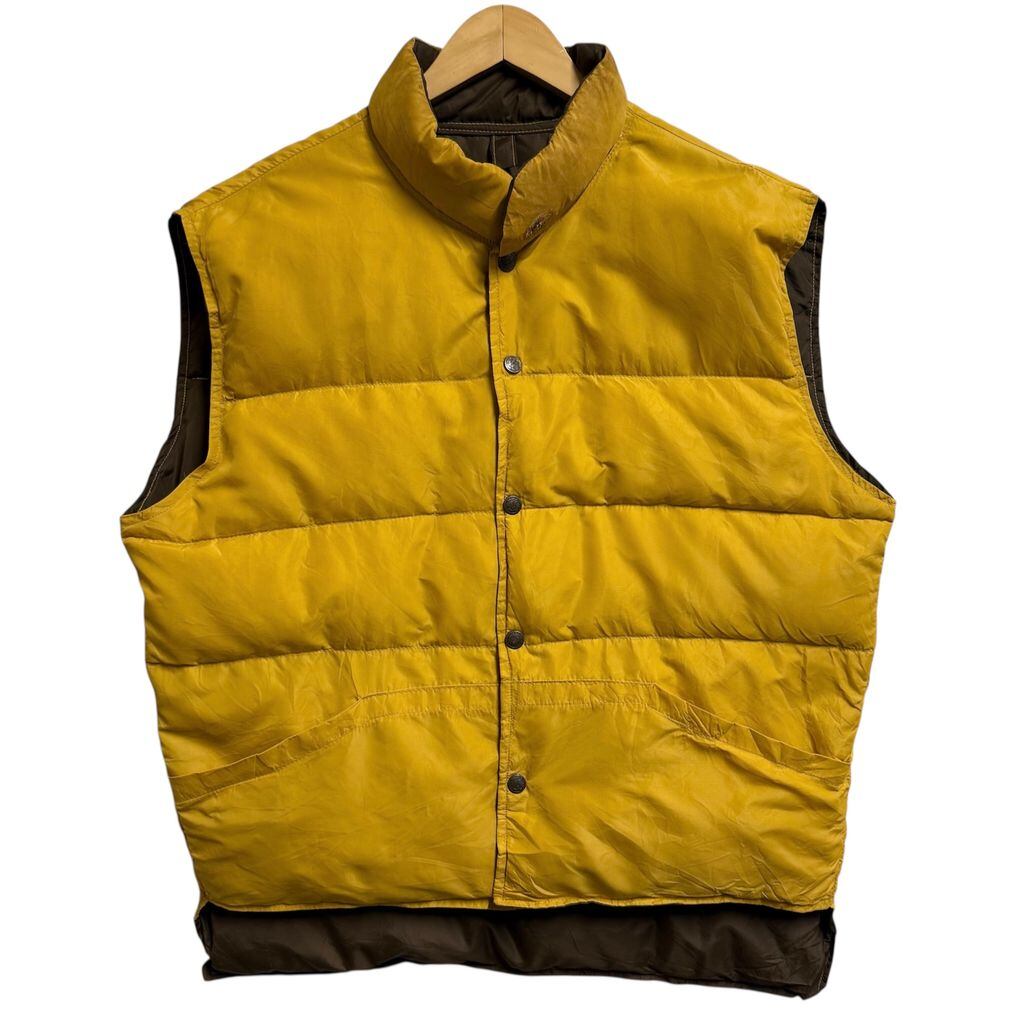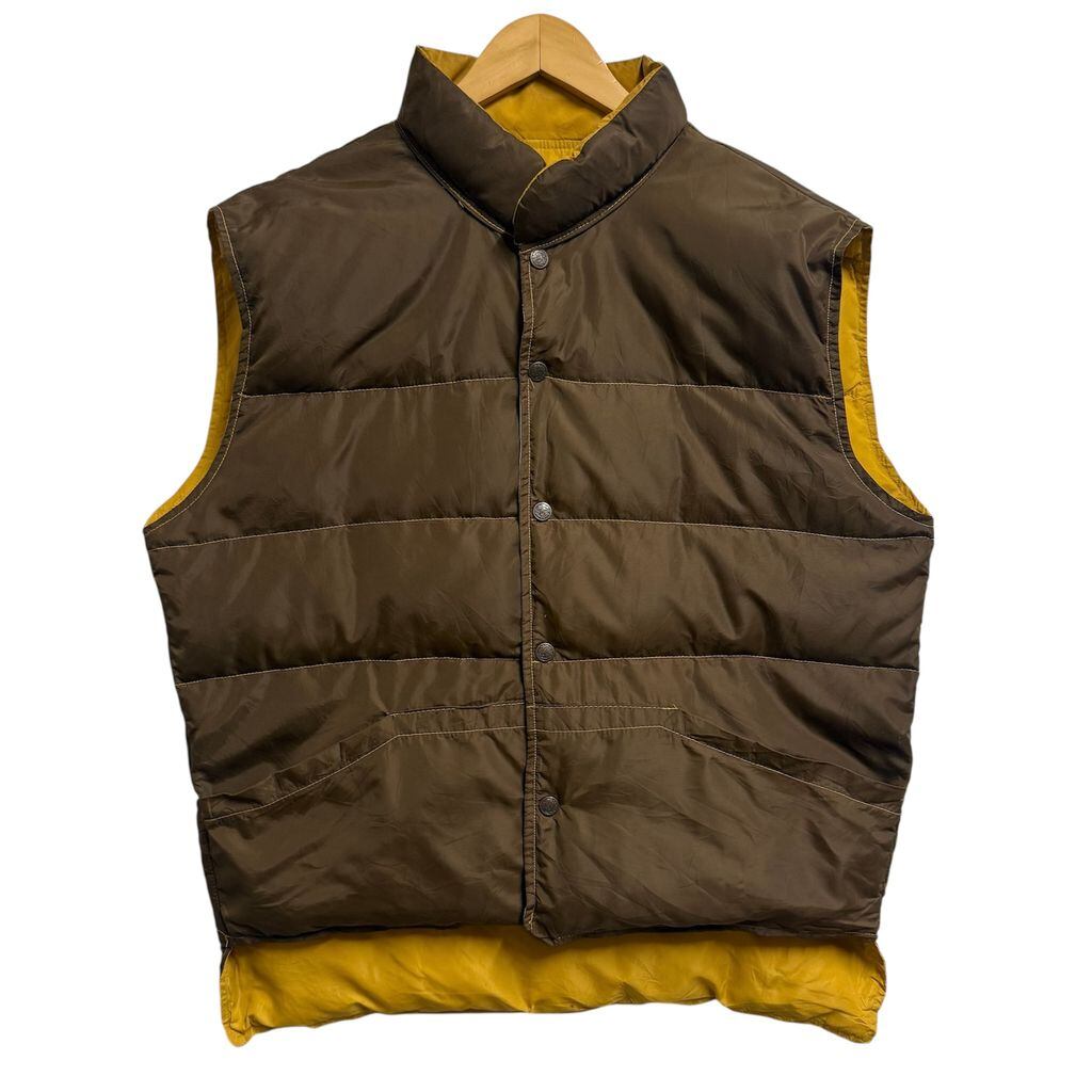(リバーシブル) ダウンベスト スナップボタン マスタード からし色×茶色 ブラウン Lサイズ No.M636