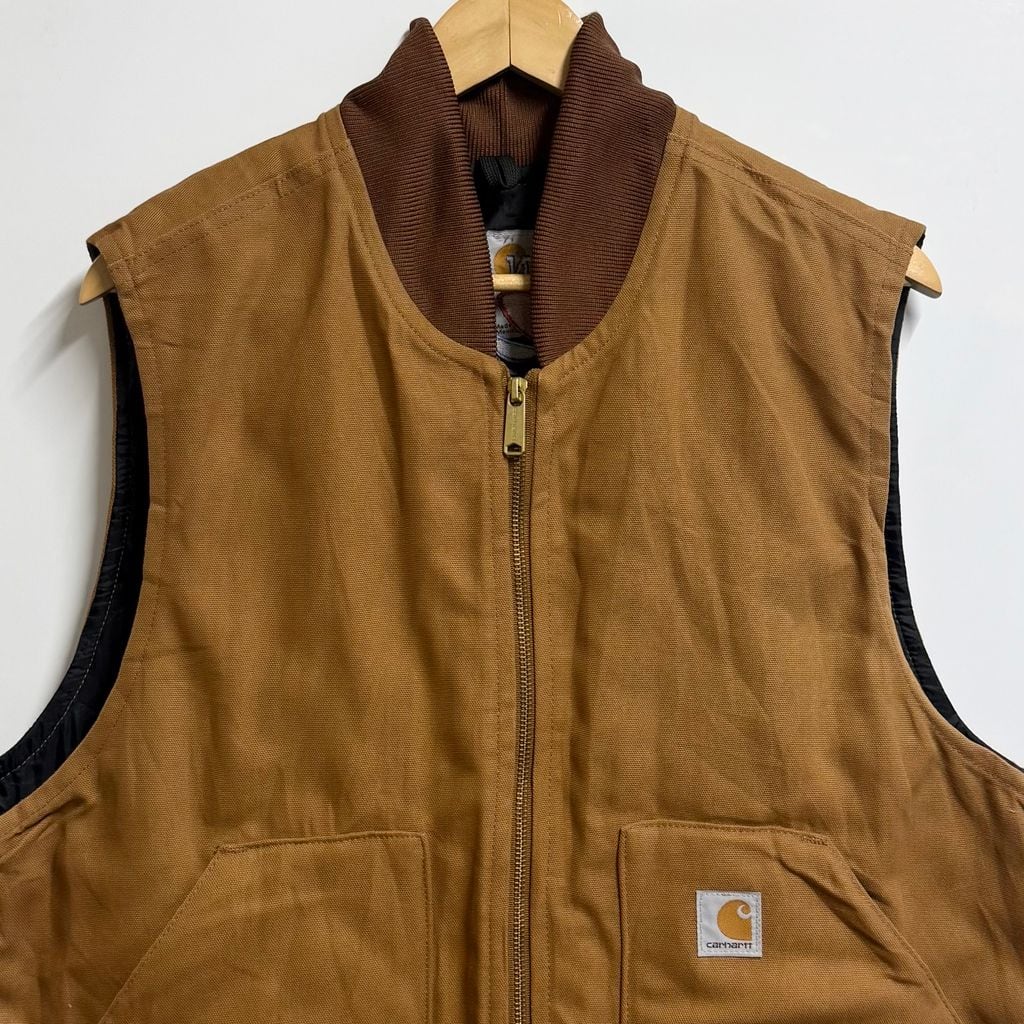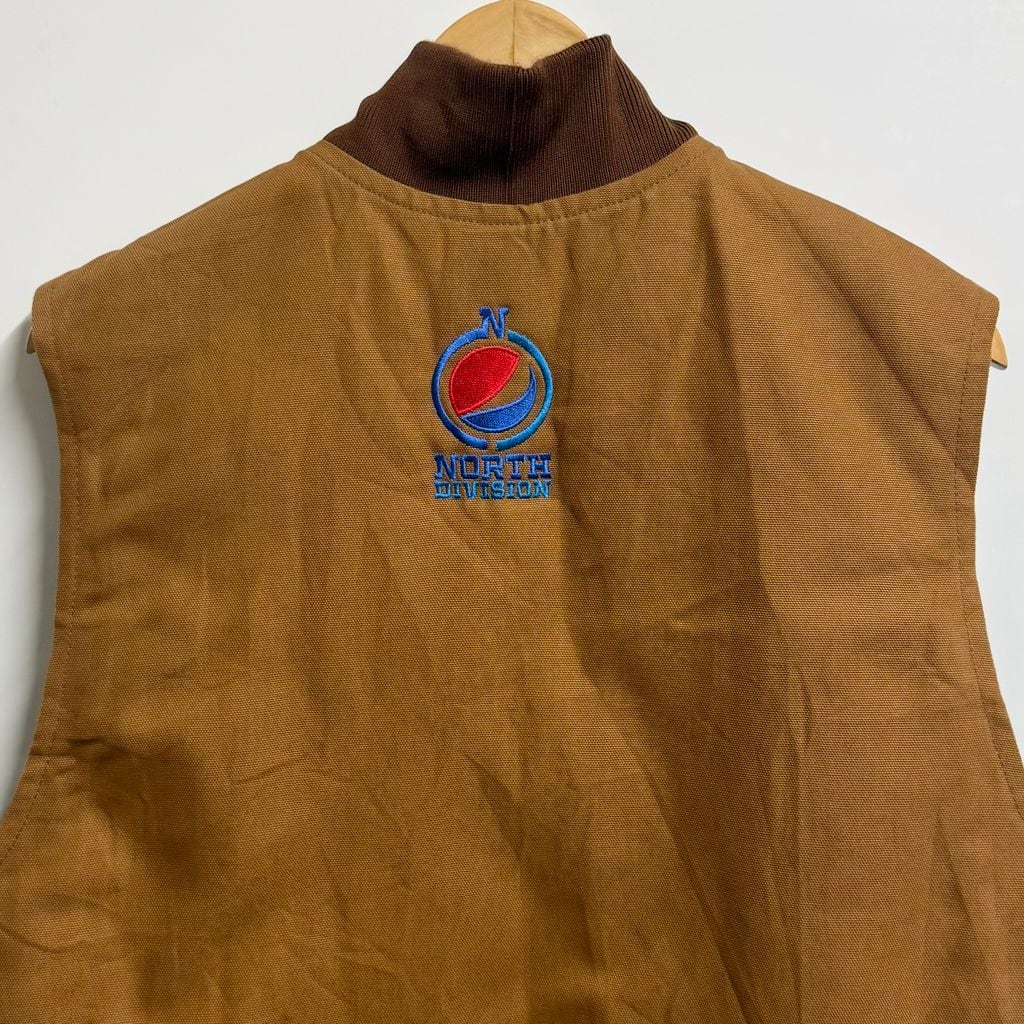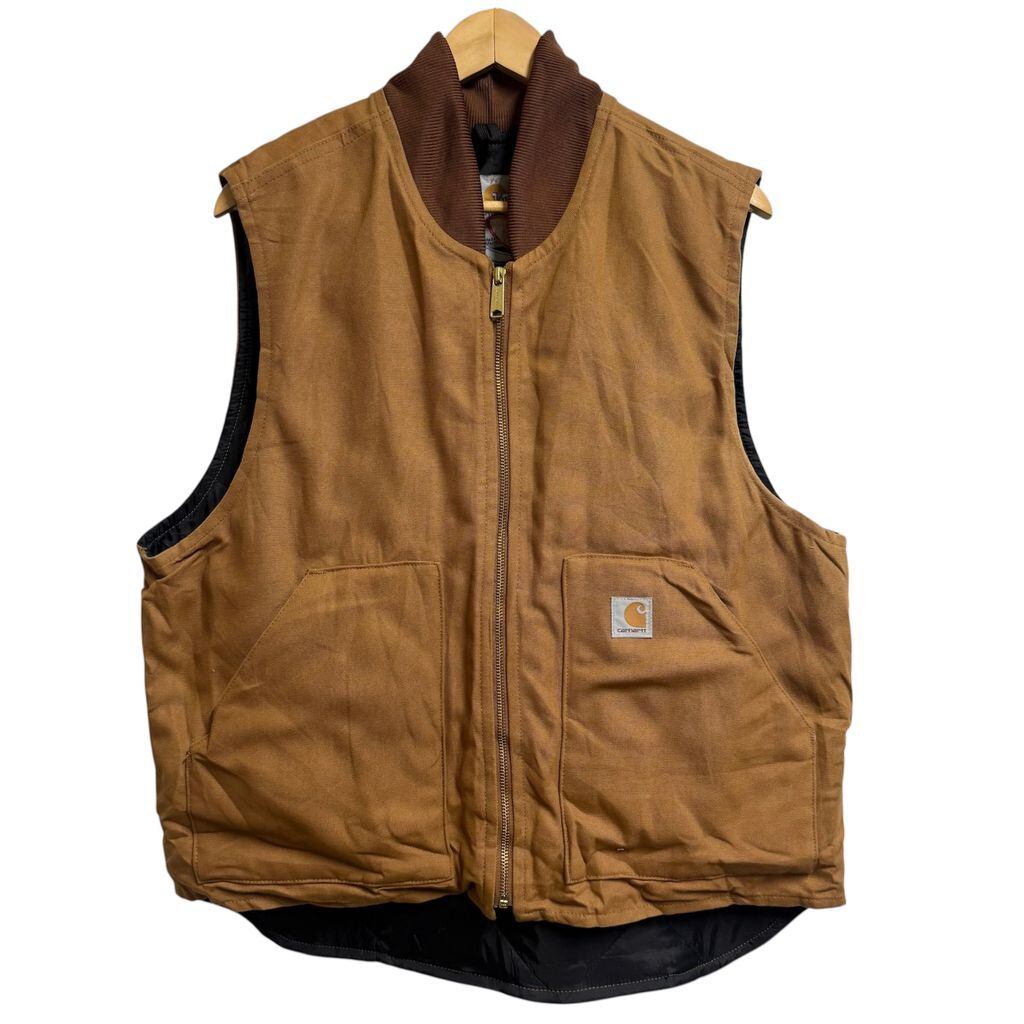 Carhartt カーハート ダックベスト ワークベスト 企業ロゴ 刺繍 茶色 ブラウン Lサイズ No.M637