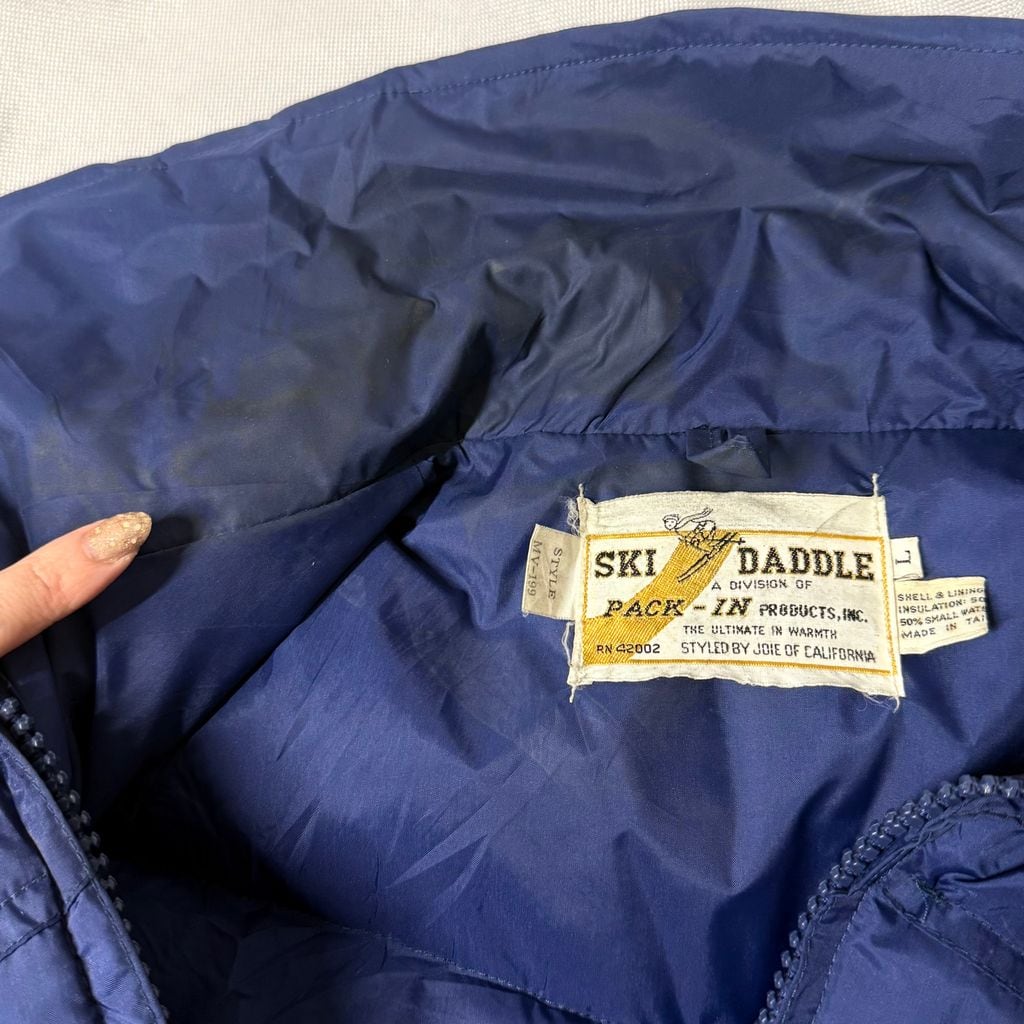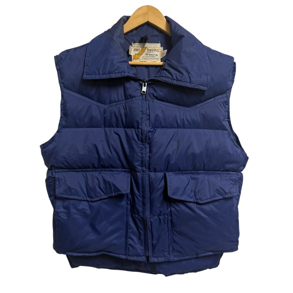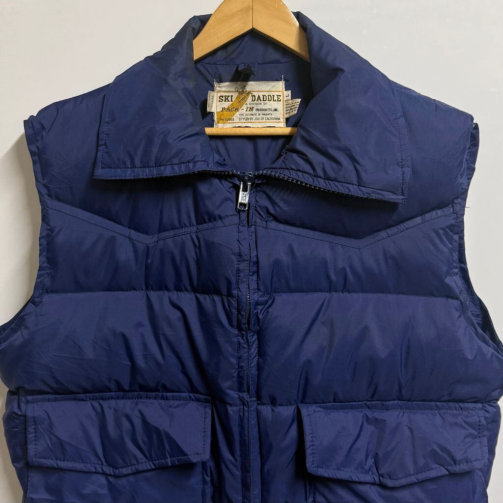 SKI DADDLE ダウンベスト 無地 フルジップ ポケット付き 青 ブルー Lサイズ No.M638