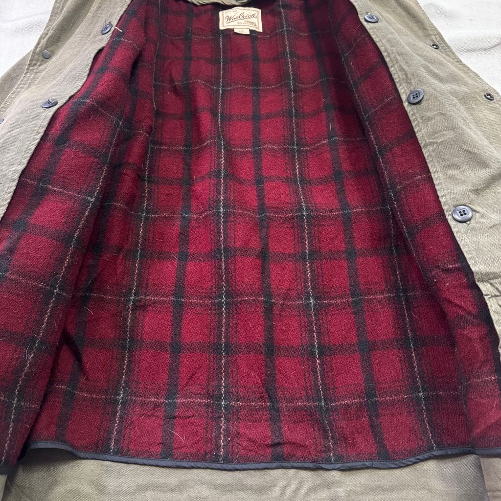 USA製 90s WOOLRICH カバーオール ハンティングジャケット裏地チェック ライナー付き オリーブ 2XLサイズ No.EA223