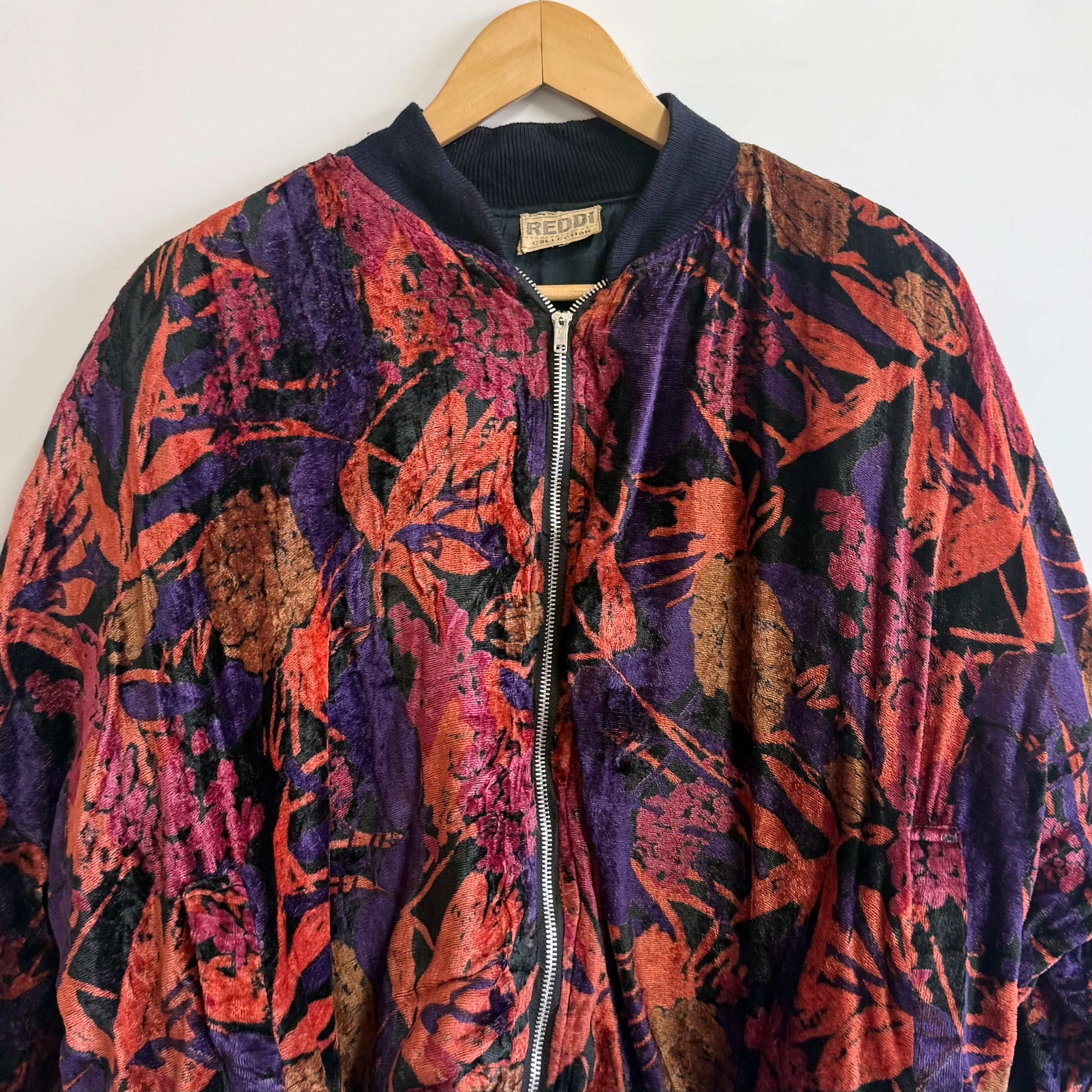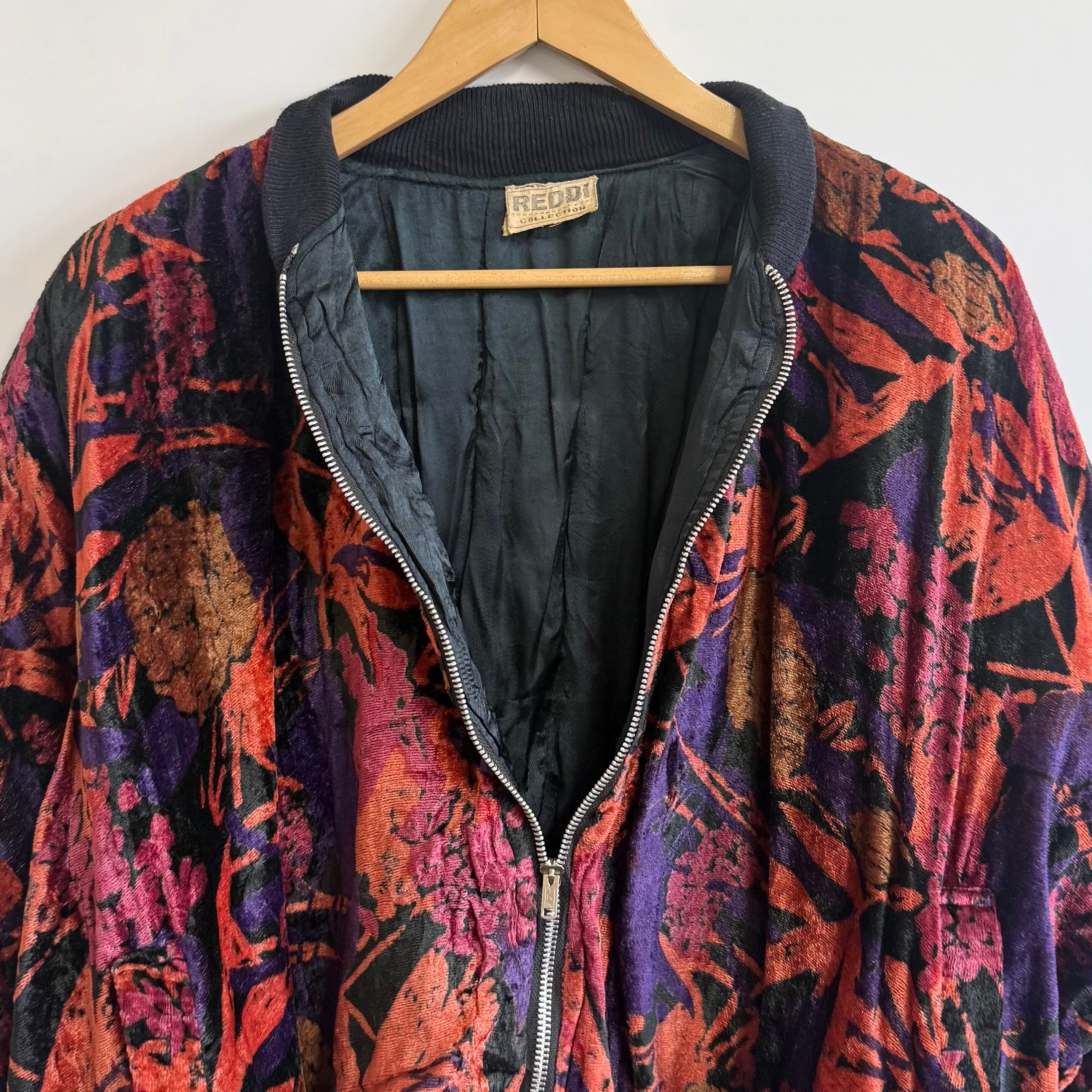 REDDI COLLECTION 総柄 ベロア風ブルゾン ボンバージャケット フルジップ ポケット付き 多色 No.M650