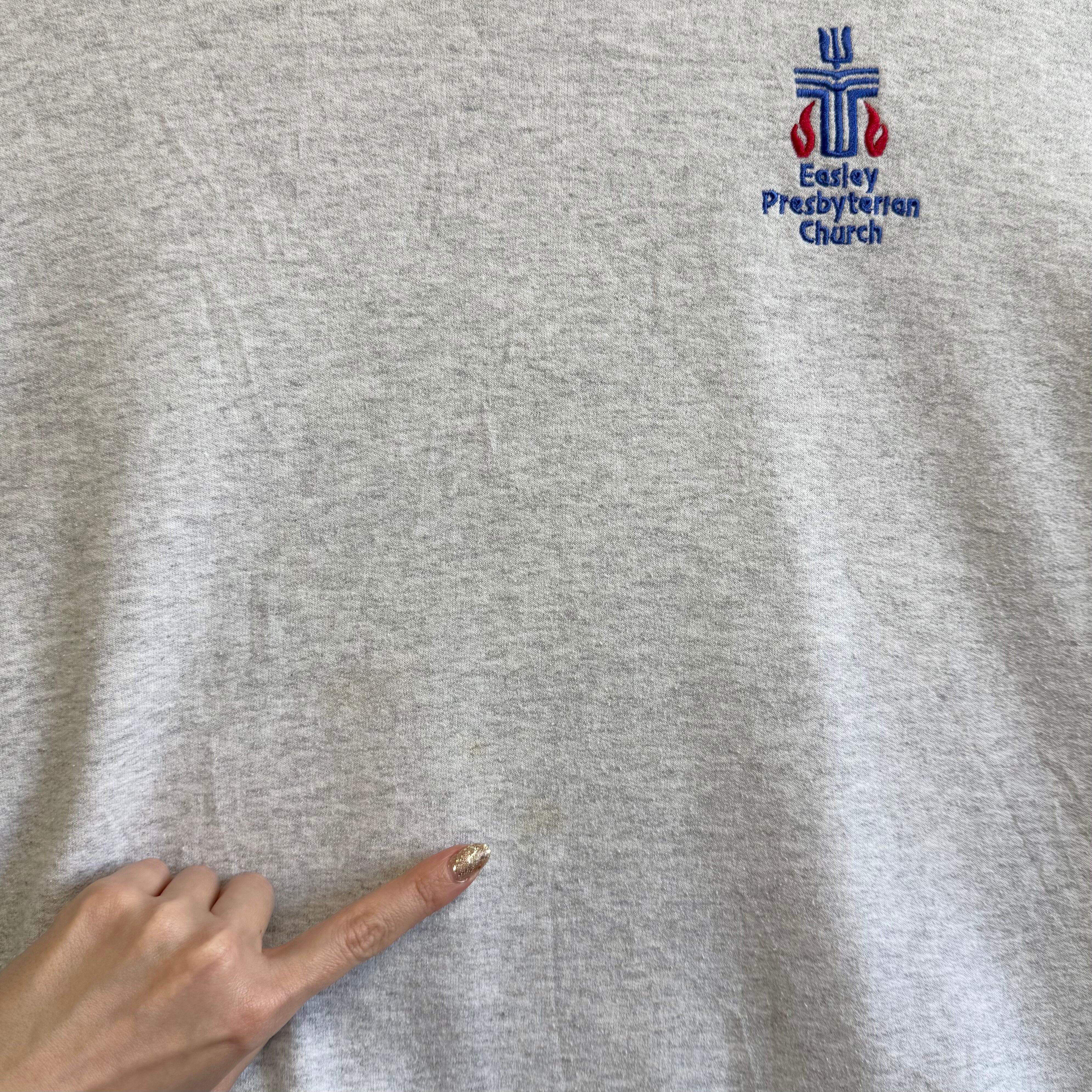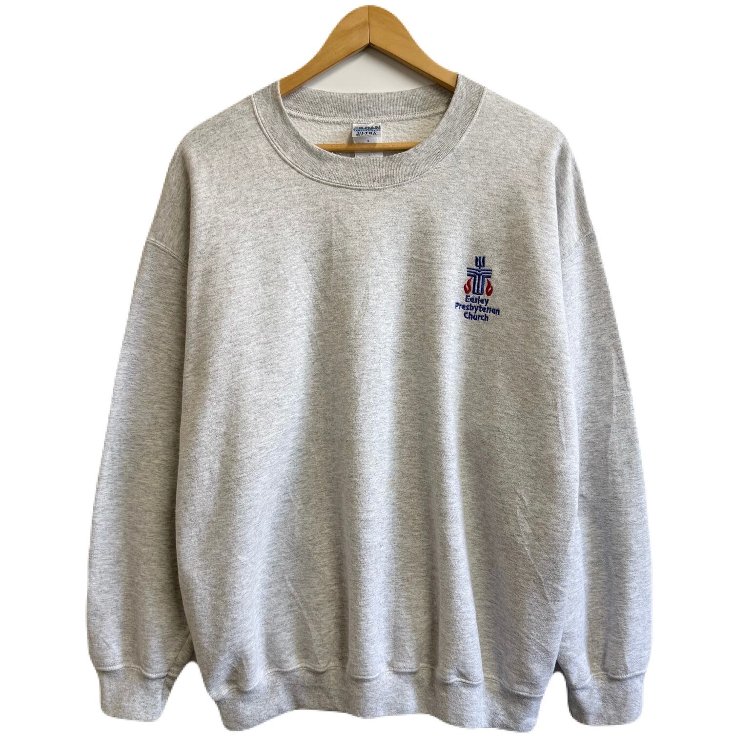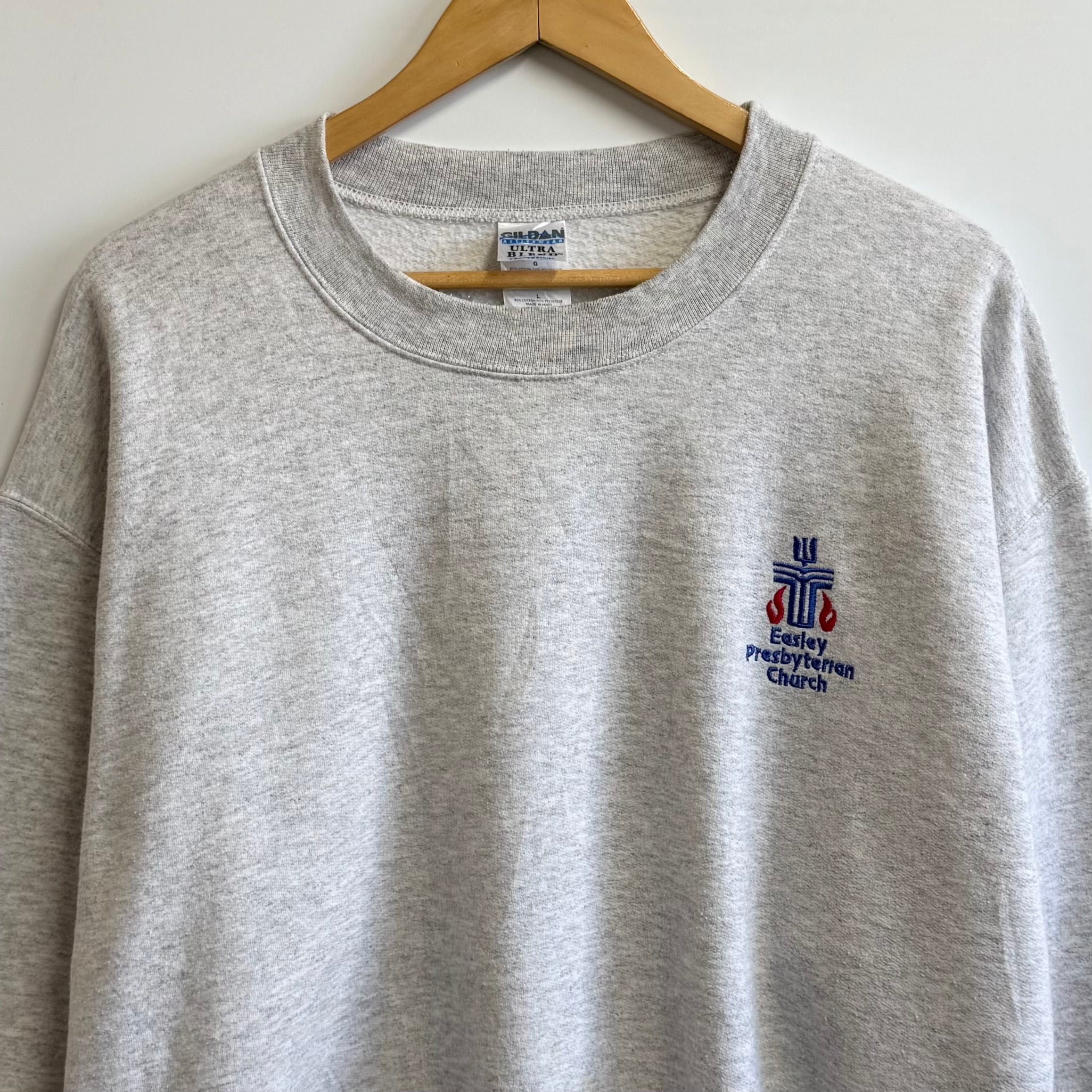 GILDAN ギルダン イーズリー教会 十字架 ワンポイントロゴ 刺繍 トレーナー スウェット 裏起毛 ライトグレー Lサイズ No.M653