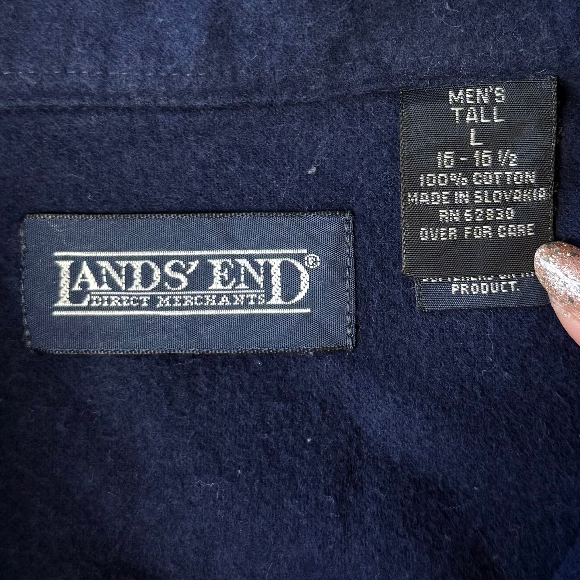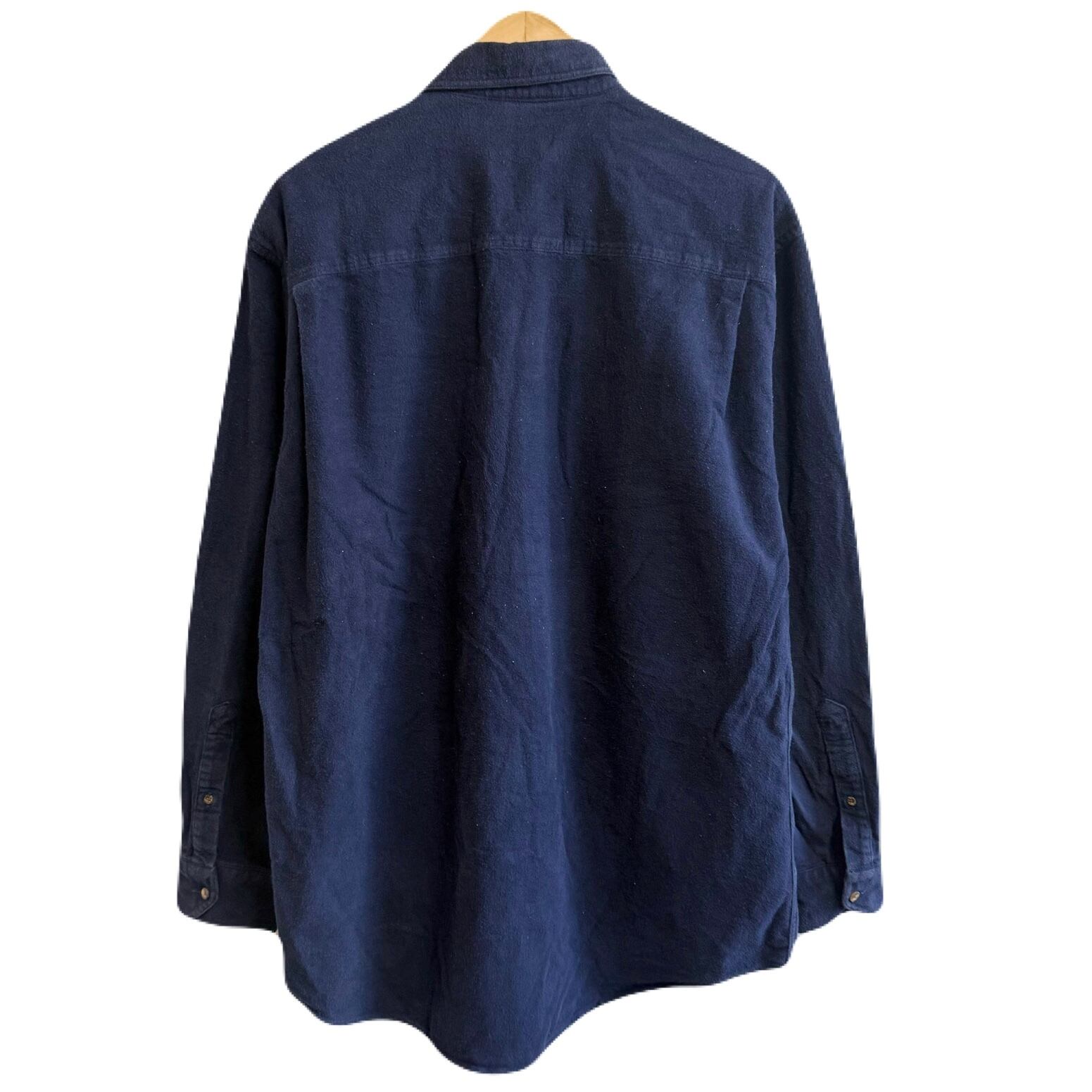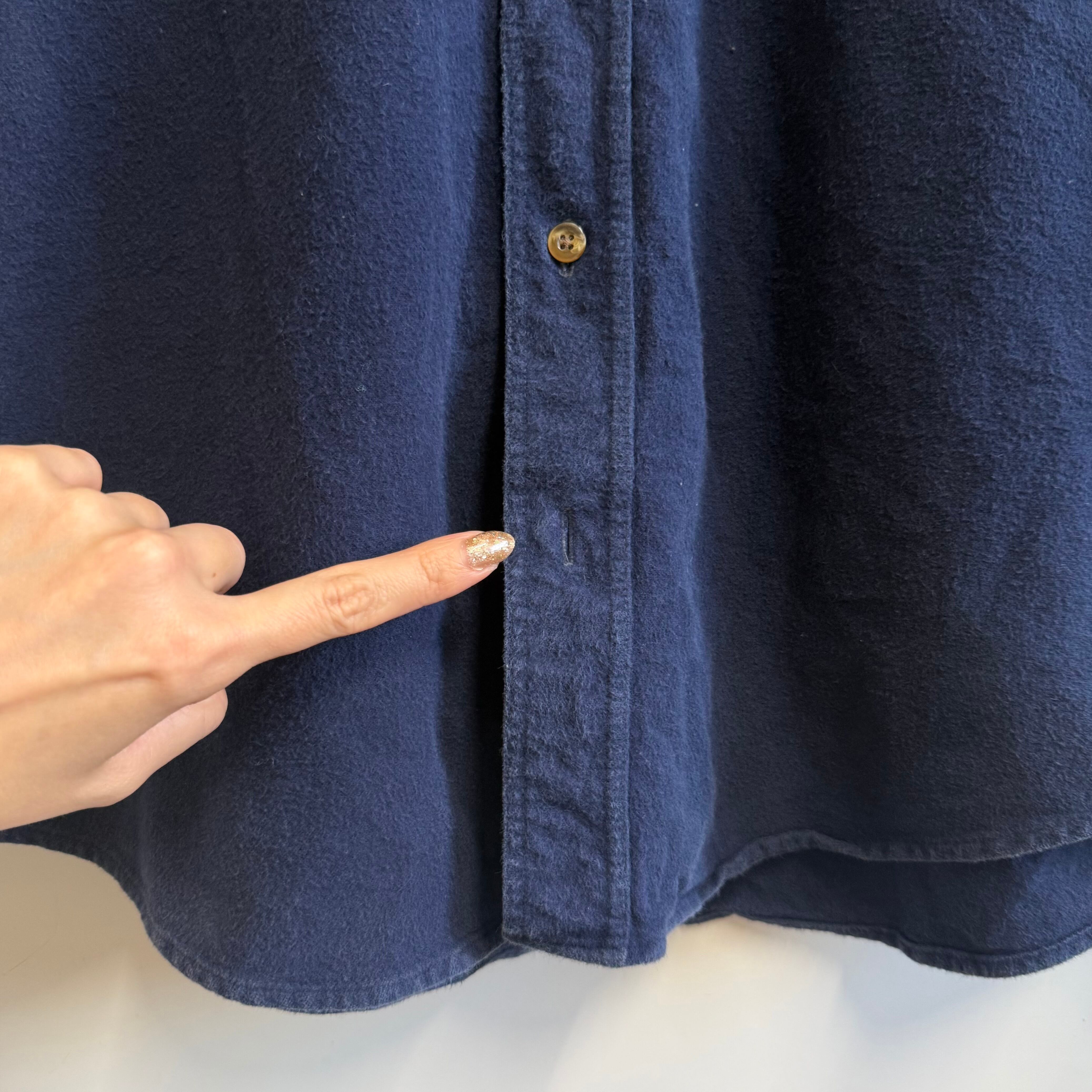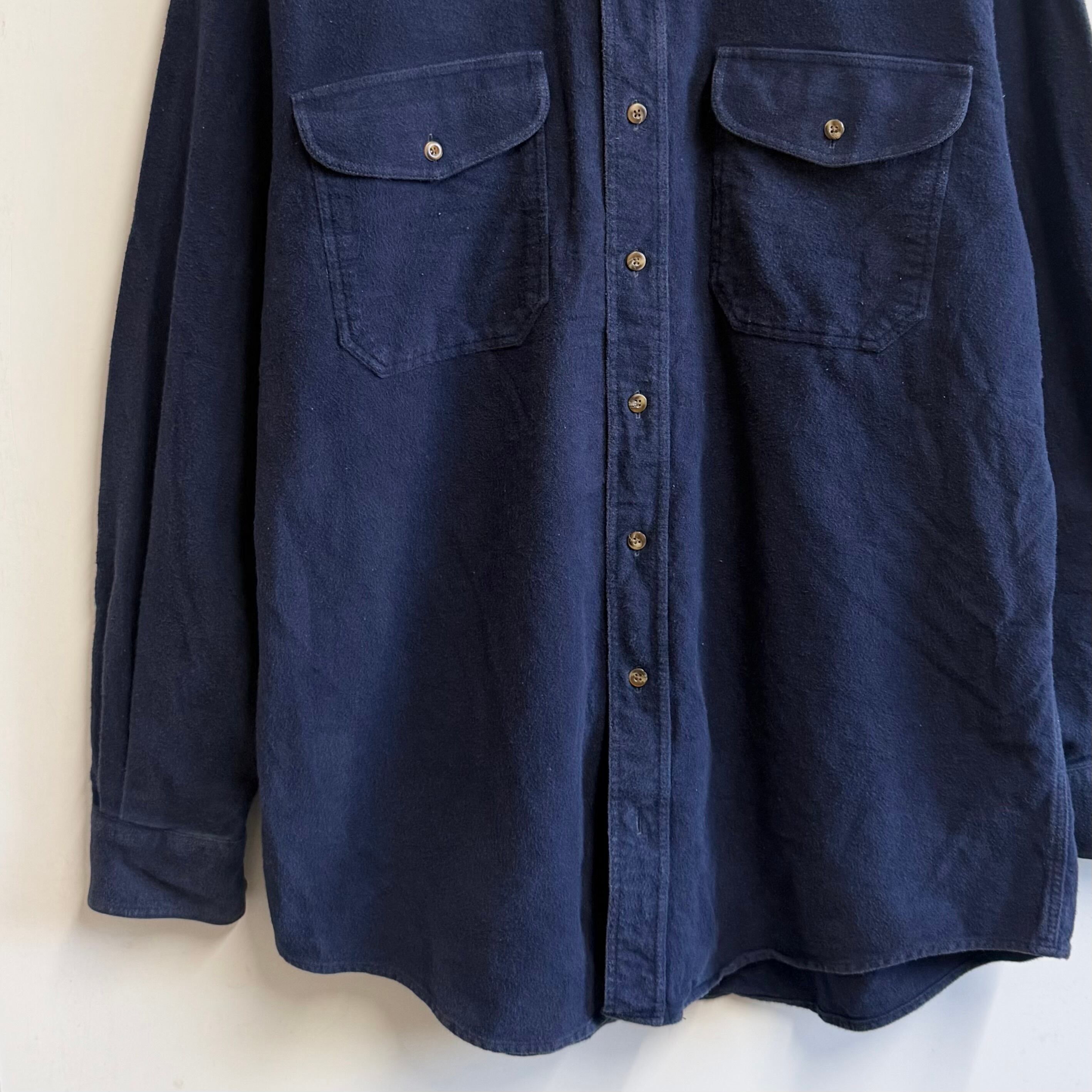LAND'S END ランズエンド コットンシャツ 無地 ポケット付き 厚手長袖シャツ シャモアクロス 紺 ネイビー Lサイズ No.M656