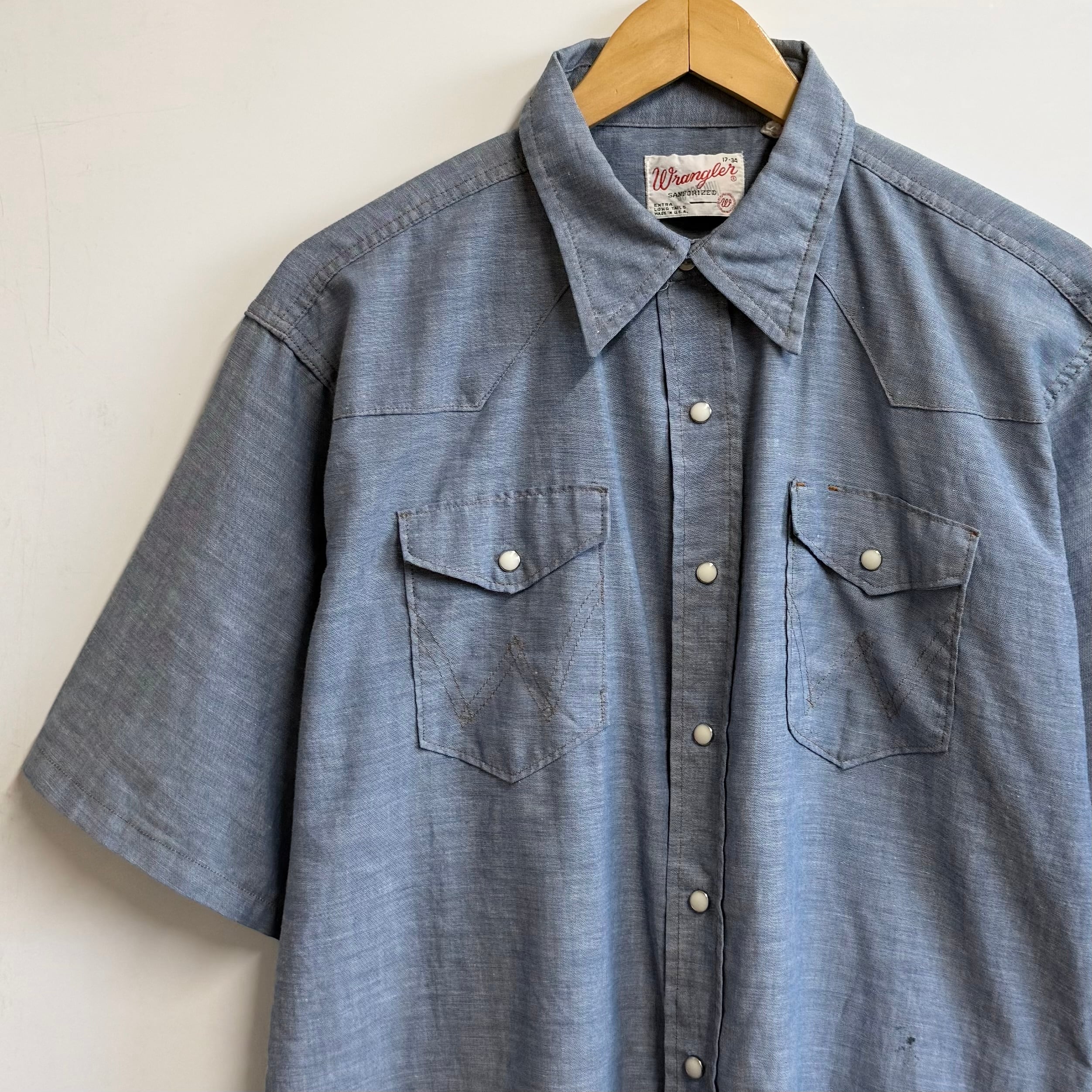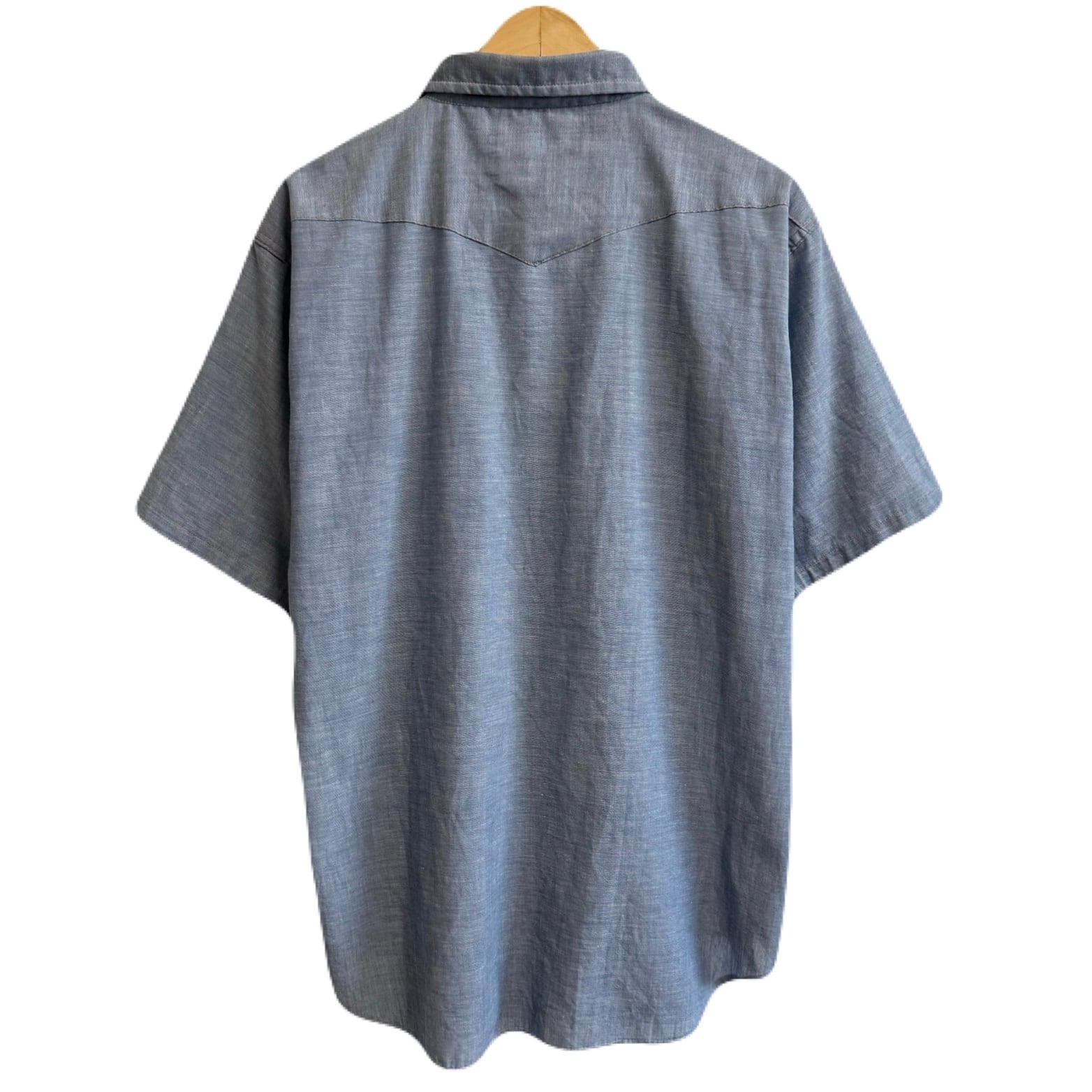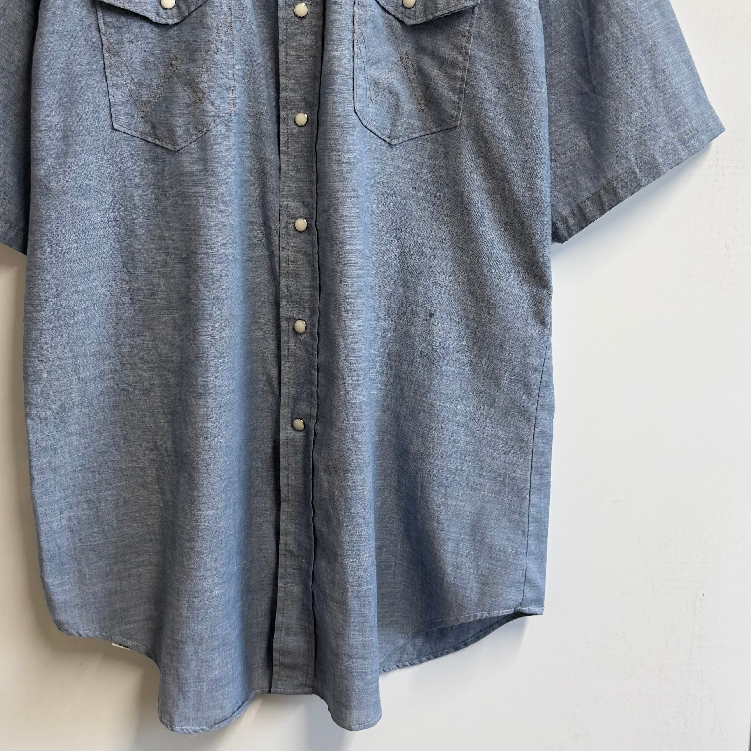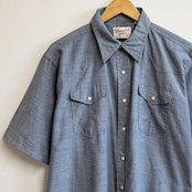 USA製 Wrangler ラングラー ウエスタンシャツ スナップボタン 無地 ポケット付き 半袖シャツ 青 ブルー No.M658