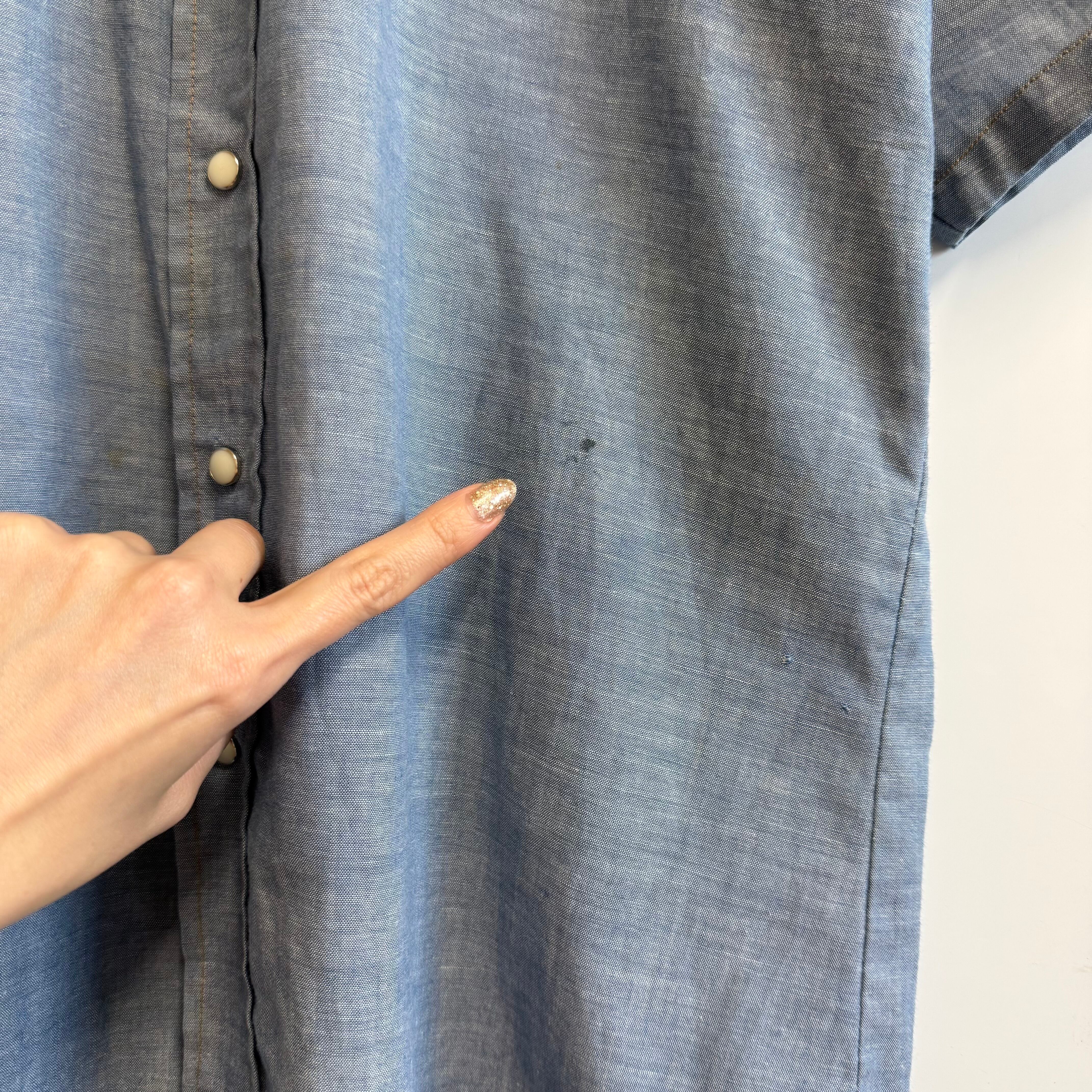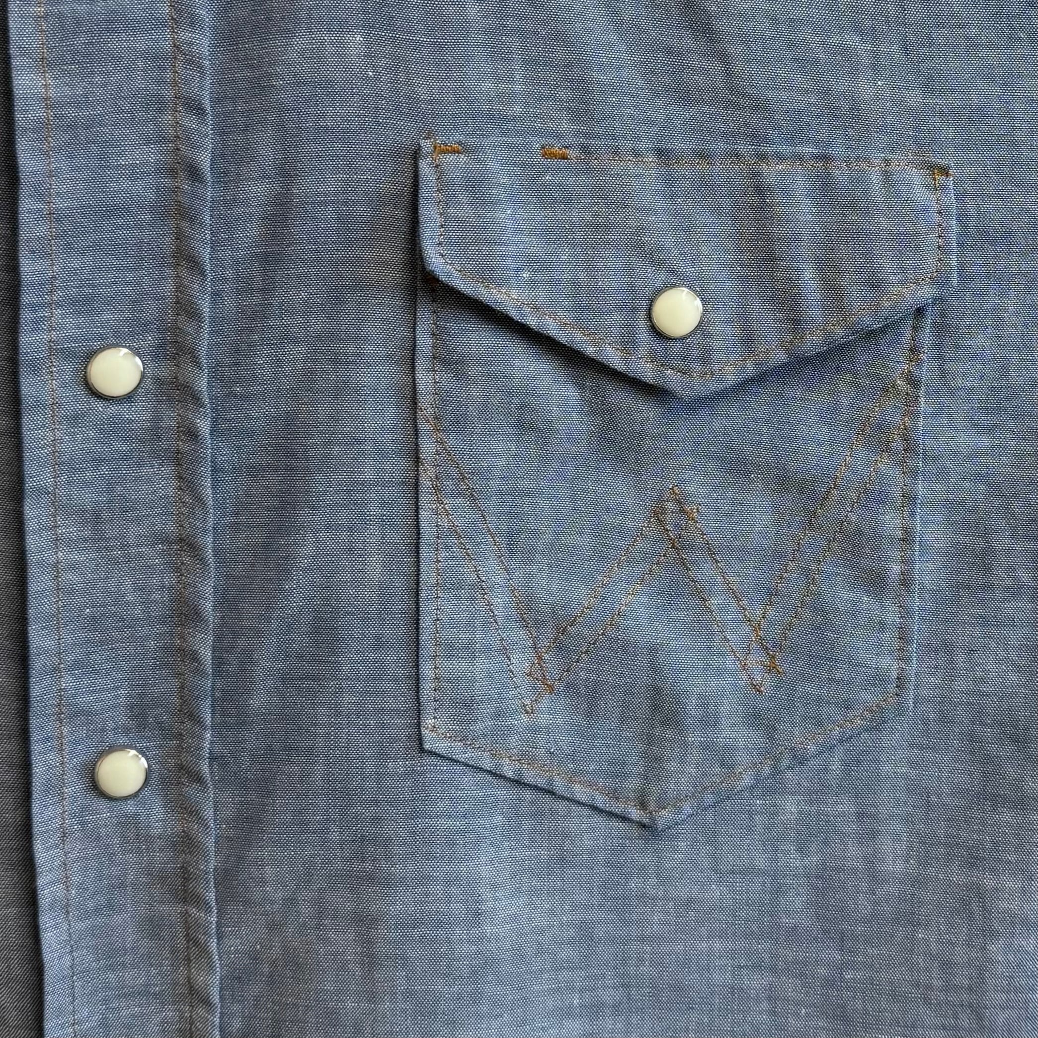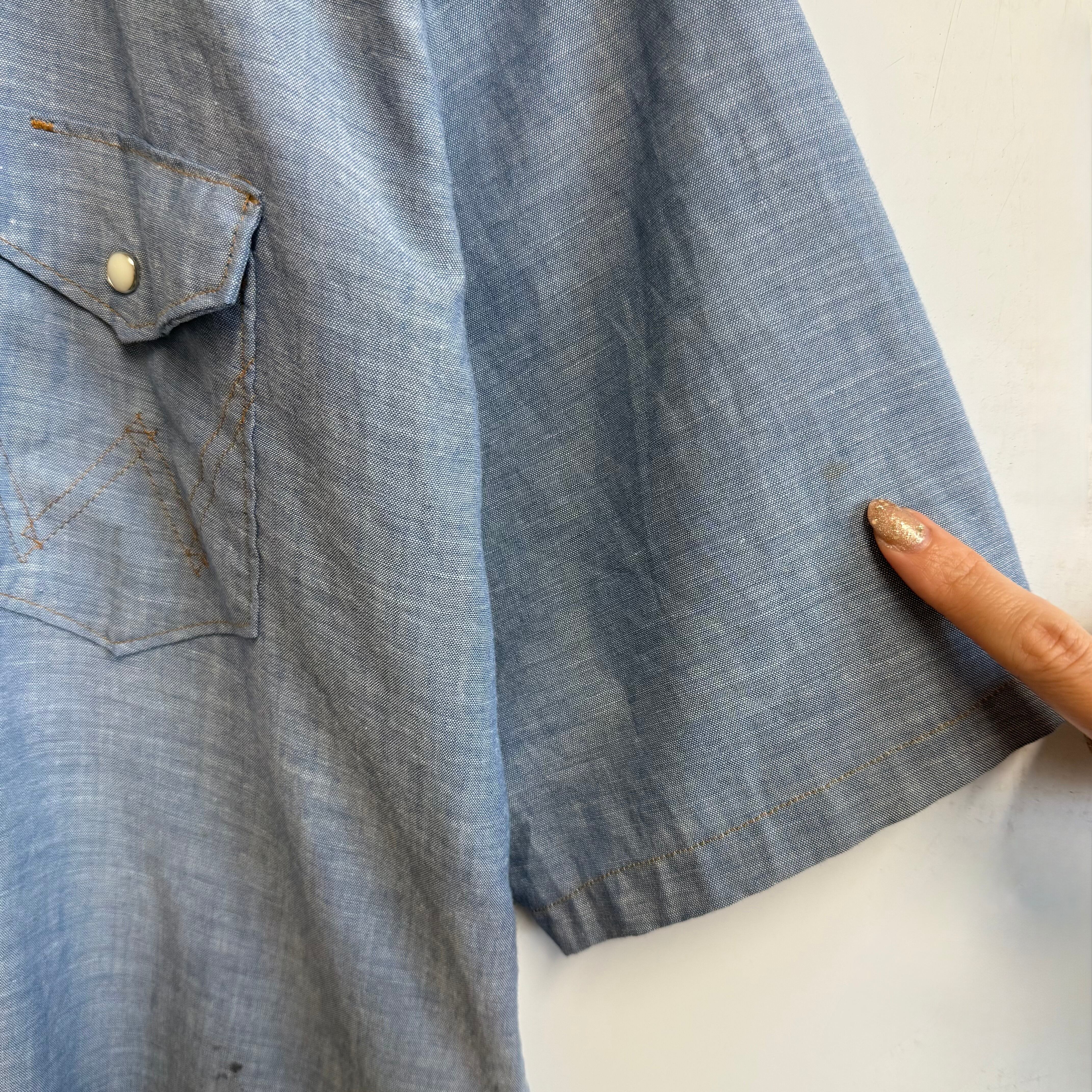 USA製 Wrangler ラングラー ウエスタンシャツ スナップボタン 無地 ポケット付き 半袖シャツ 青 ブルー No.M658