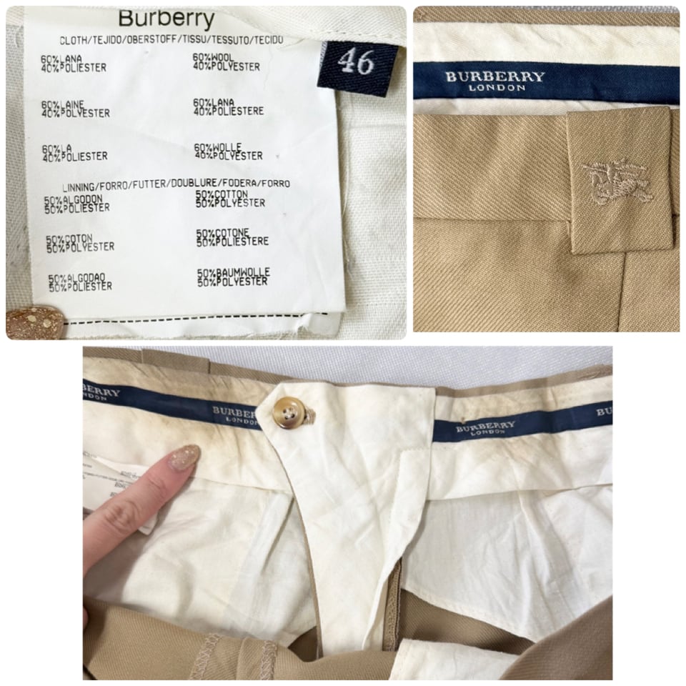 BURBERRY LONDON バーバリーロンドン ツータック チノパン ワンポイントロゴ 刺繍 ベージュ サイズ46 No.M665