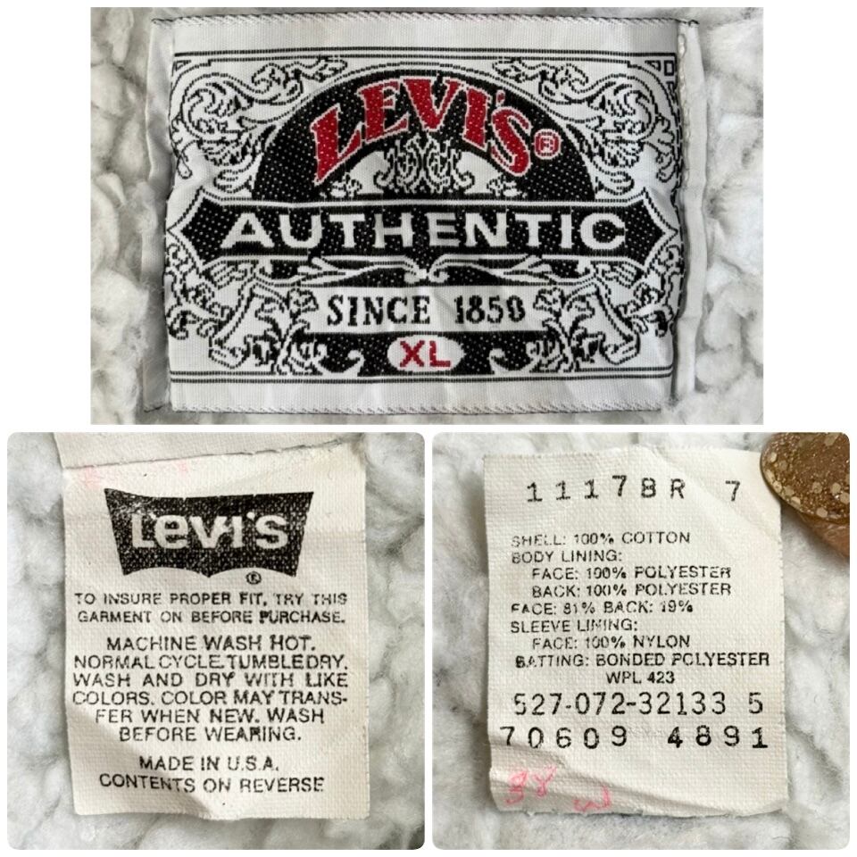 USA製 Levi's リーバイス ボアデニムジャケット 裏ボア スナップボタン 青 ブルー XLサイズ No.M680