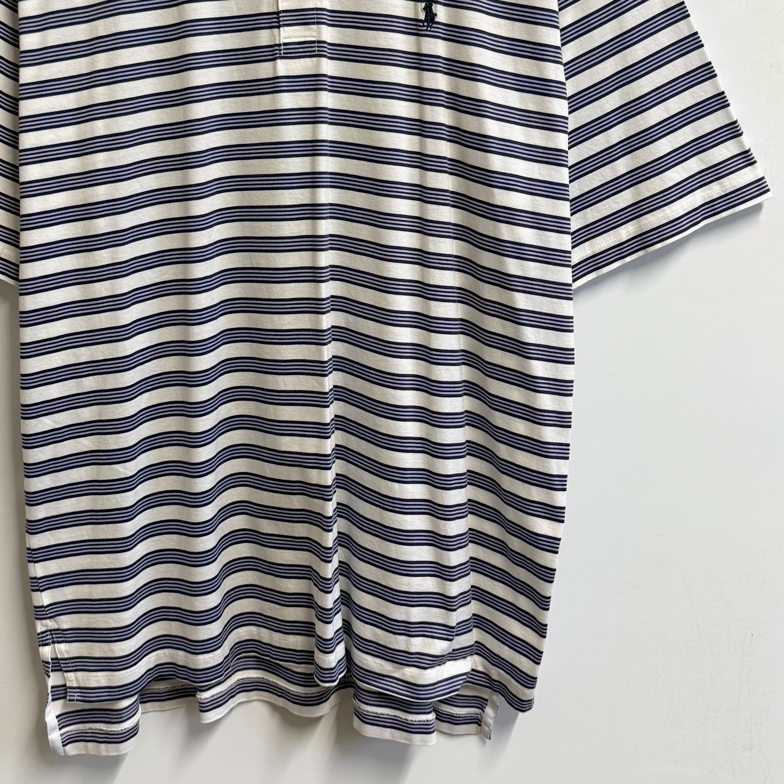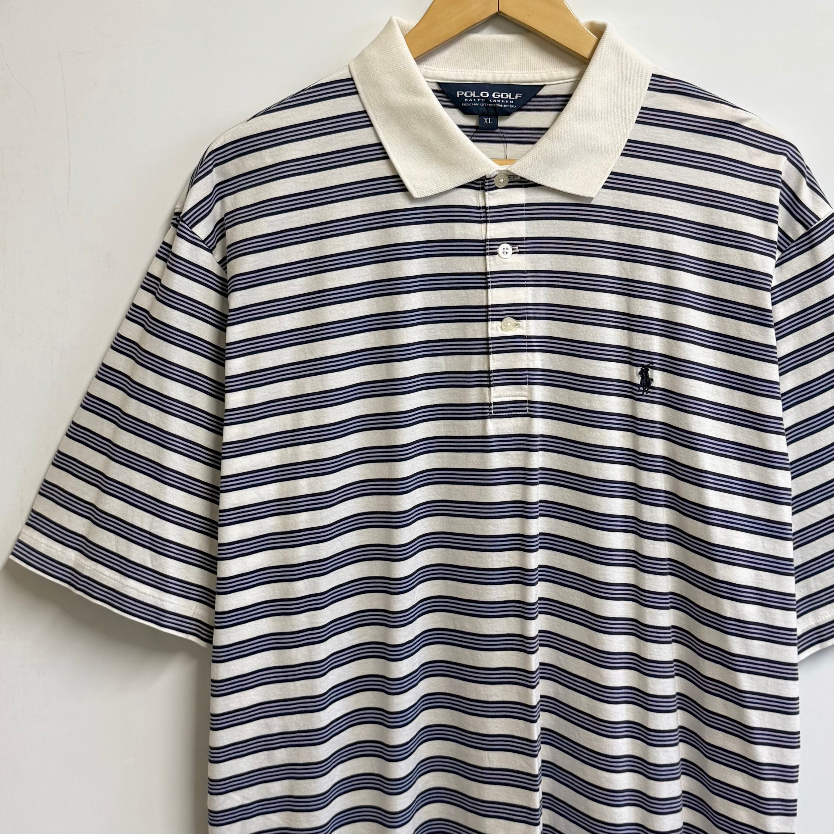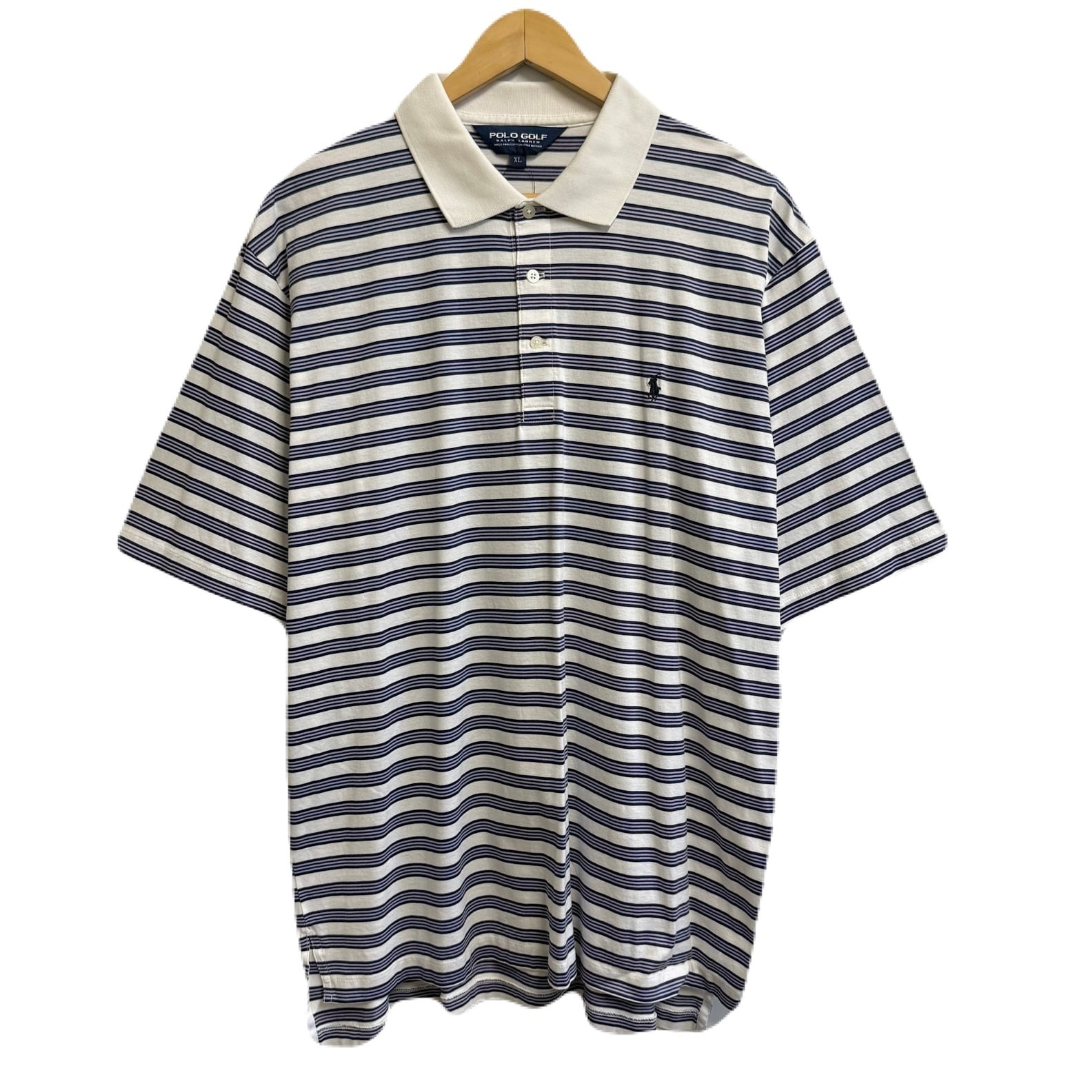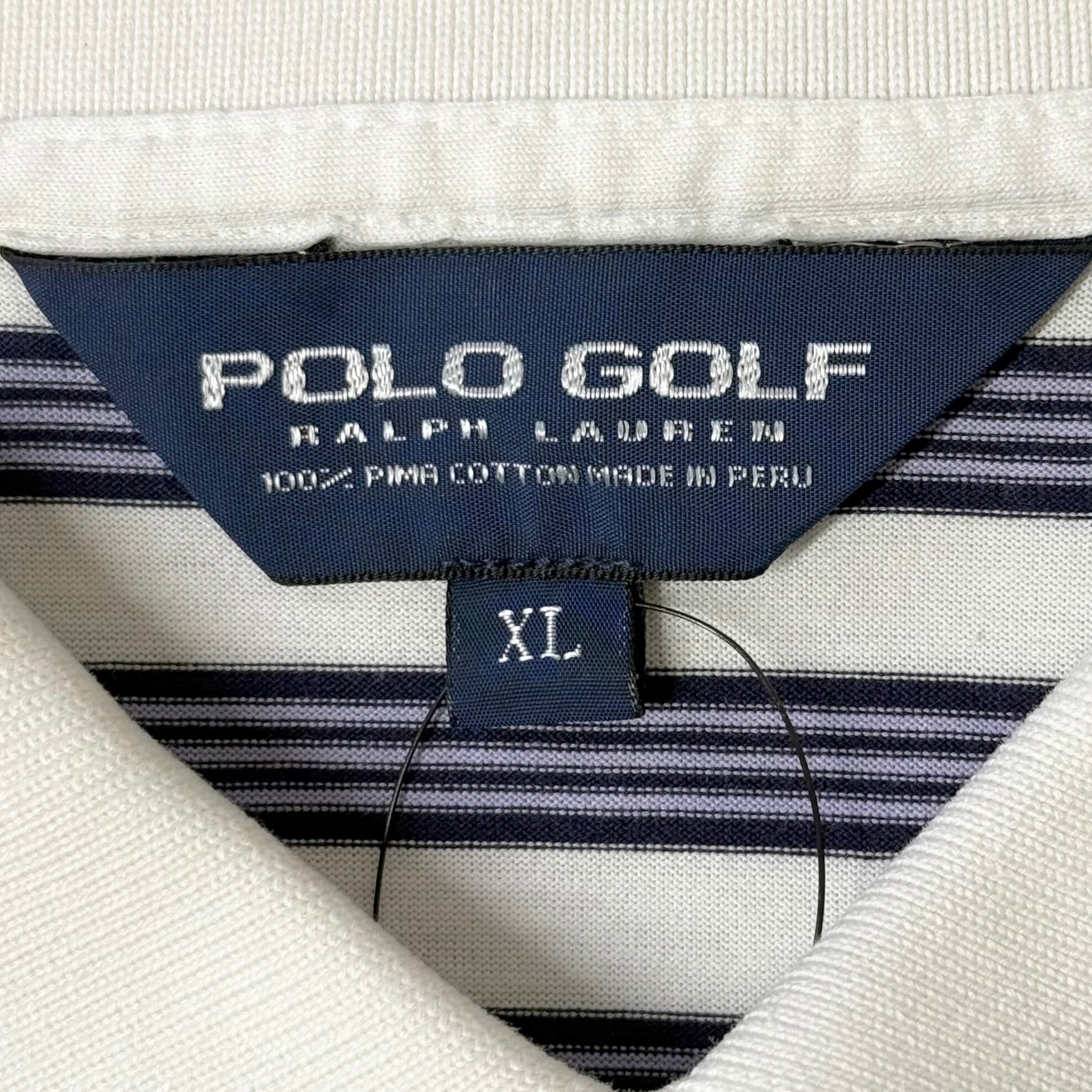 POLO GOLF ポロゴルフ ポロシャツ 半袖 ボーダー ワンポイントロゴ 刺繍 白×紫×ライトパープル XLサイズ No.M683